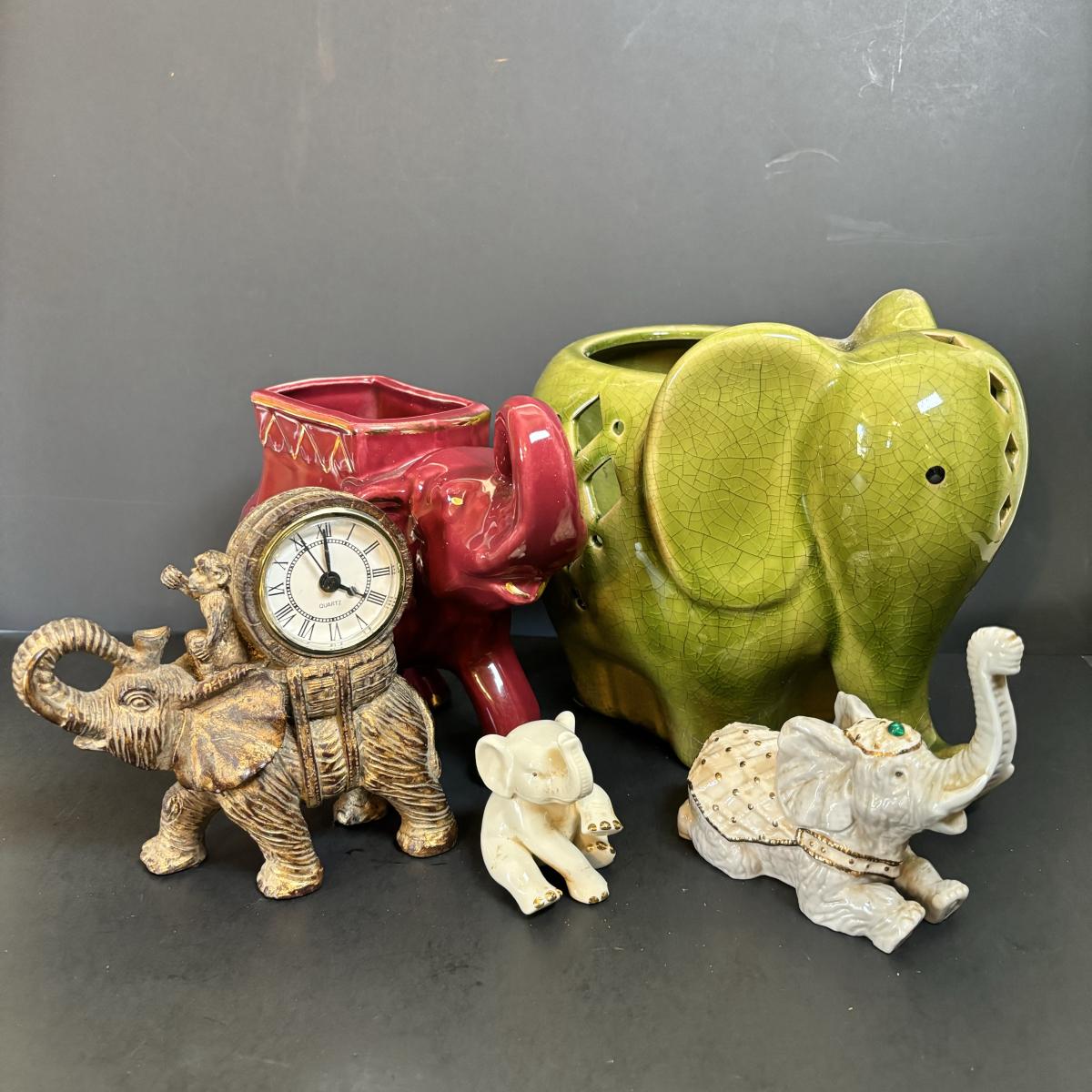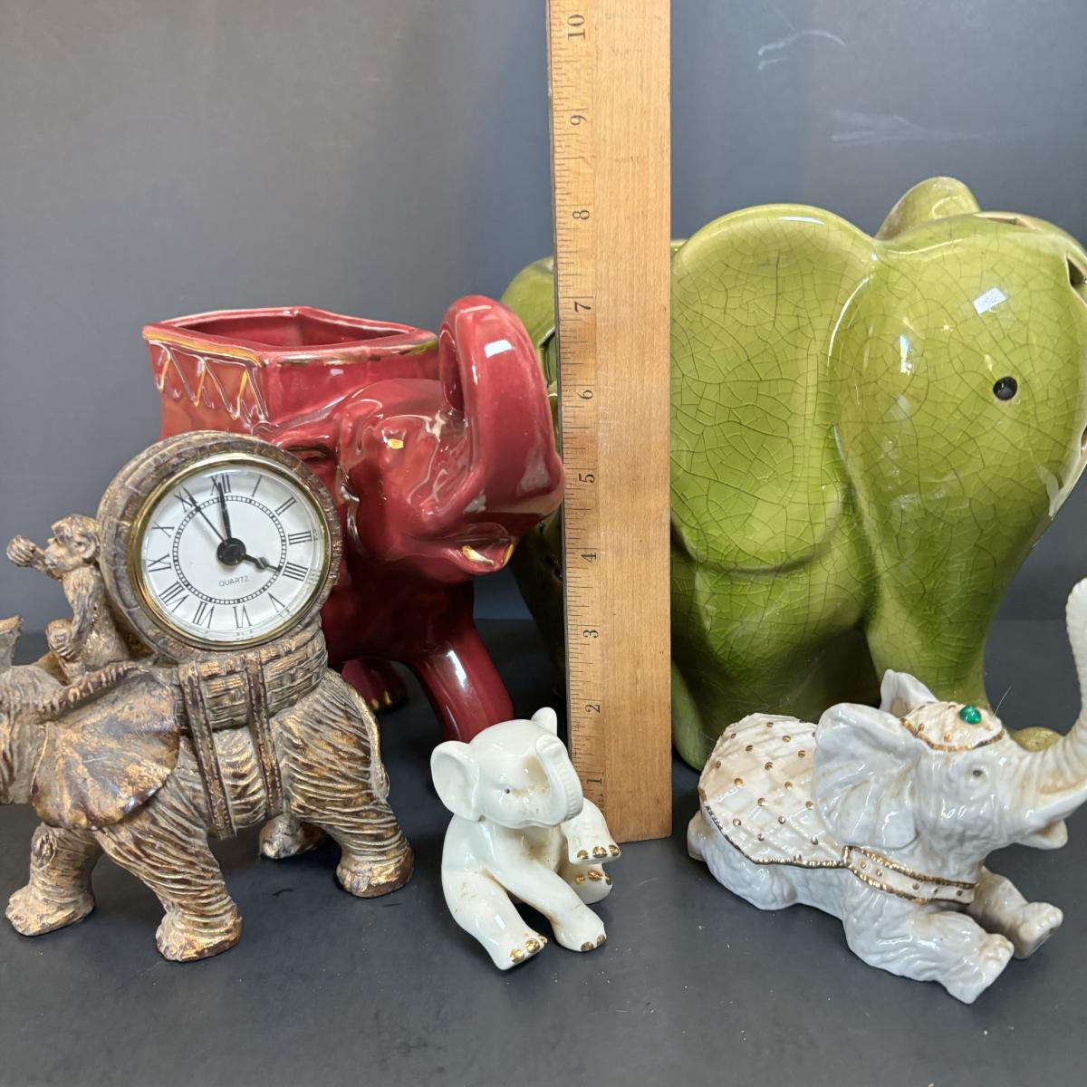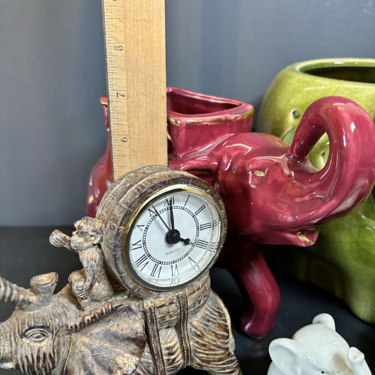 LOT 73: Elephant on Parade - Lenox Porcelain Elephant Figurine, Ceramic Elephant Planter, Elephant Clocks and More