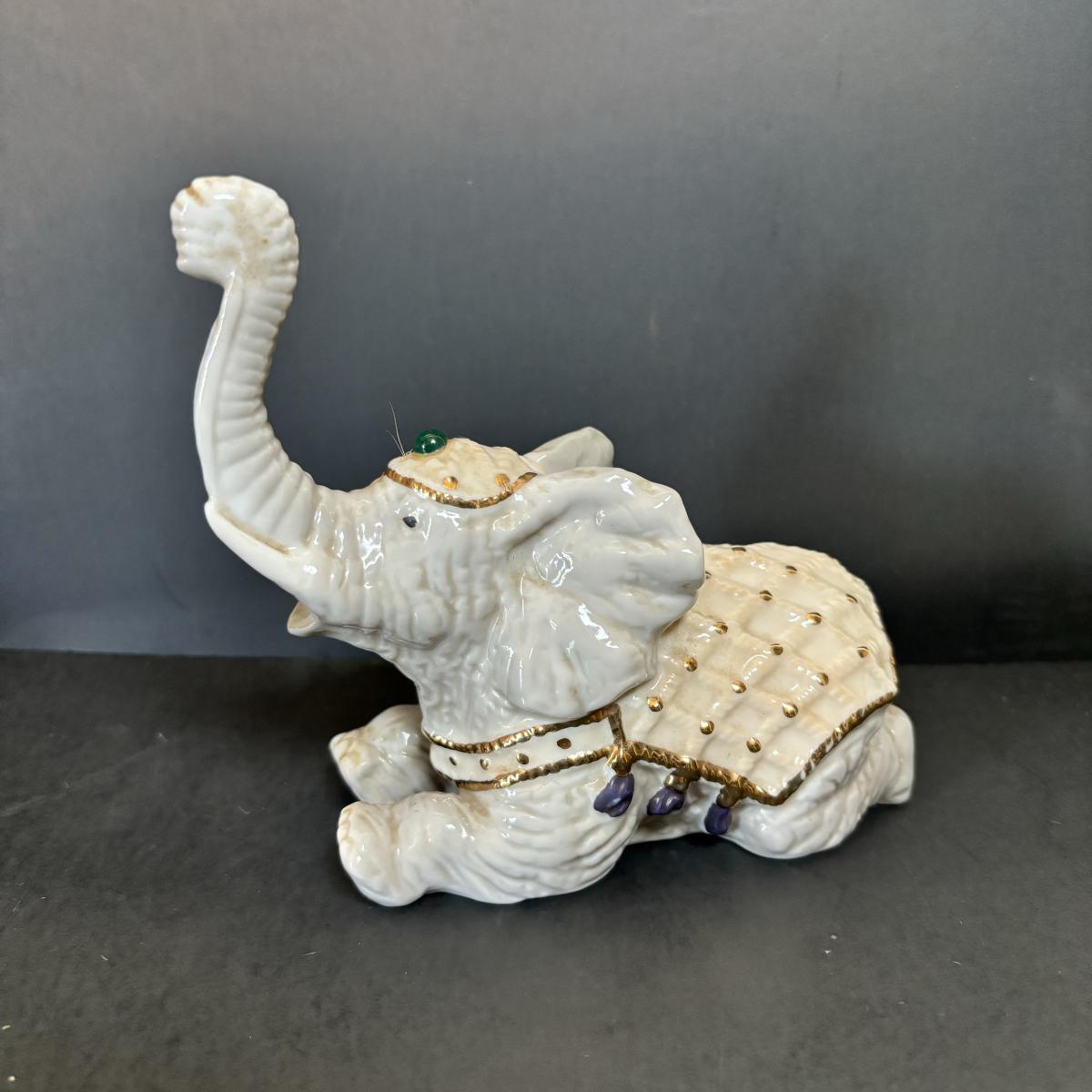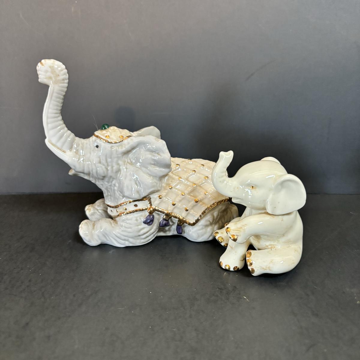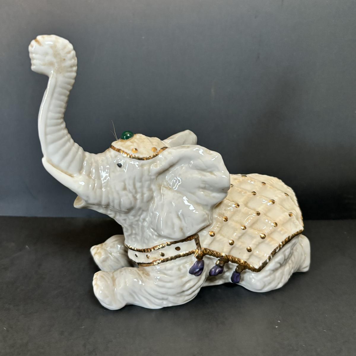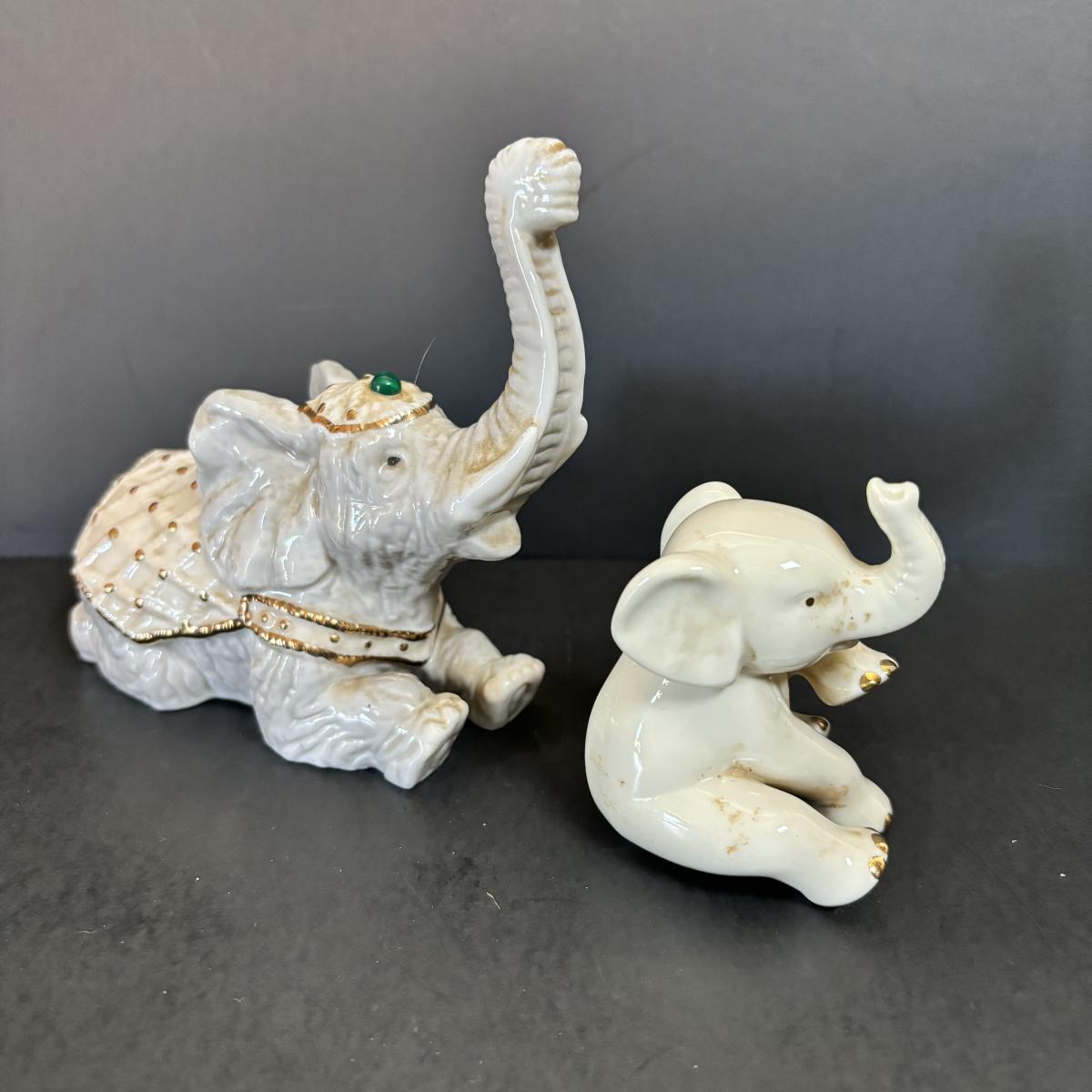 LOT 73: Elephant on Parade - Lenox Porcelain Elephant Figurine, Ceramic Elephant Planter, Elephant Clocks and More