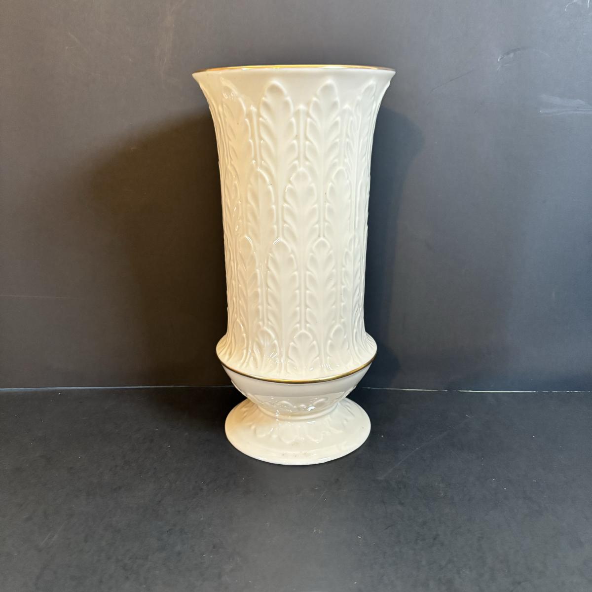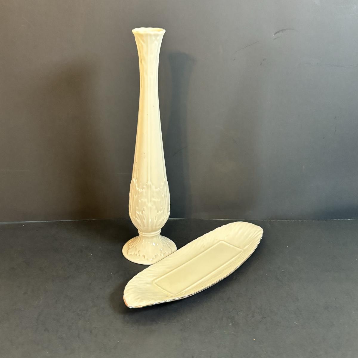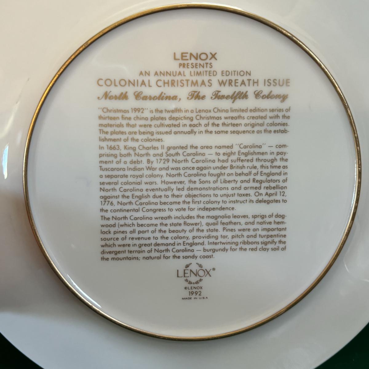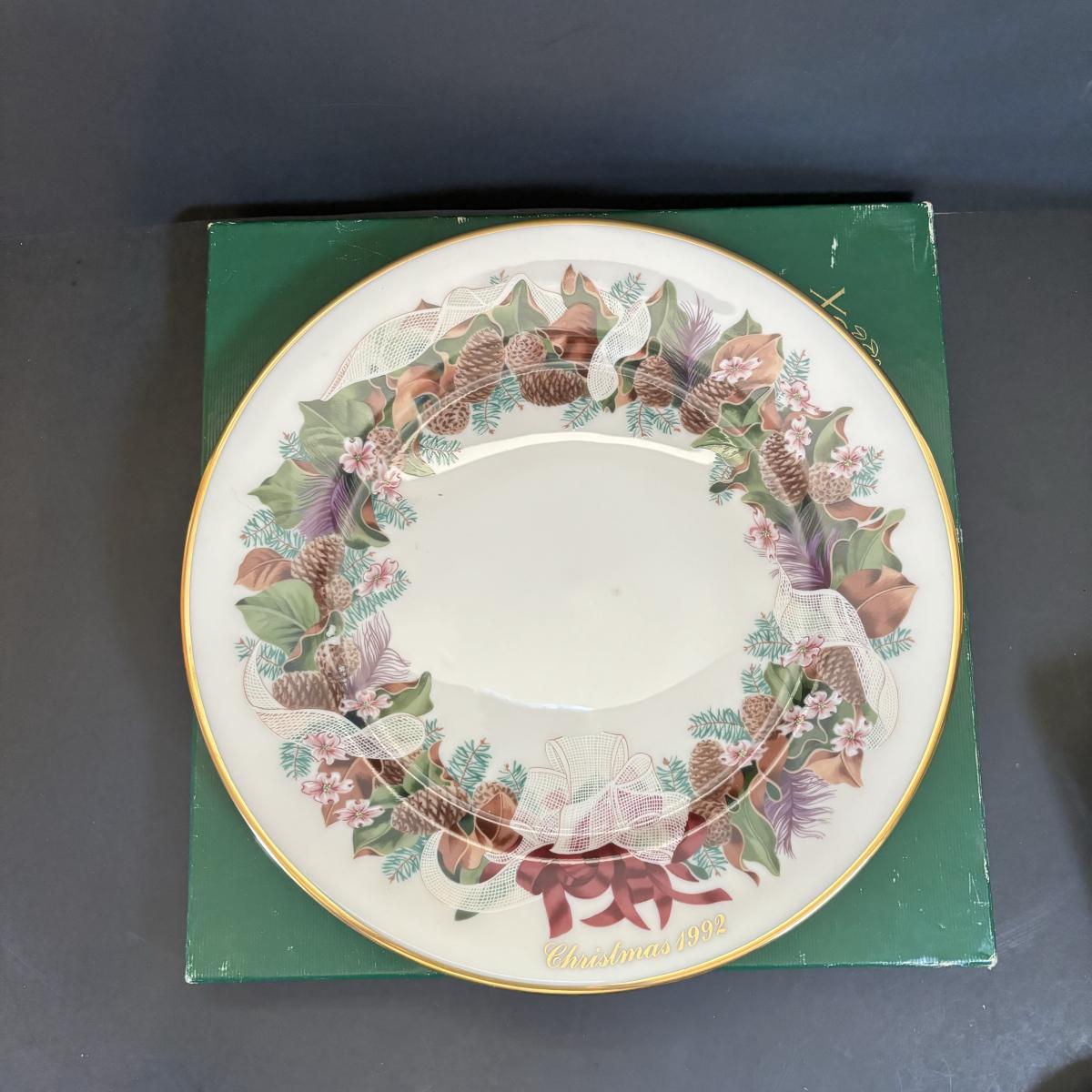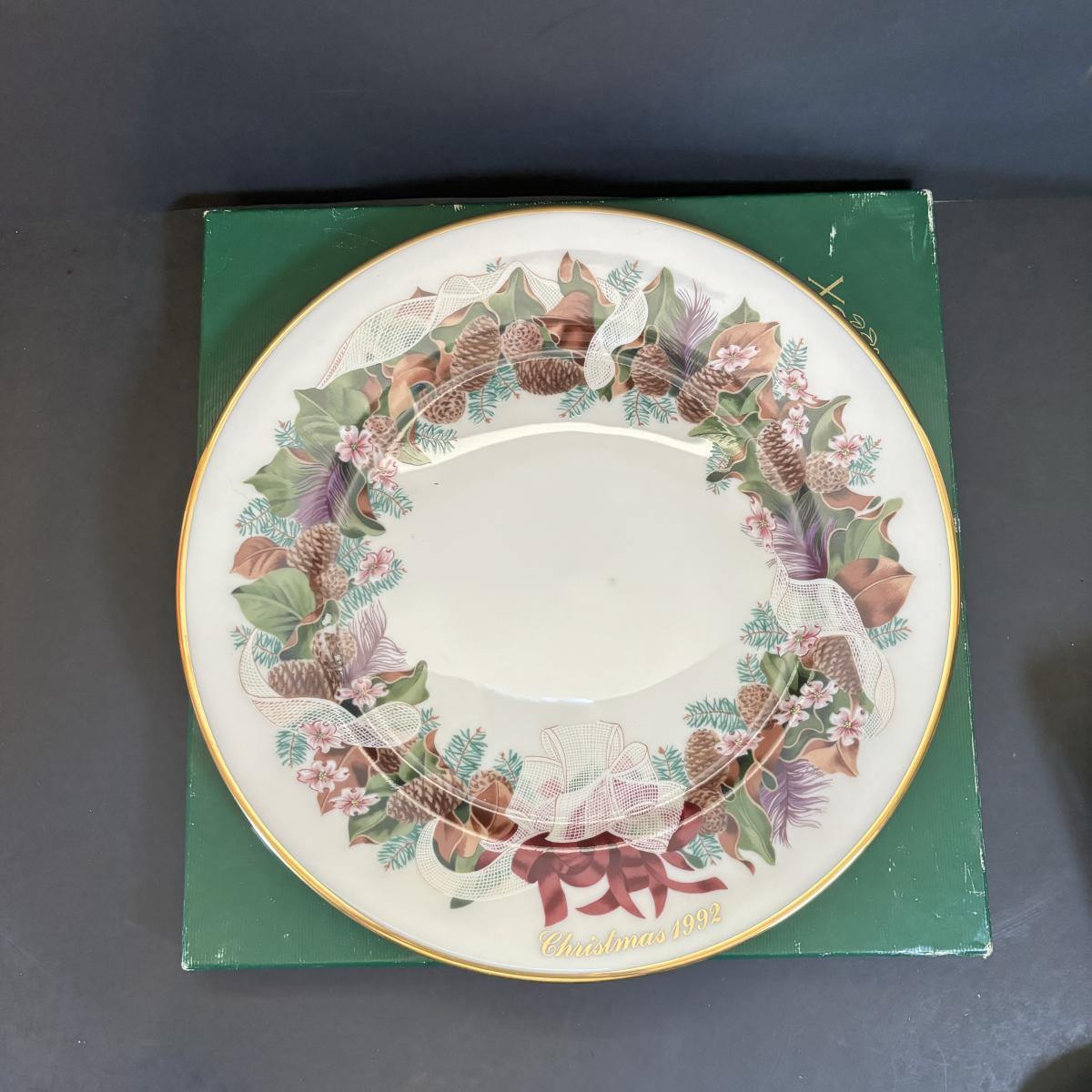 LOT 78: Collection of Lenox China Including Woodland Budvase and Dish, Holy Berry Hope Dish, Scalloped Plate, Ornament, Collector Plate and Large Acanthus Leaf Vase