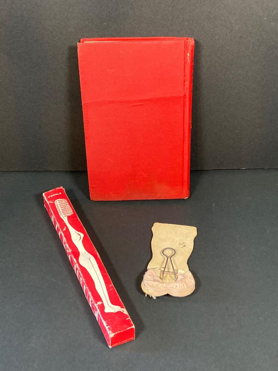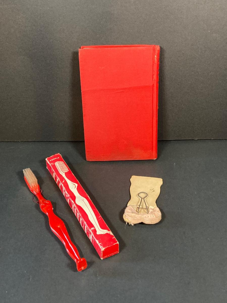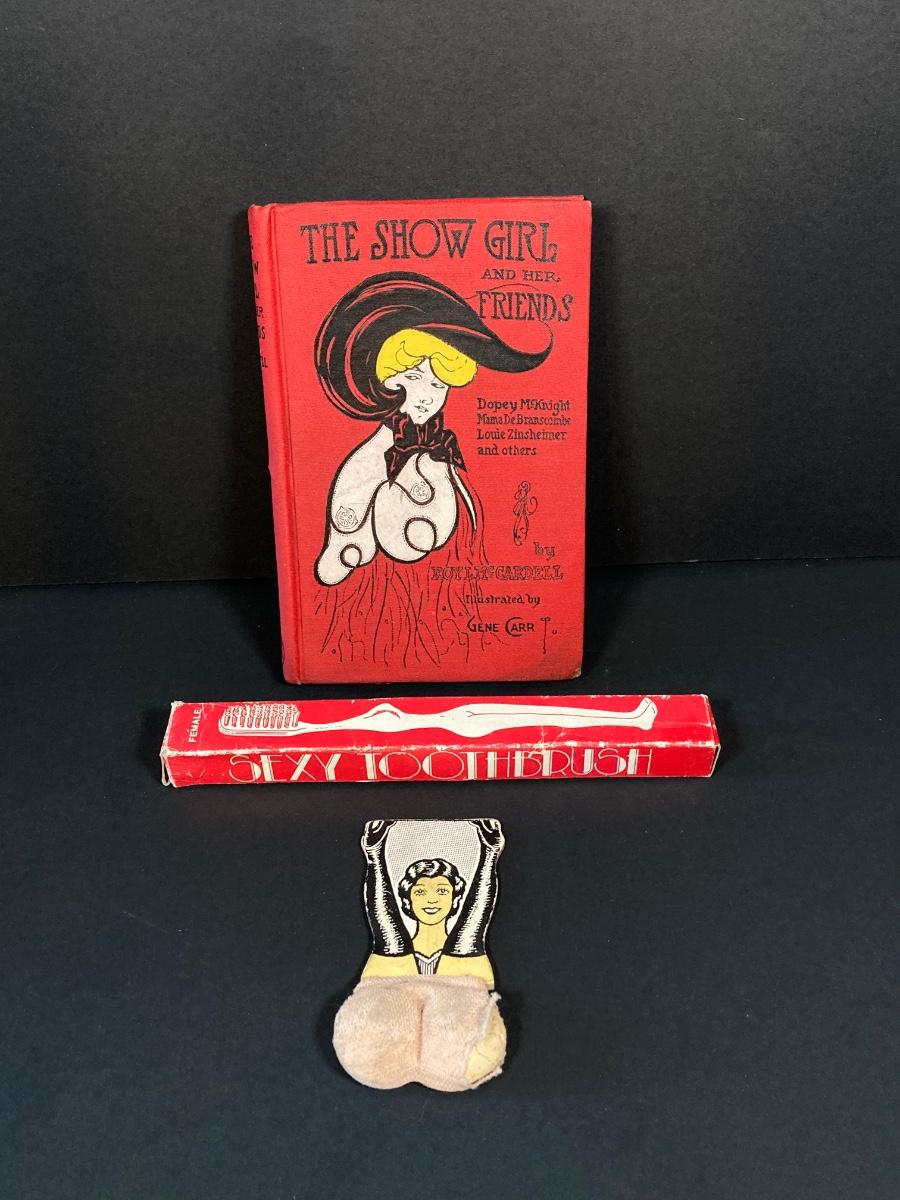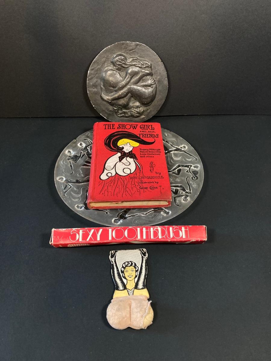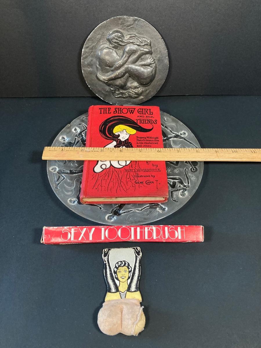 LOT 85: Vintage Erotica Collection - Plaque, Glass Plate, Sexy Toothbrush, Book and More