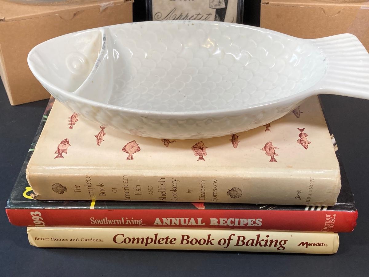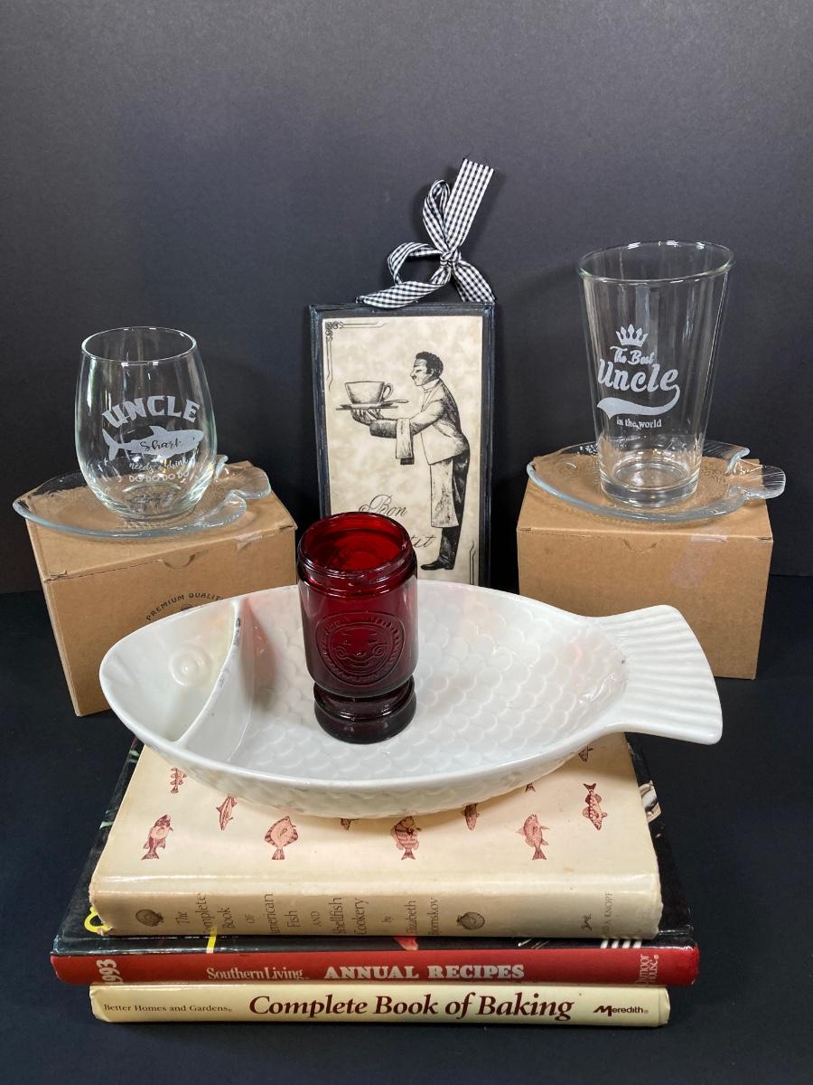 LOT 90D: Cook Books, Uncle Glasses, Fish Dish and More