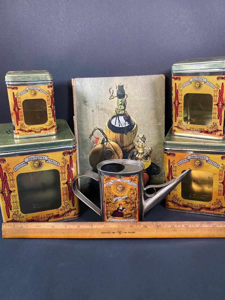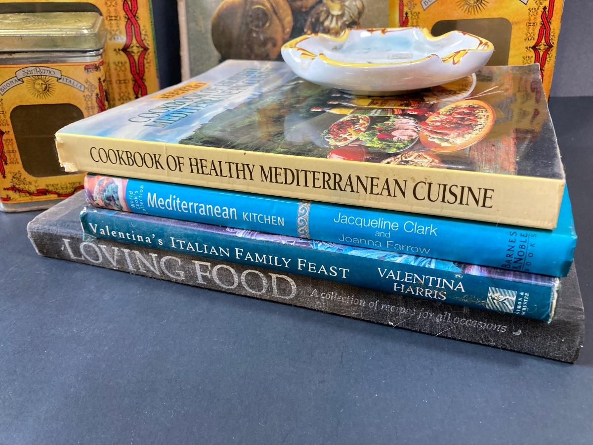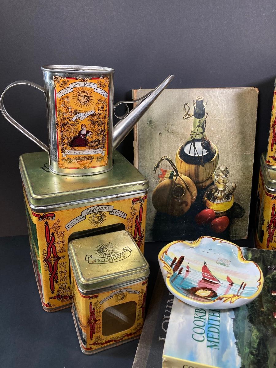 LOT 91D: A Touch of Italy - San Remo Olive Oil Tins, Wall Art, Ceramic Dish and Cookbooks