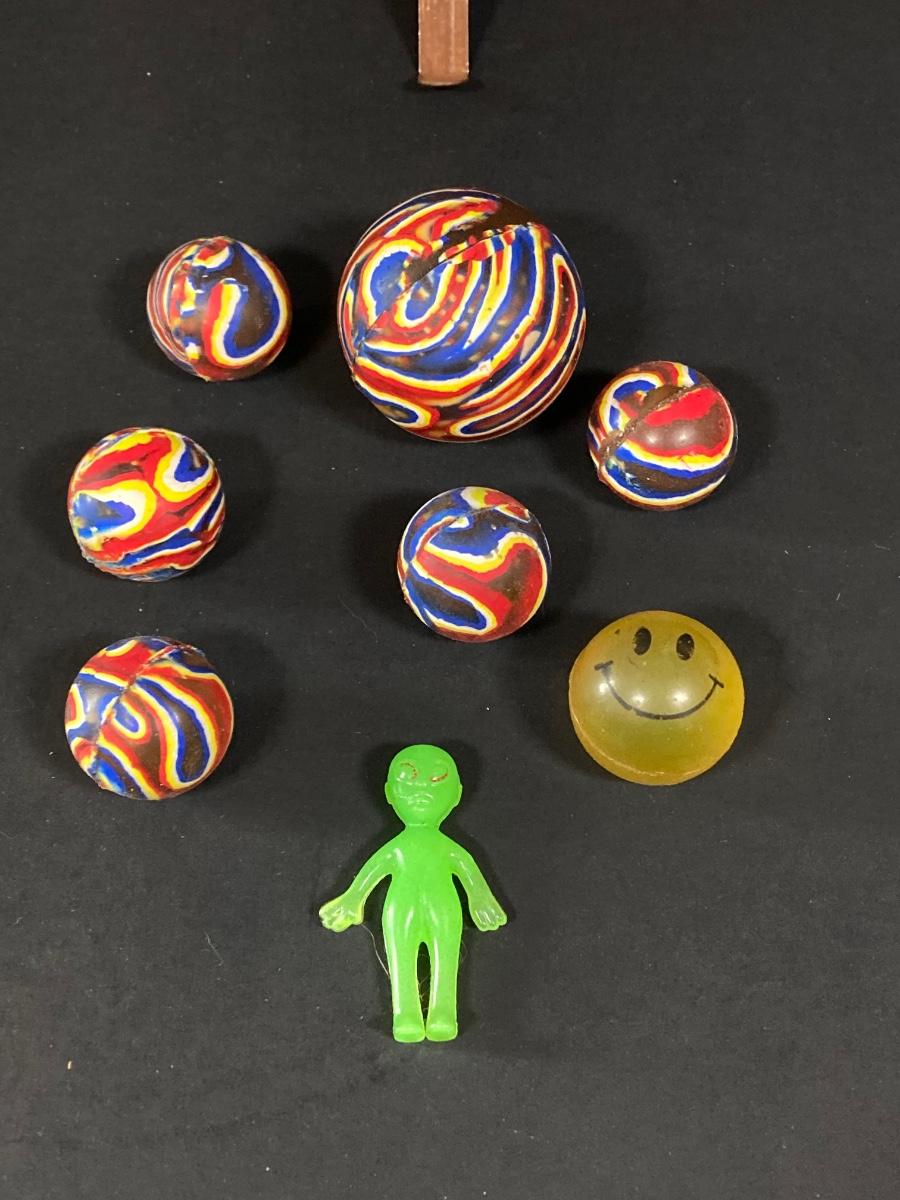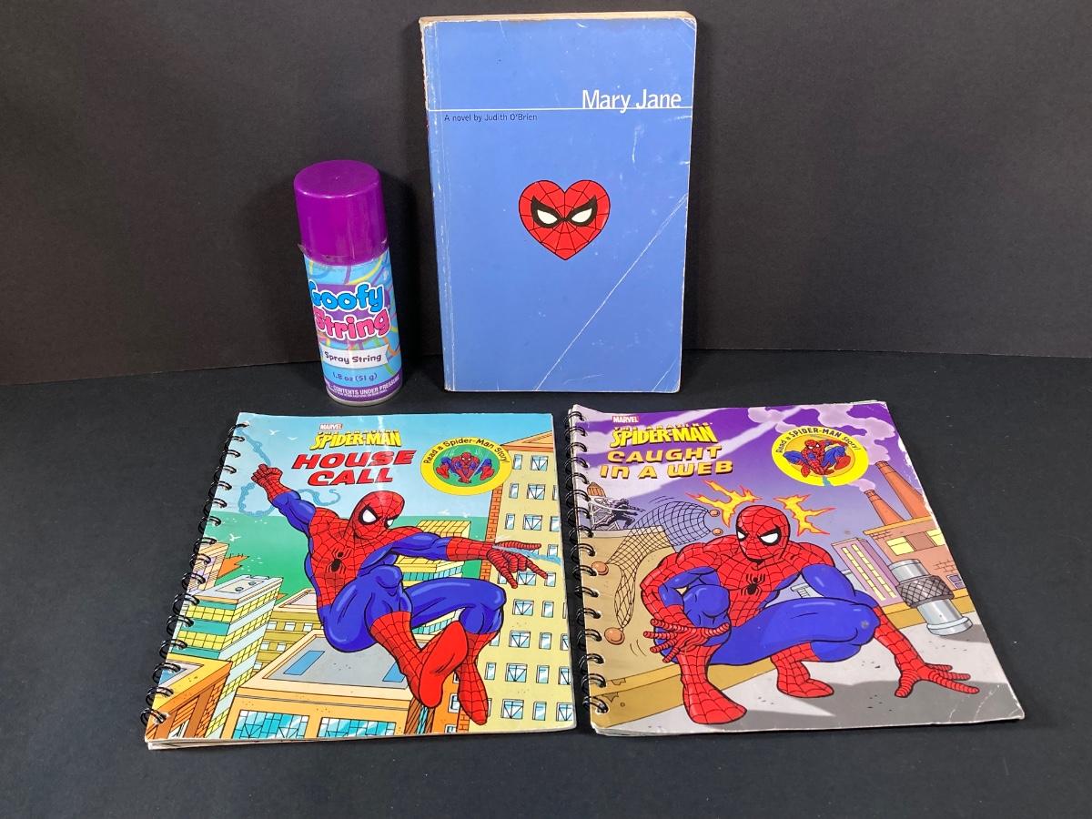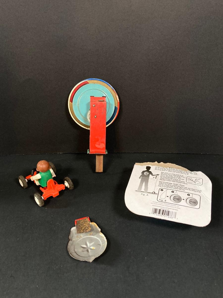 LOT 94: Vintage Toy Collection - Yoyo, Tin Spinner, Super Bouncy Balls, Matchbox and Other Toy Car, Spiderman Books, Goofy String and More
