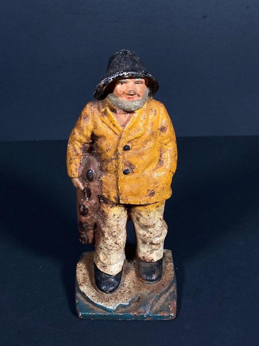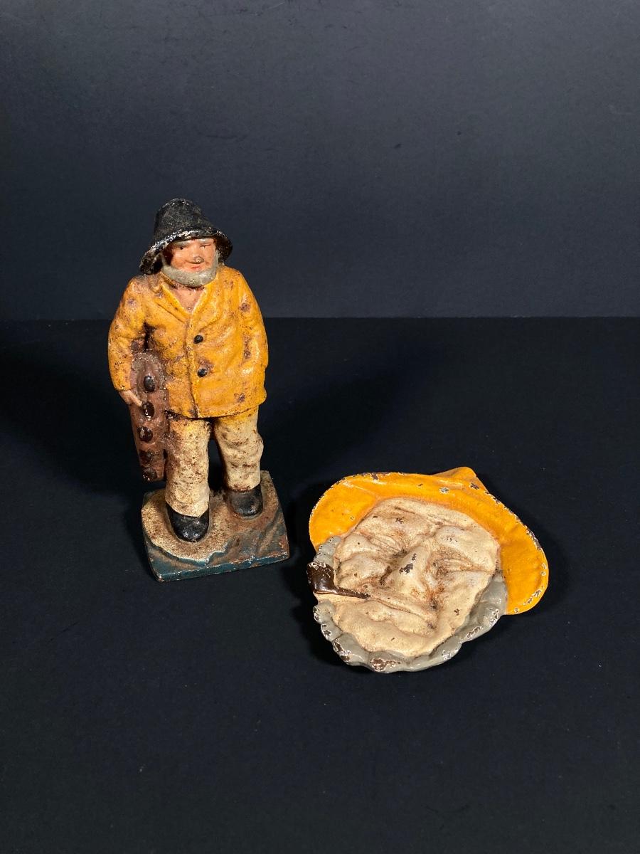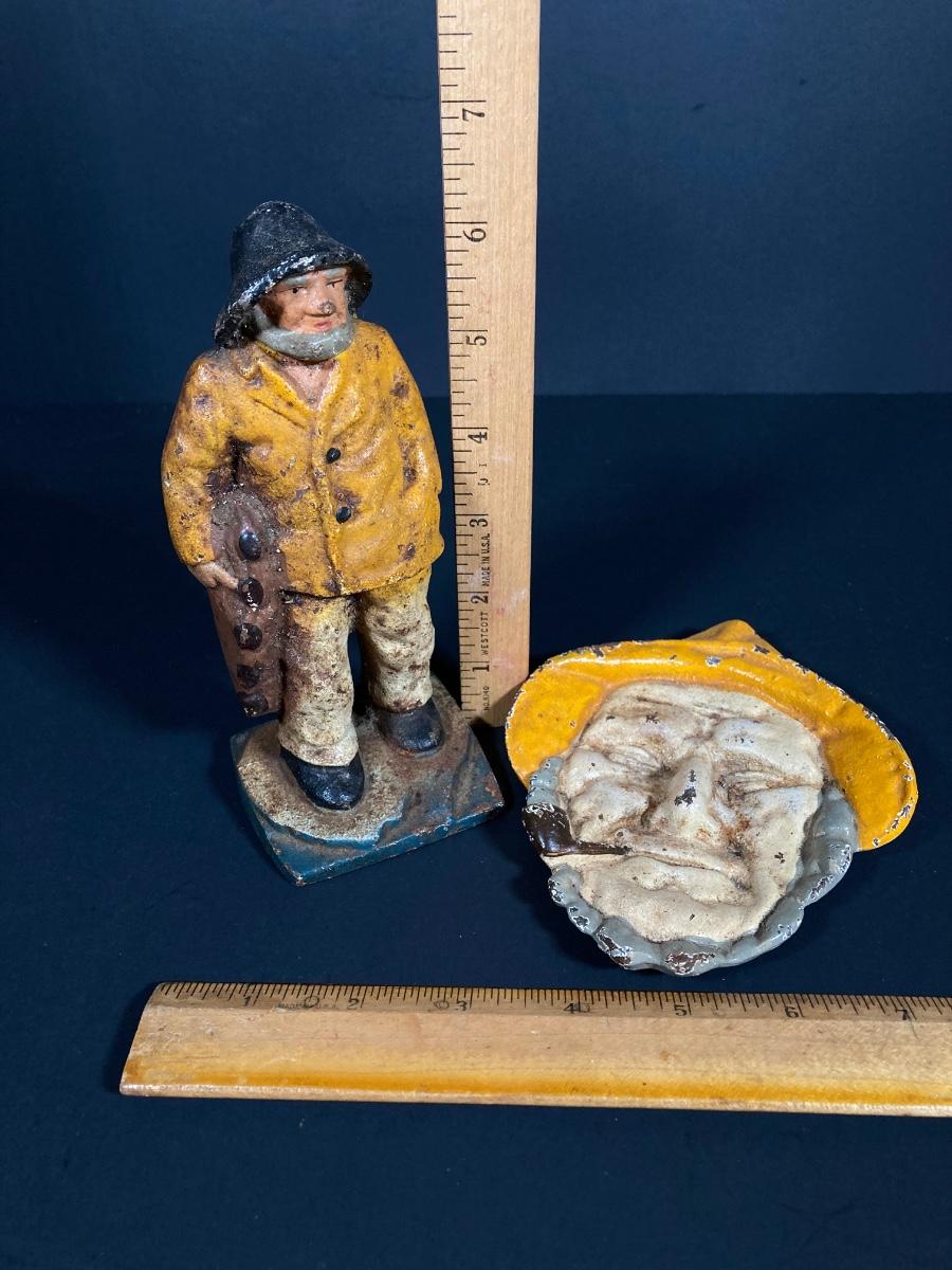 LOT 98: Vintage Painted Cast Iron Sailor Figurine and Head