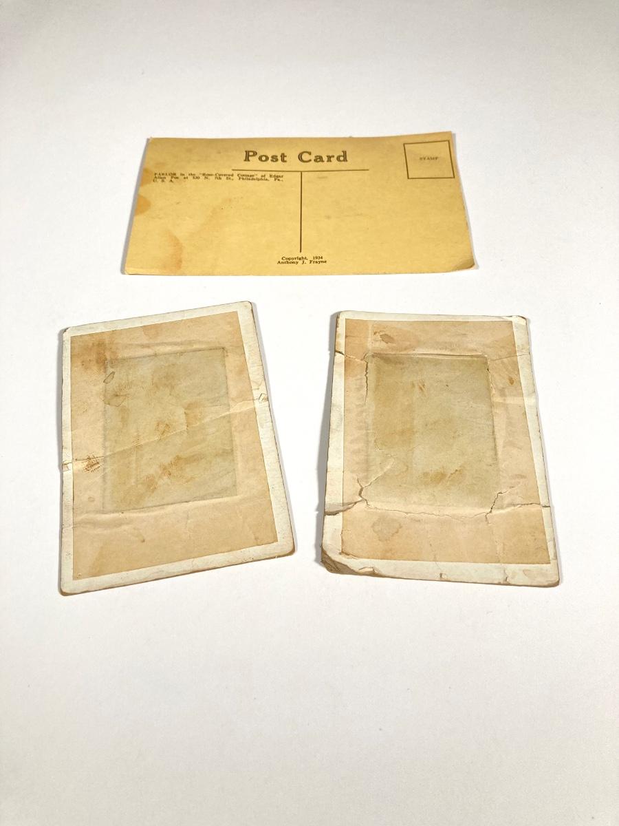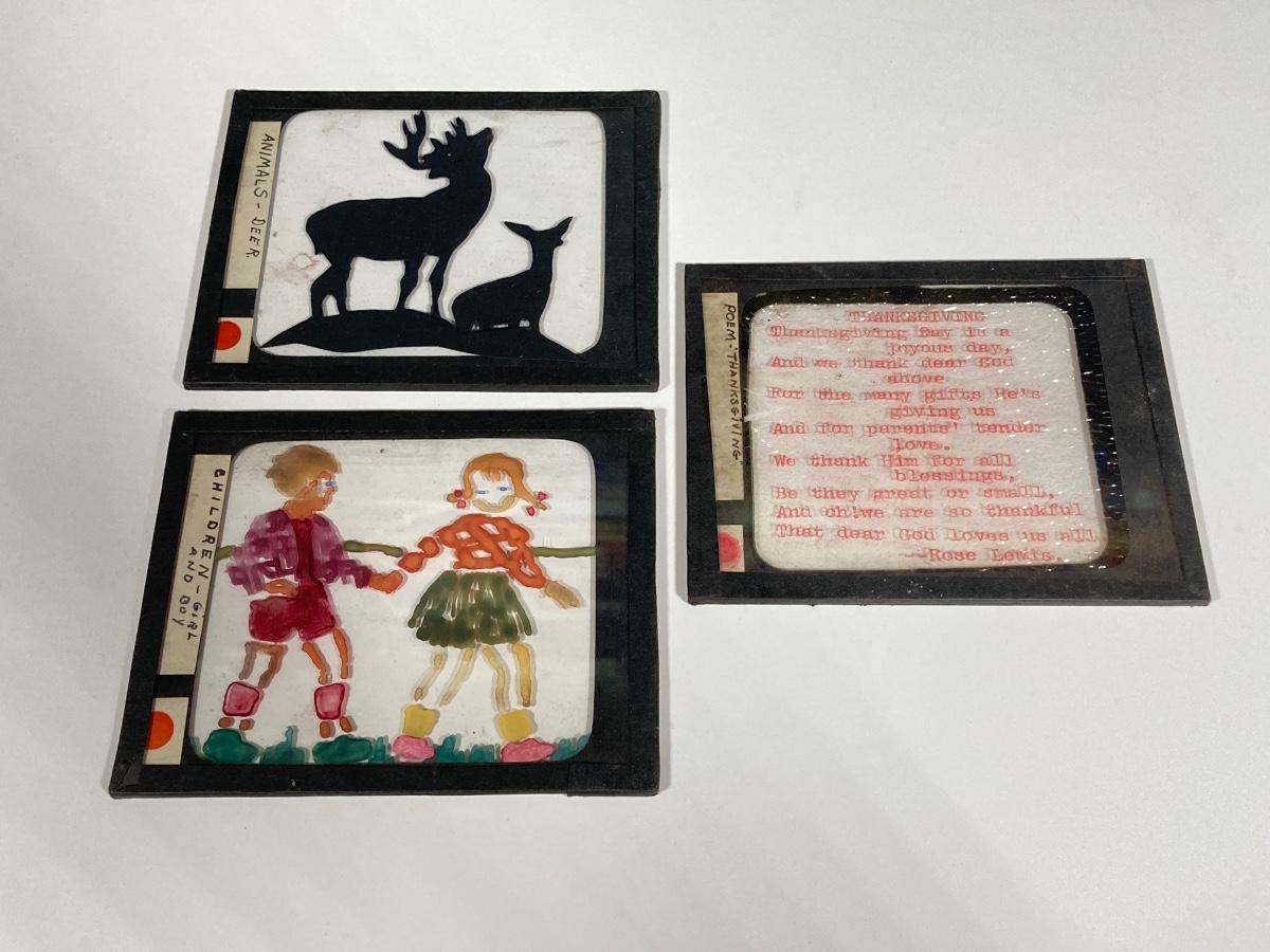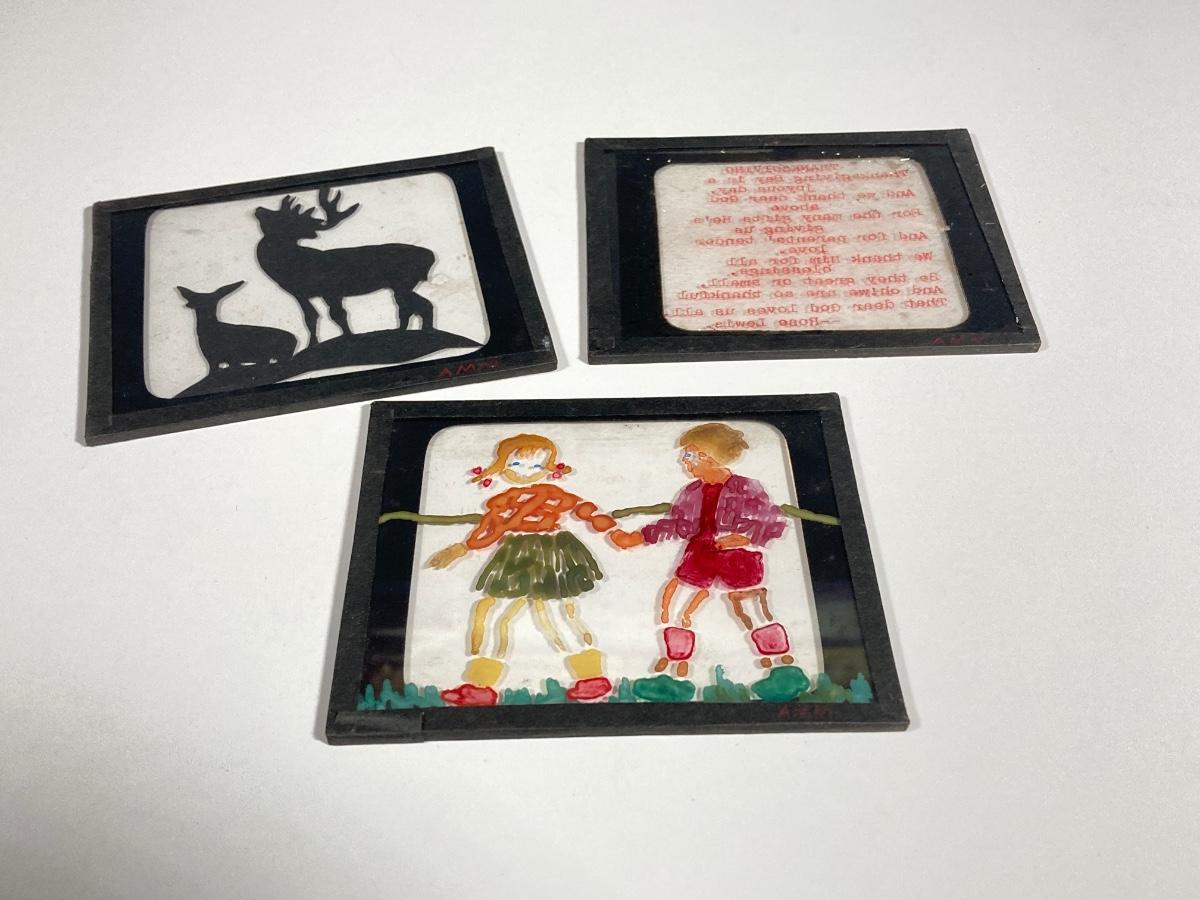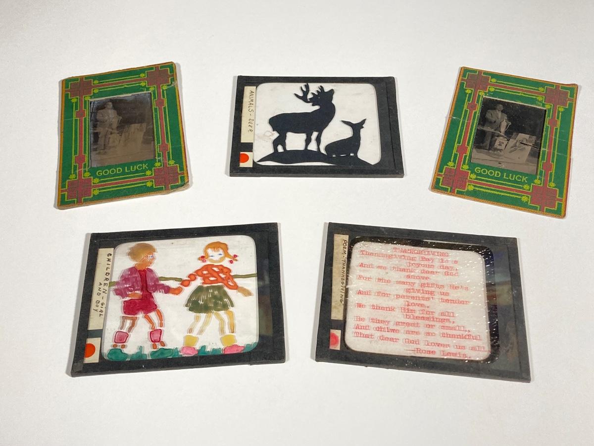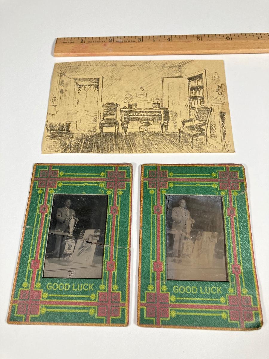 LOT 100: Vintage / Antique Collectibles Including Mechanical Wooden Bottle Stopper, Carved Wooden Sailor, Postcard, Bookbinder's Dish, Glass Slides and More