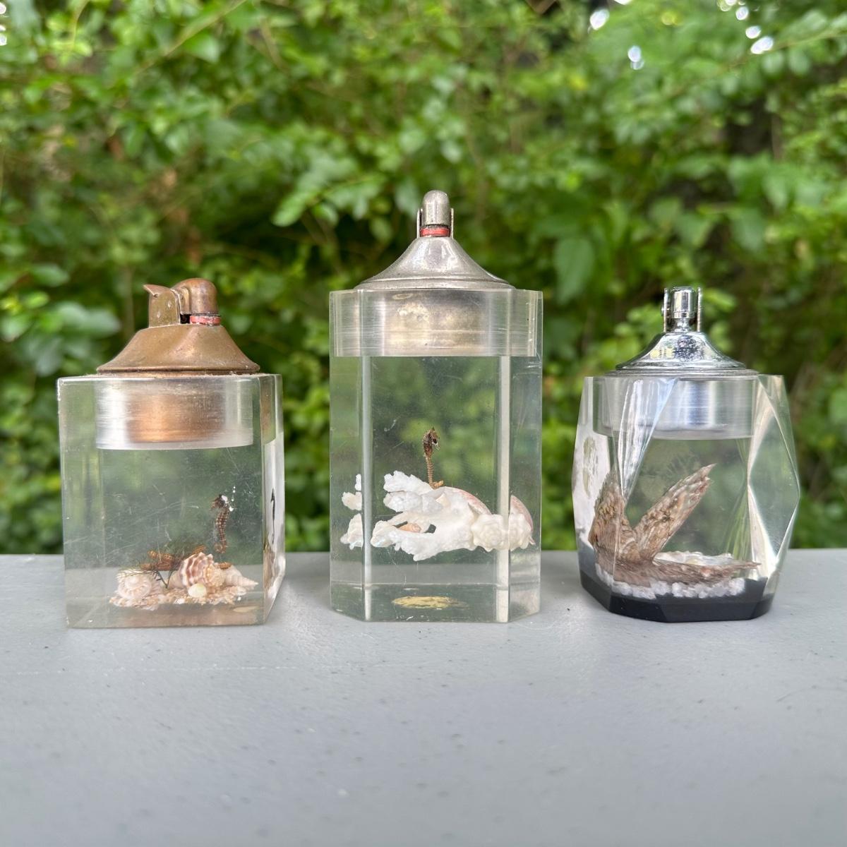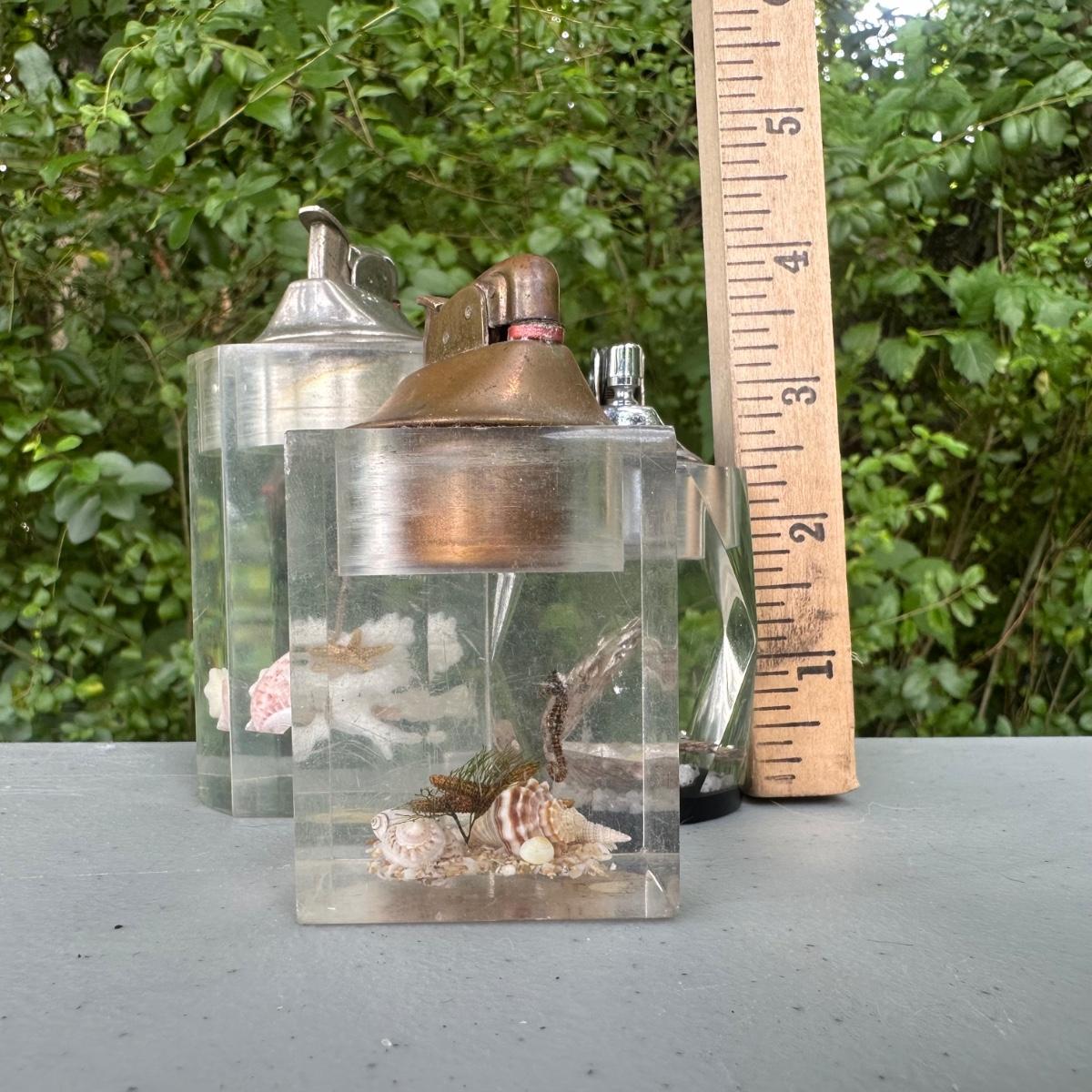LOT 117B: Vintage Lucite Ocean Scene Table Lighters (3)