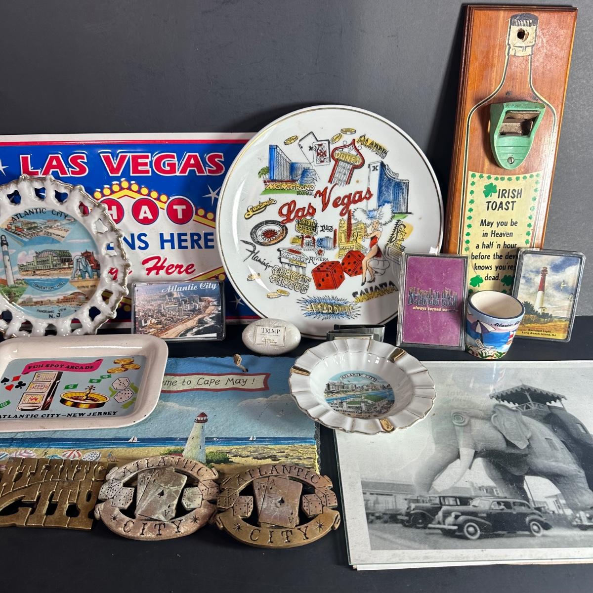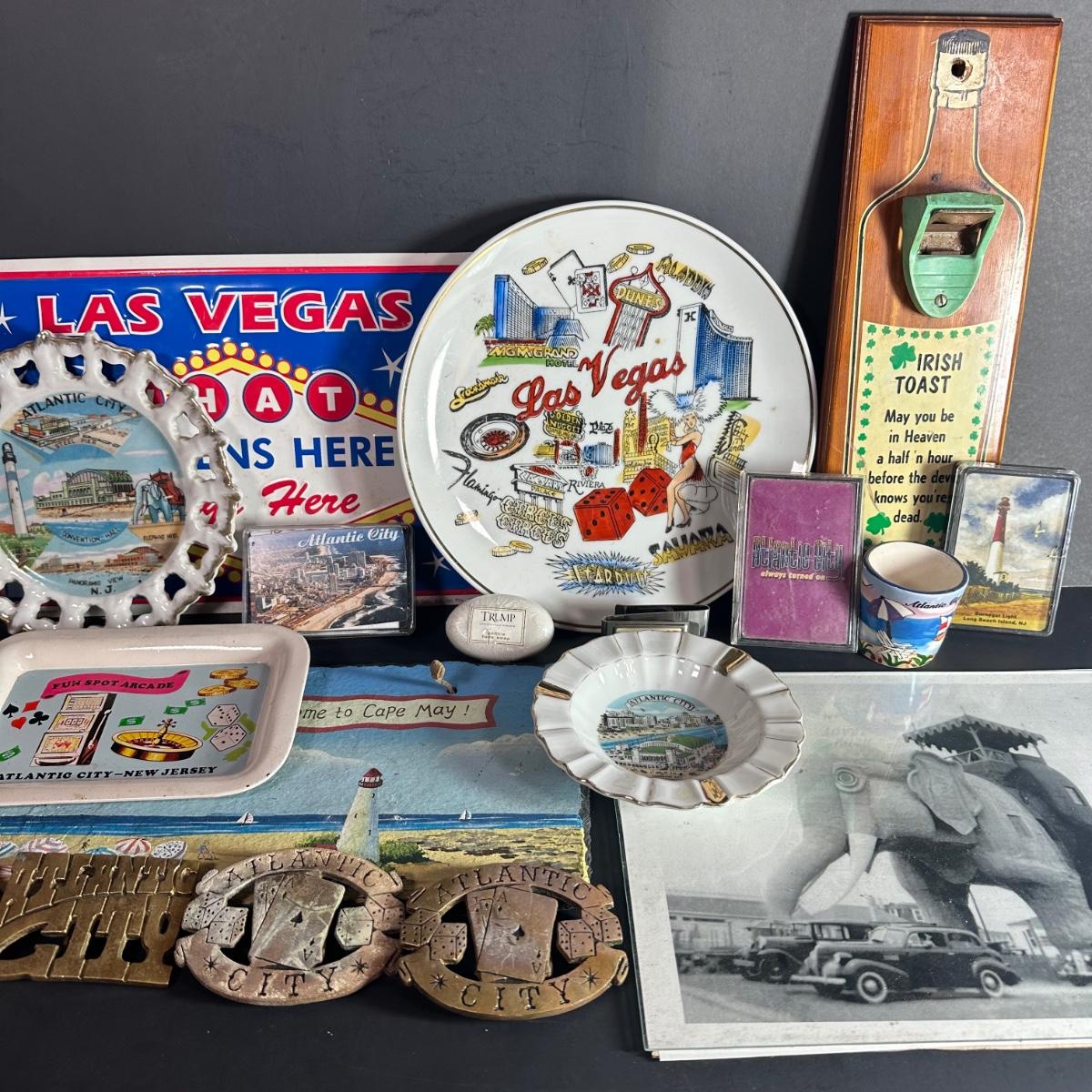 LOT 127s: Vintage Atlantic City NJ/Las Vegas Collectables ; Ashtrays, Playing Cards, Belt Buckles & More