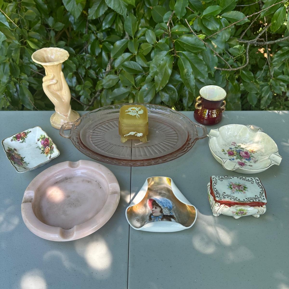 LOT 130S: Beautiful Ceramic/Glass Ashtrays, Trinket Box & More