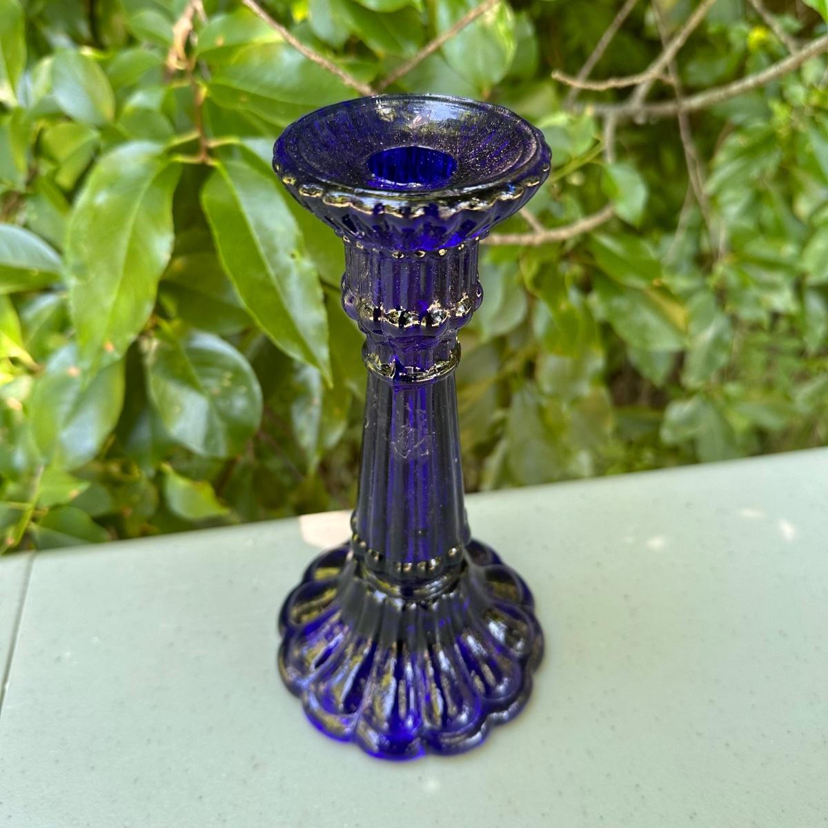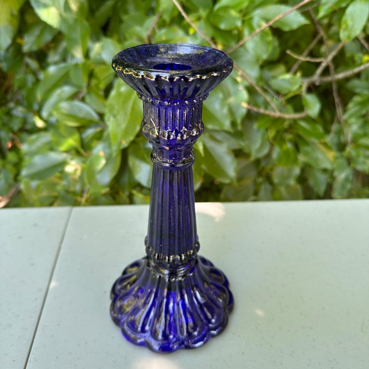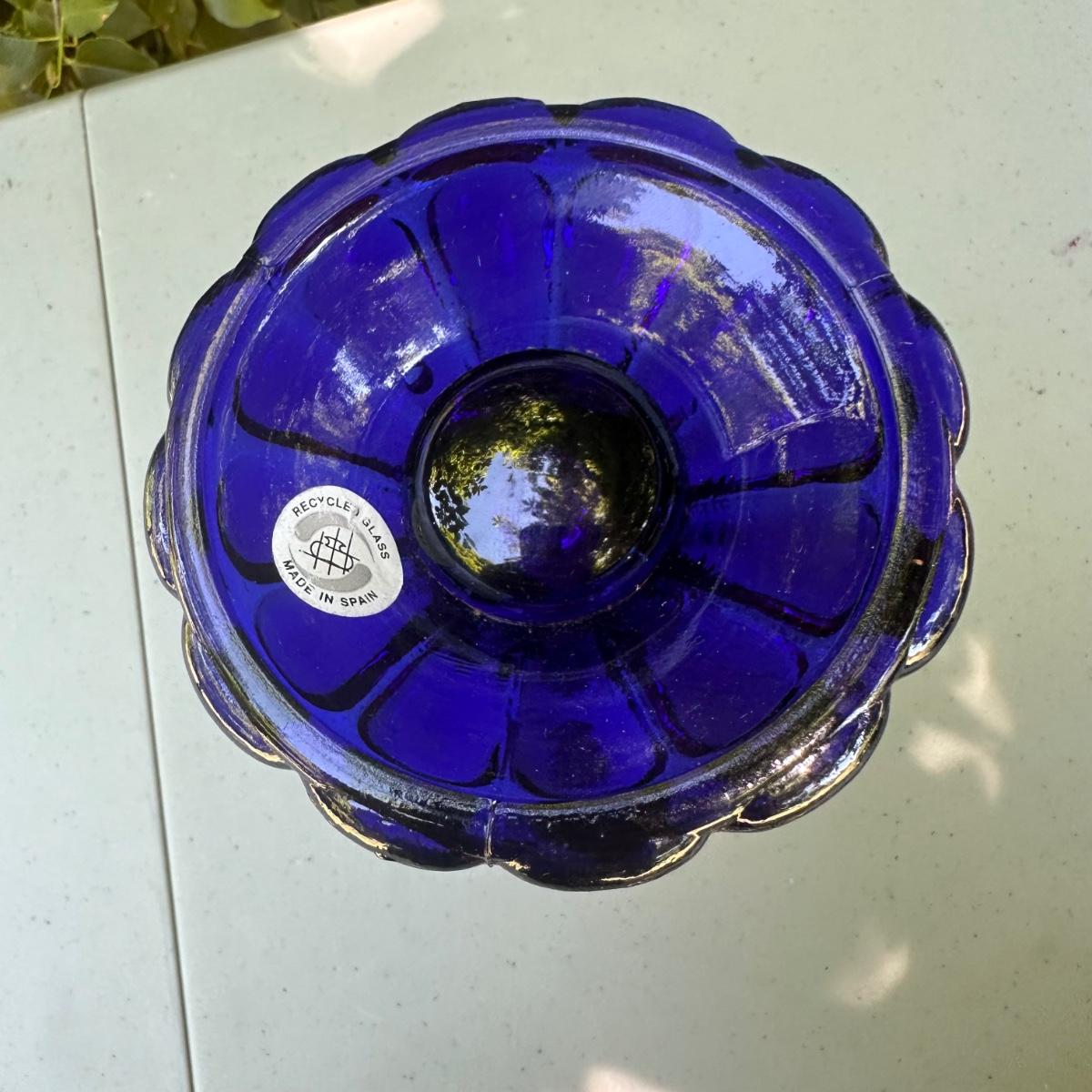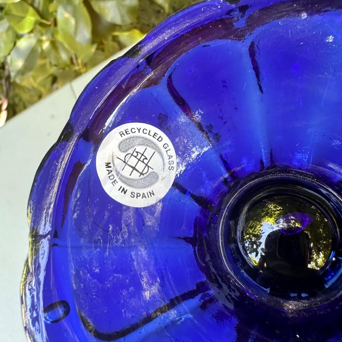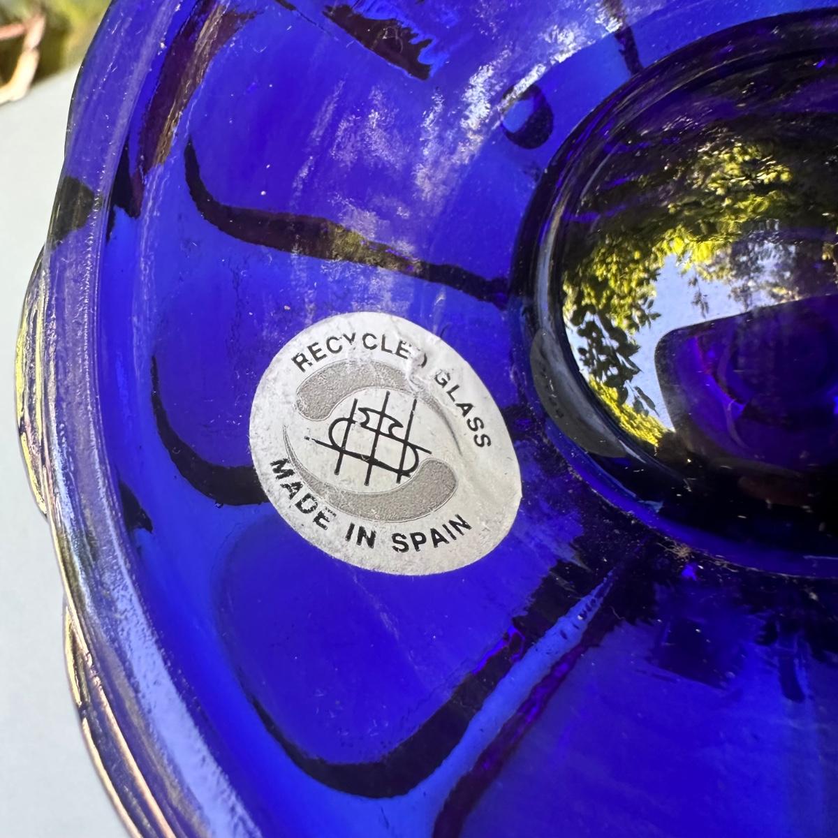 LOT 134S: Made In Spain Recycled Cobalt Blue Glass Candle Stick Holder