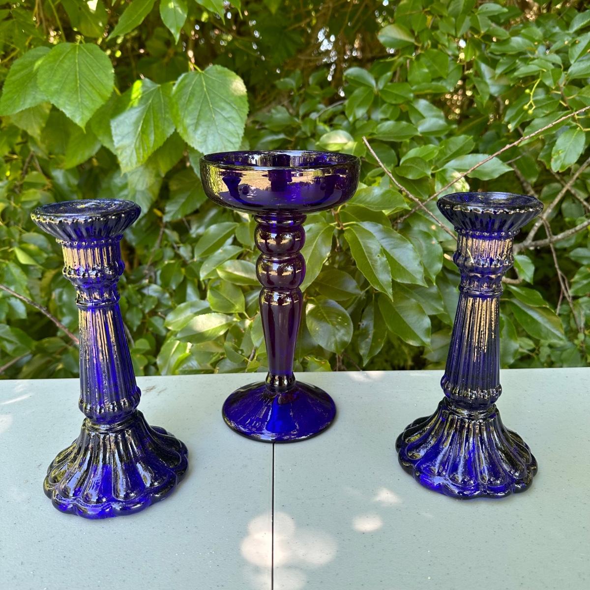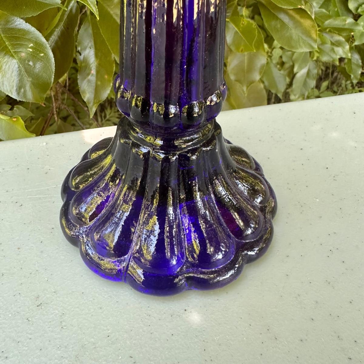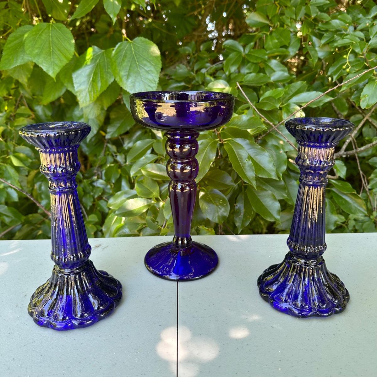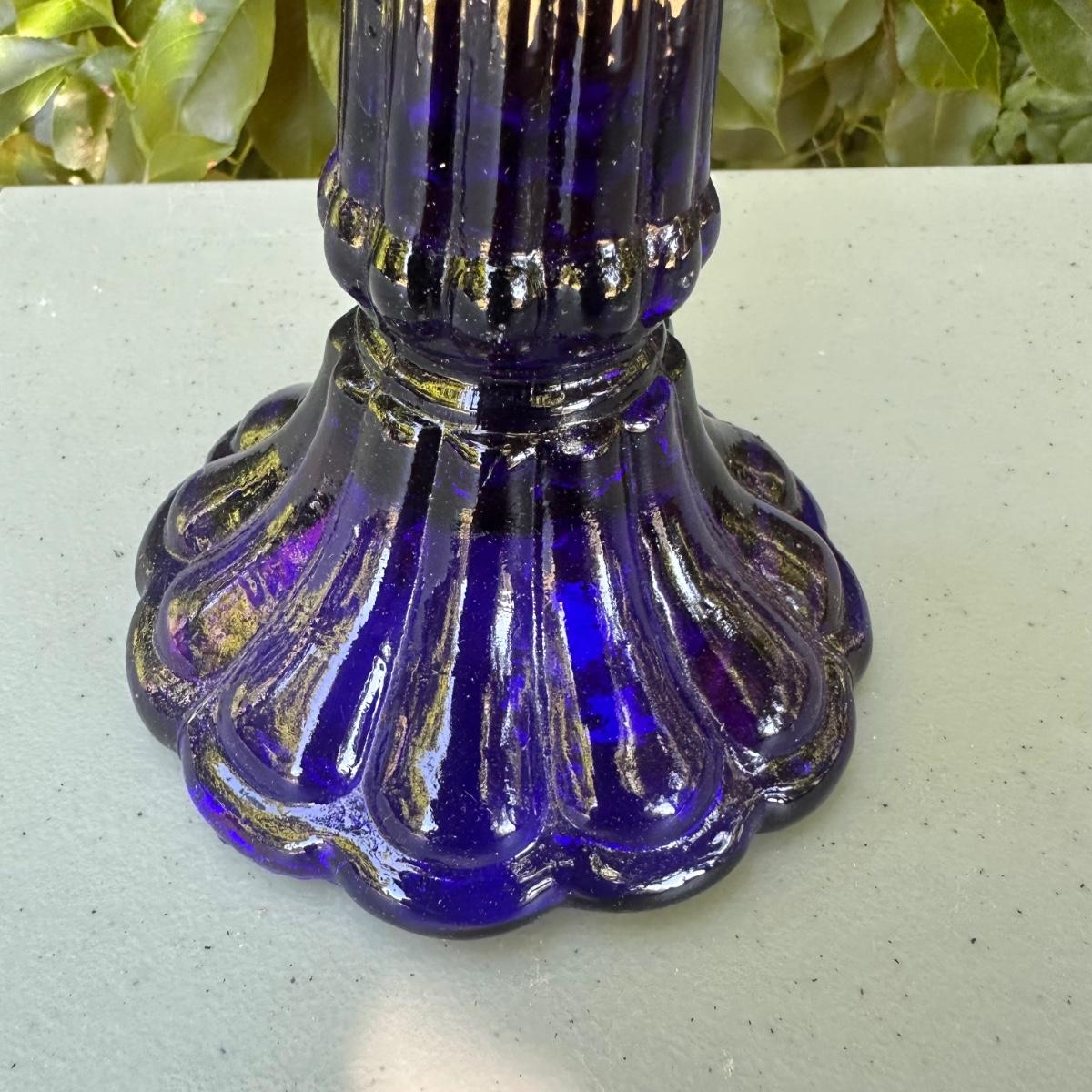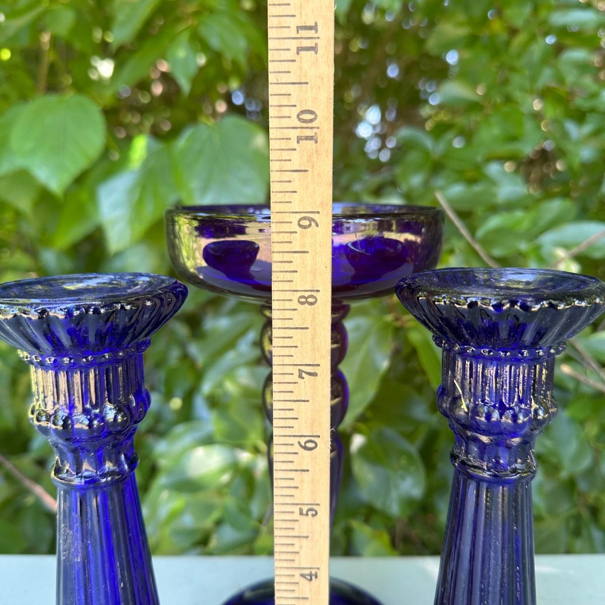 LOT 134S: Made In Spain Recycled Cobalt Blue Glass Candle Stick Holder