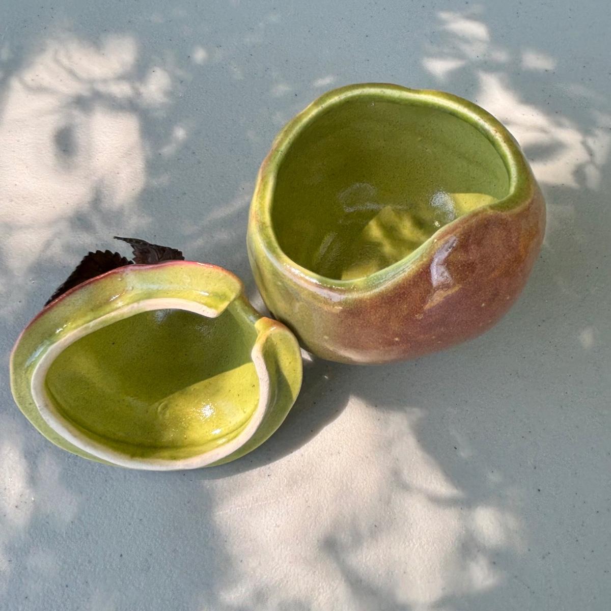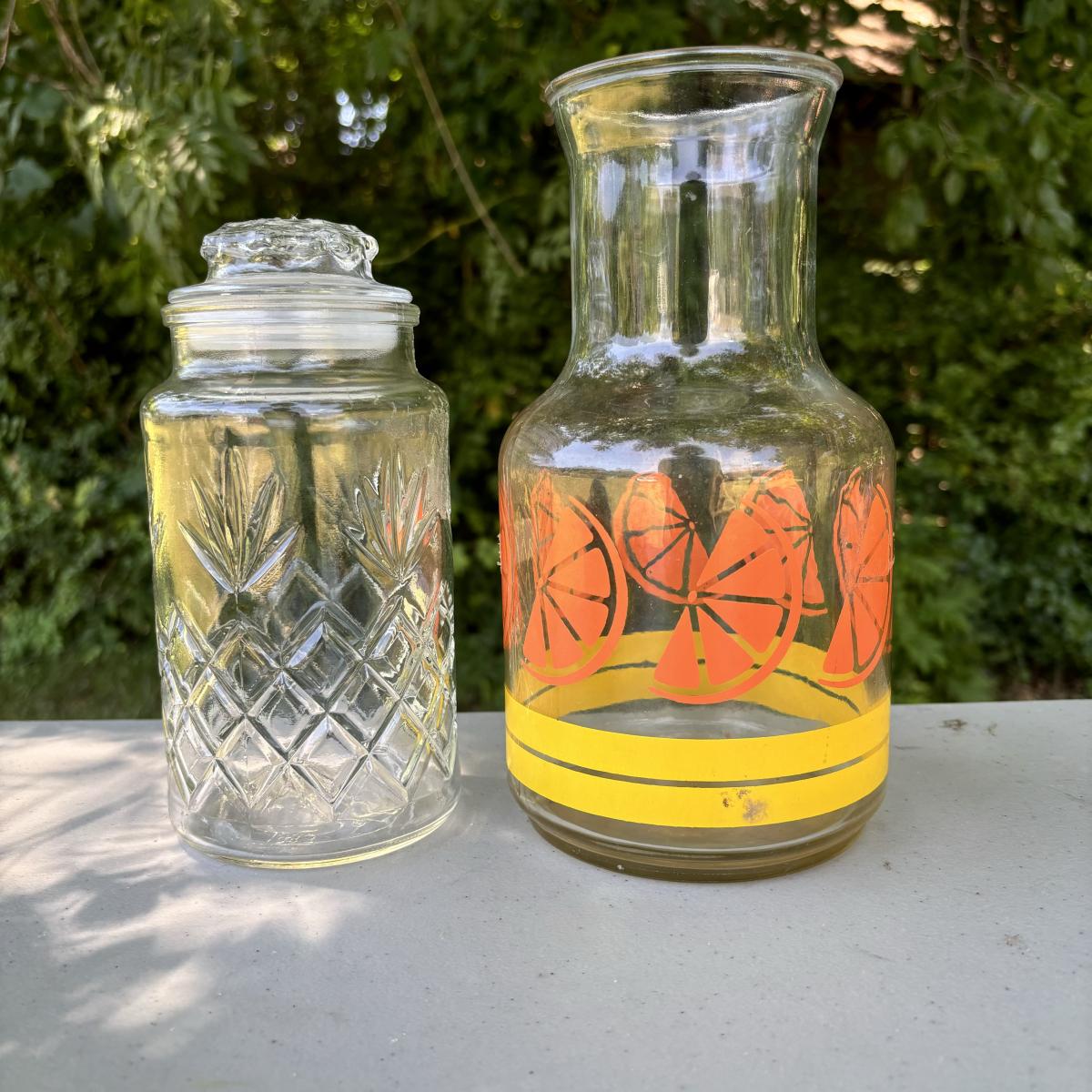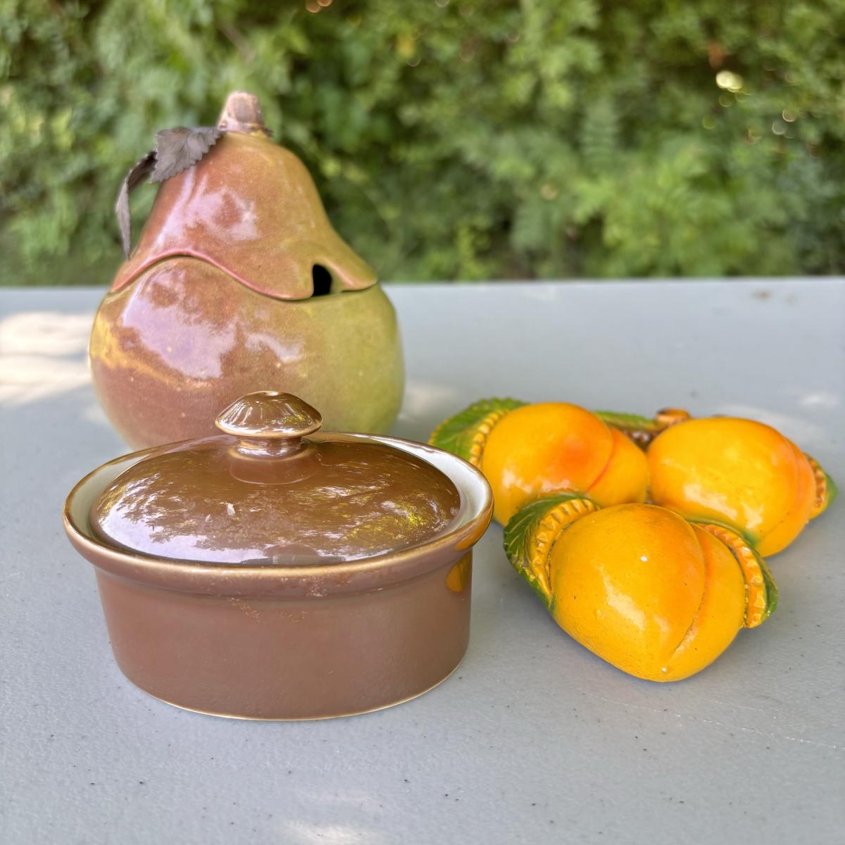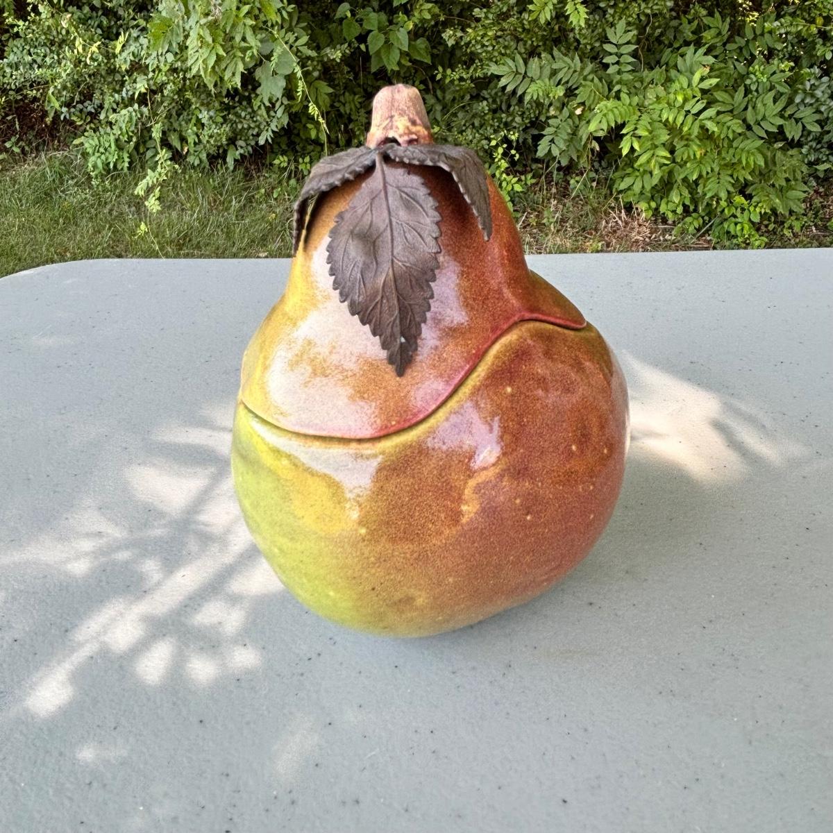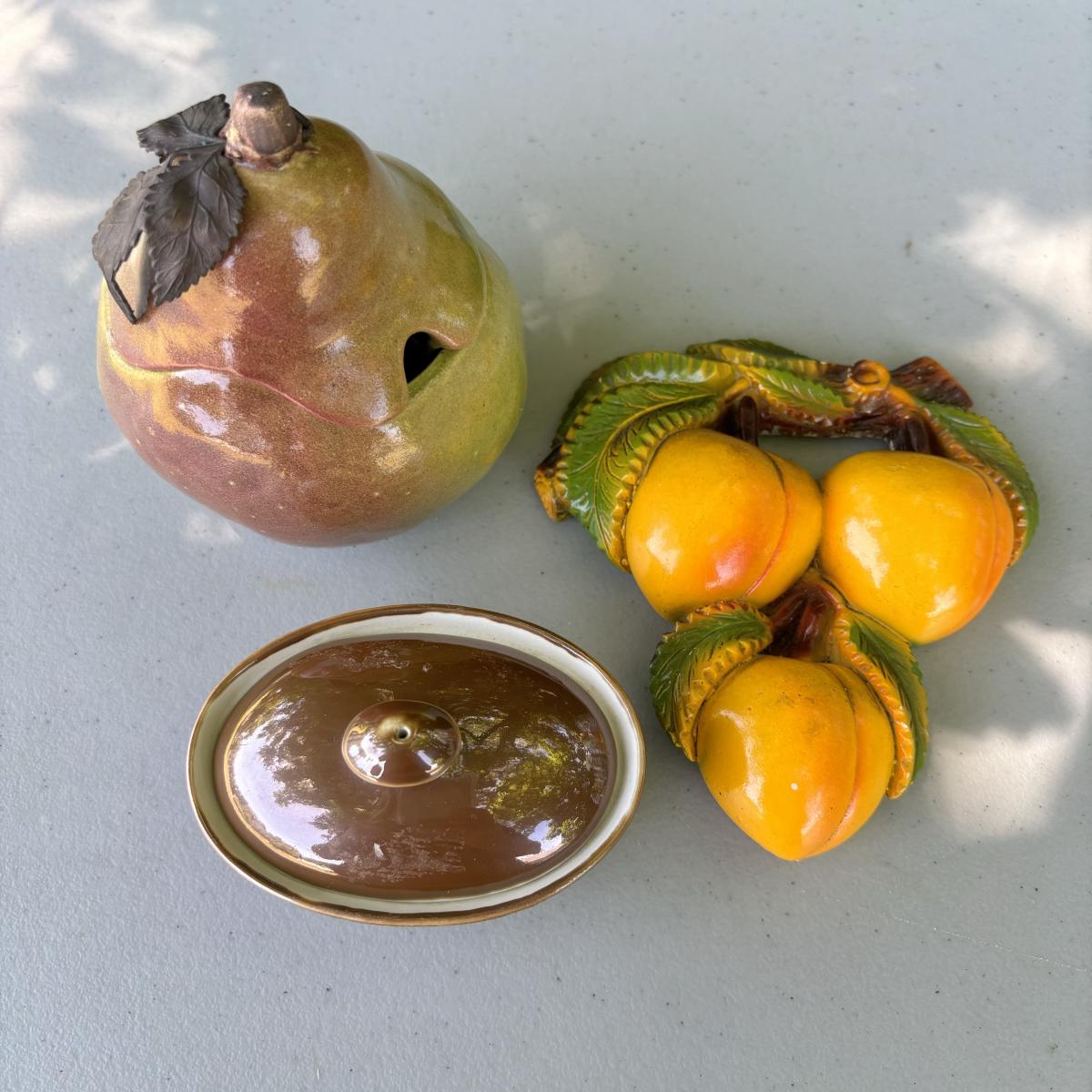 LOT 197: Luminarc Blue & Green Stripe 10.5oz Beverage Glasses, Small Pillivuyt Covered Dish, Signed Pear Sugar Bowl & More
