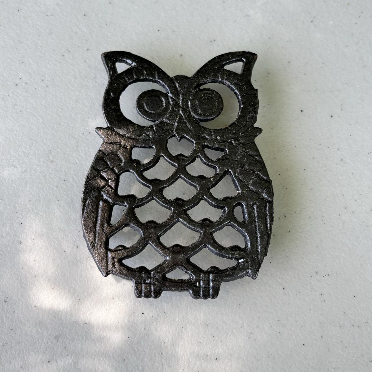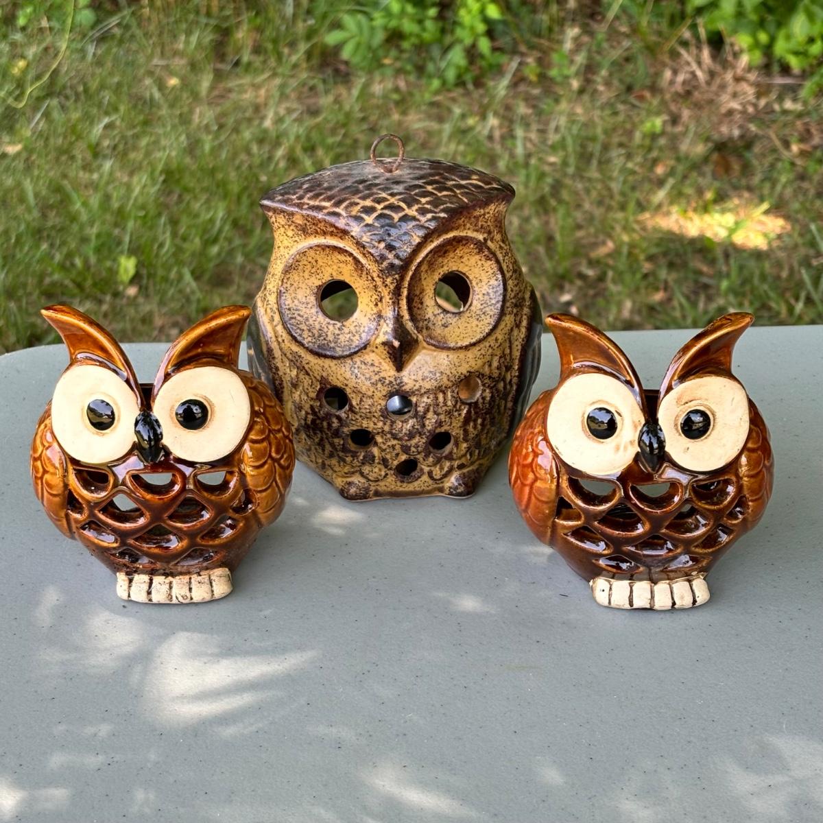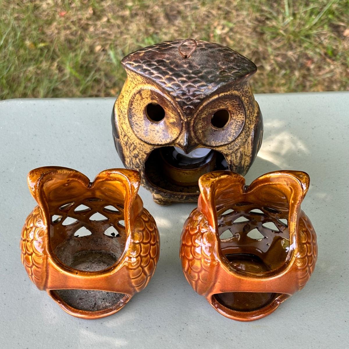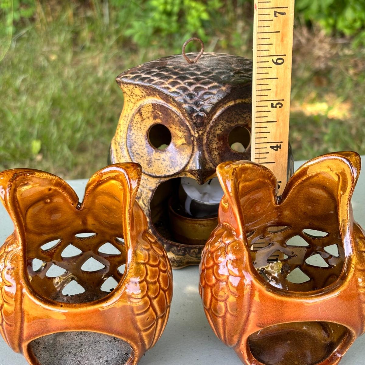LOT 198: Ceramic and Cast Iron Owls, Handcrafted Copper and Other Candlestick Holders, Vintage Coffee Mill and Ceramic Tile