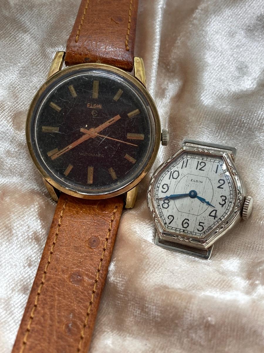 LOT 225: Pair of Elgin Watches - Swiss Automatic and Art Deco Style Without Band