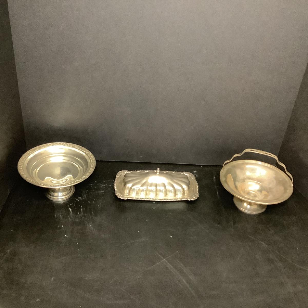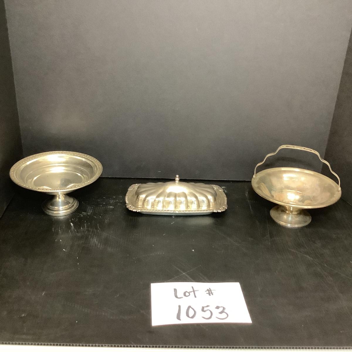 Lot 1053. Lot of Sterling Silver- Butter Dish ( glass insert ) , Pedestal Candy Dishes