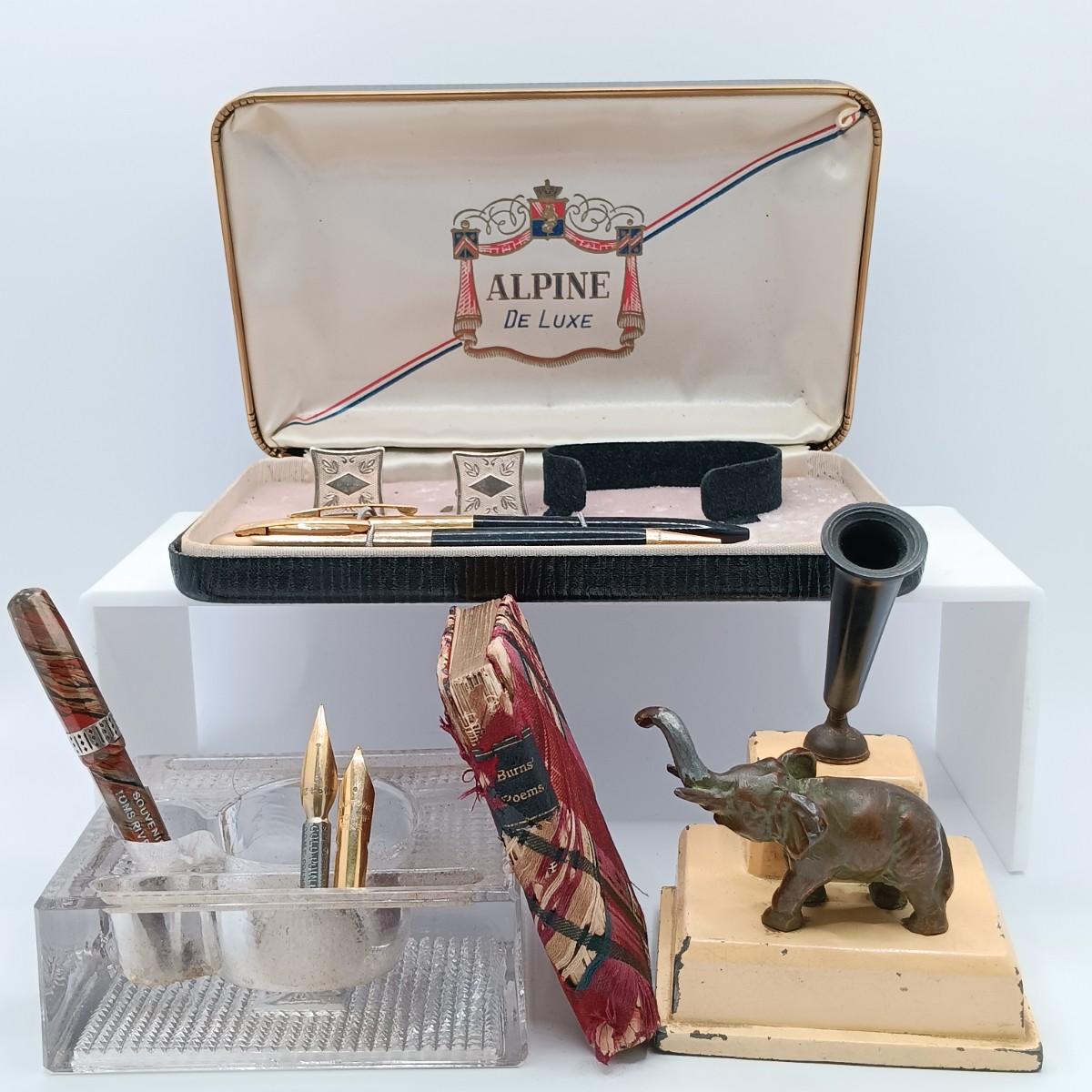LOT 5: Vintage Writing Utensils, Pen Holder, Inkwell & More