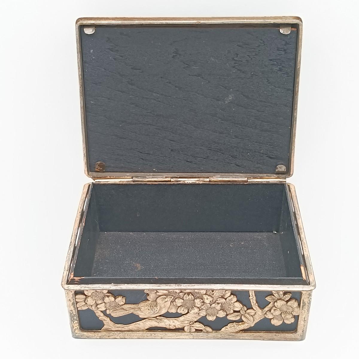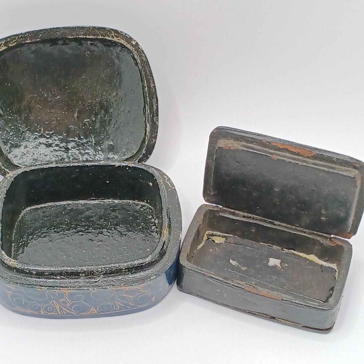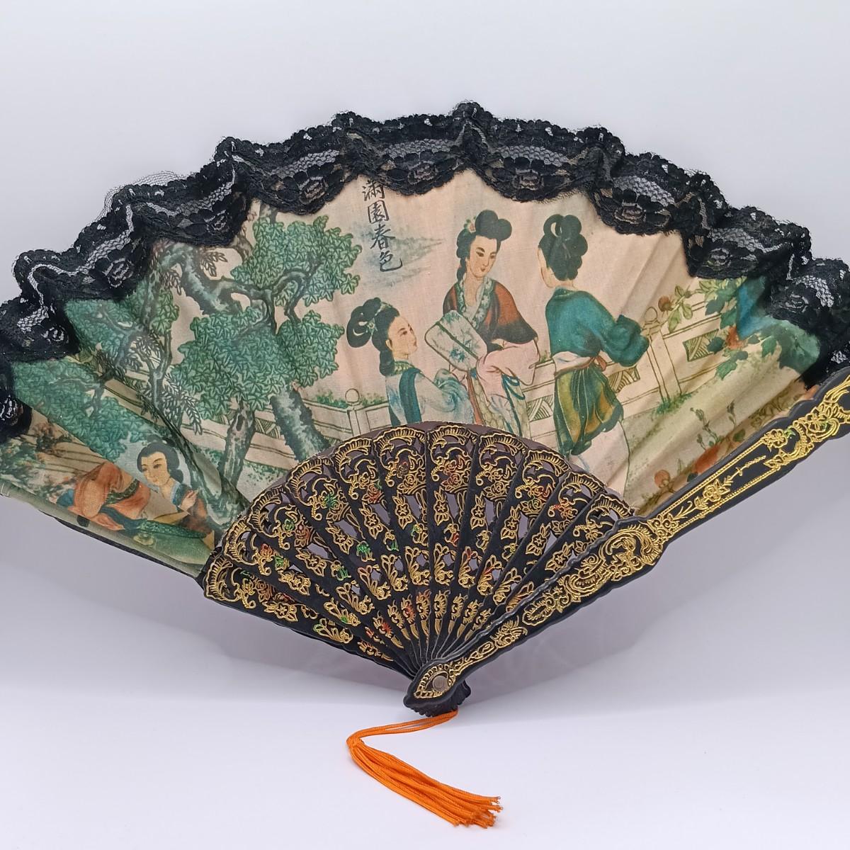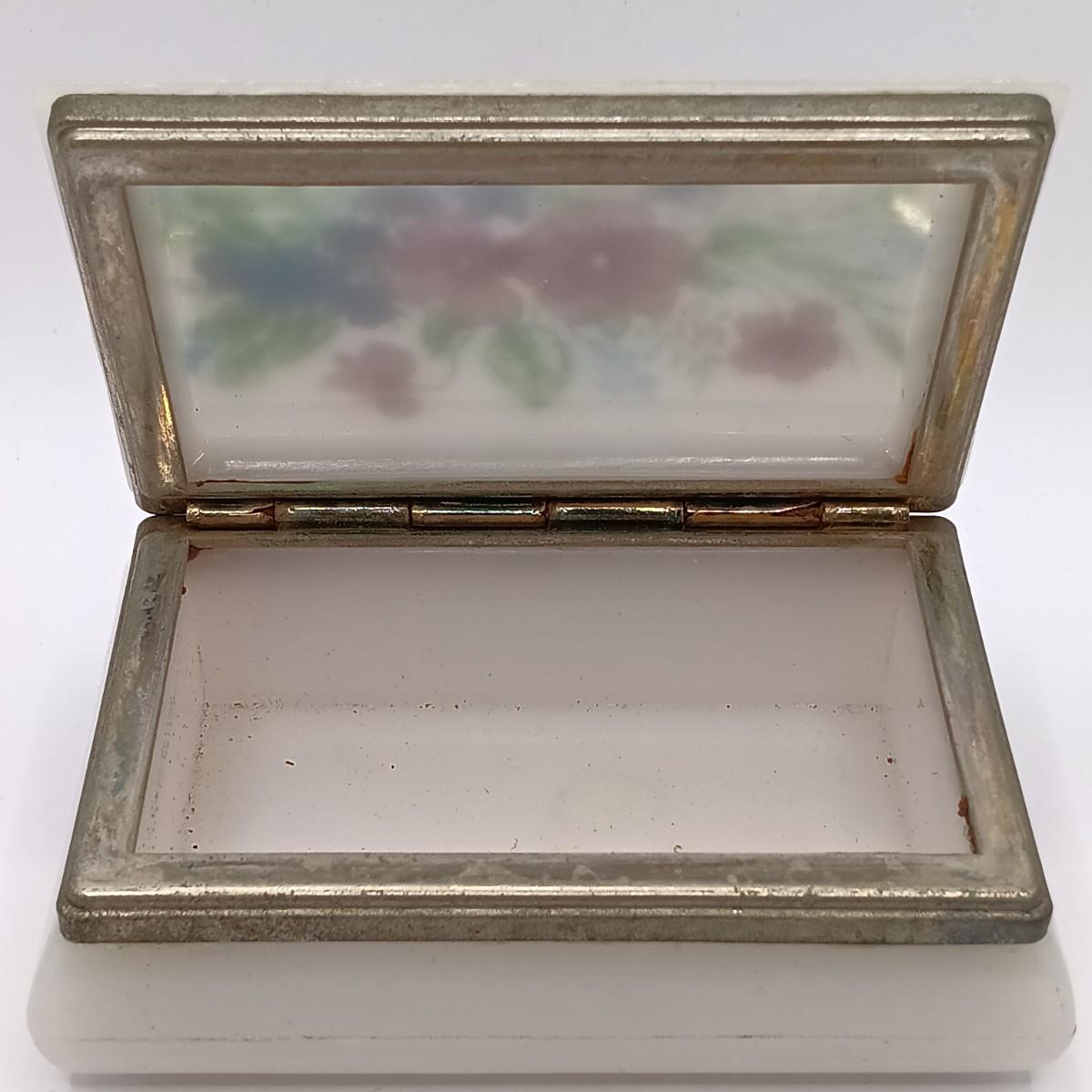 LOT 6: A Collection of Vintage Trinket Boxes w/ a Fabric and Celluloid Hand Fan, Valiant Bud Vase & More