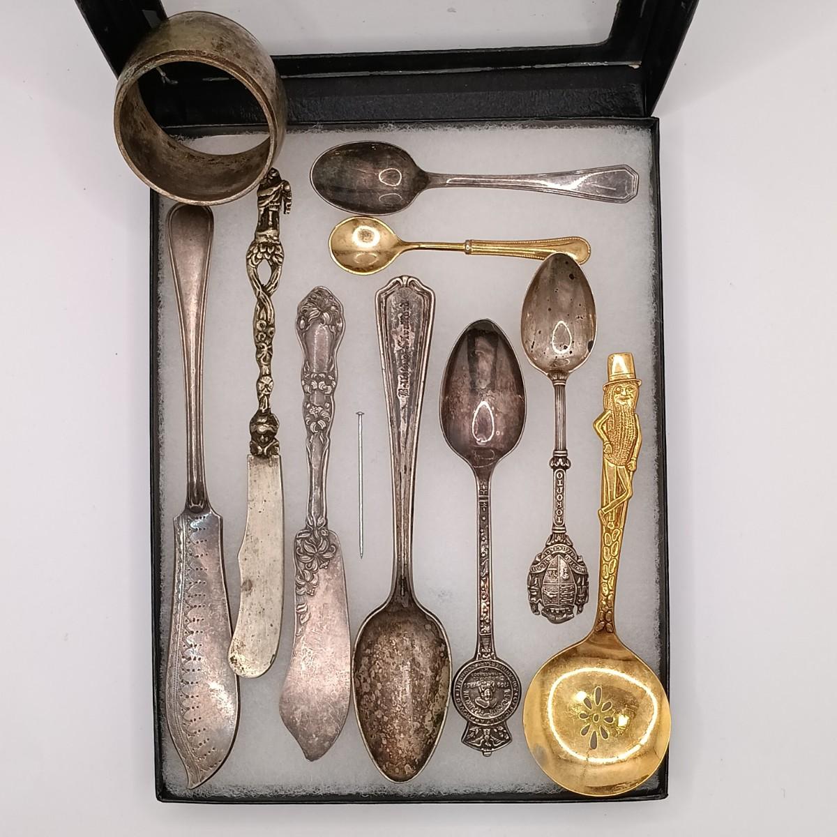 LOT 13: A Collection of Vintage Diningware Including a Sterling Silver Toronto Souvenir Spoon, Mr. Peanut Metal Spoon & More