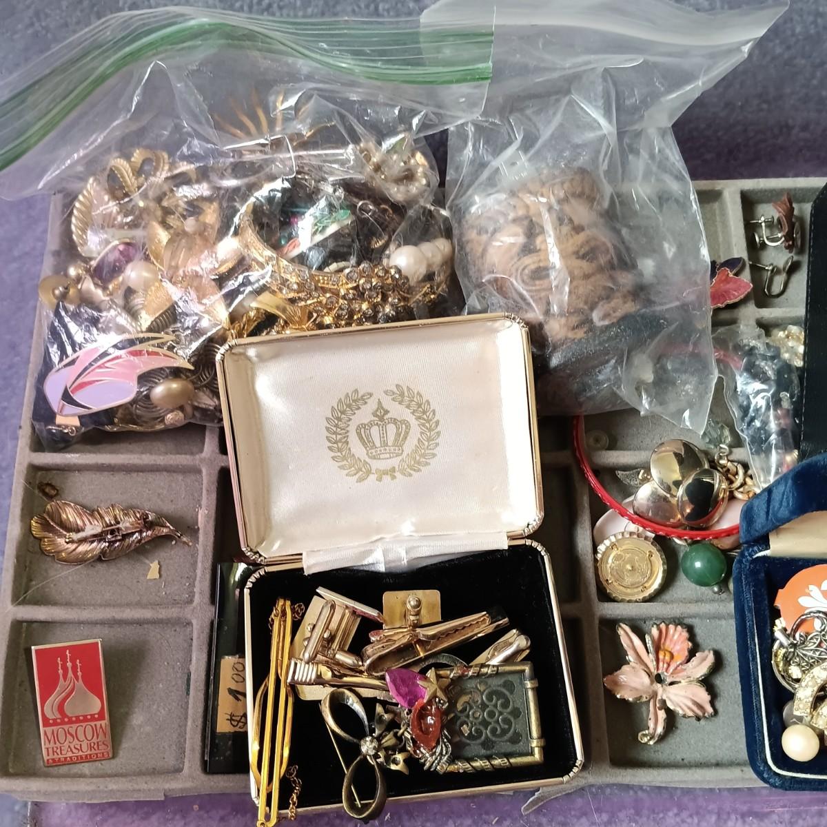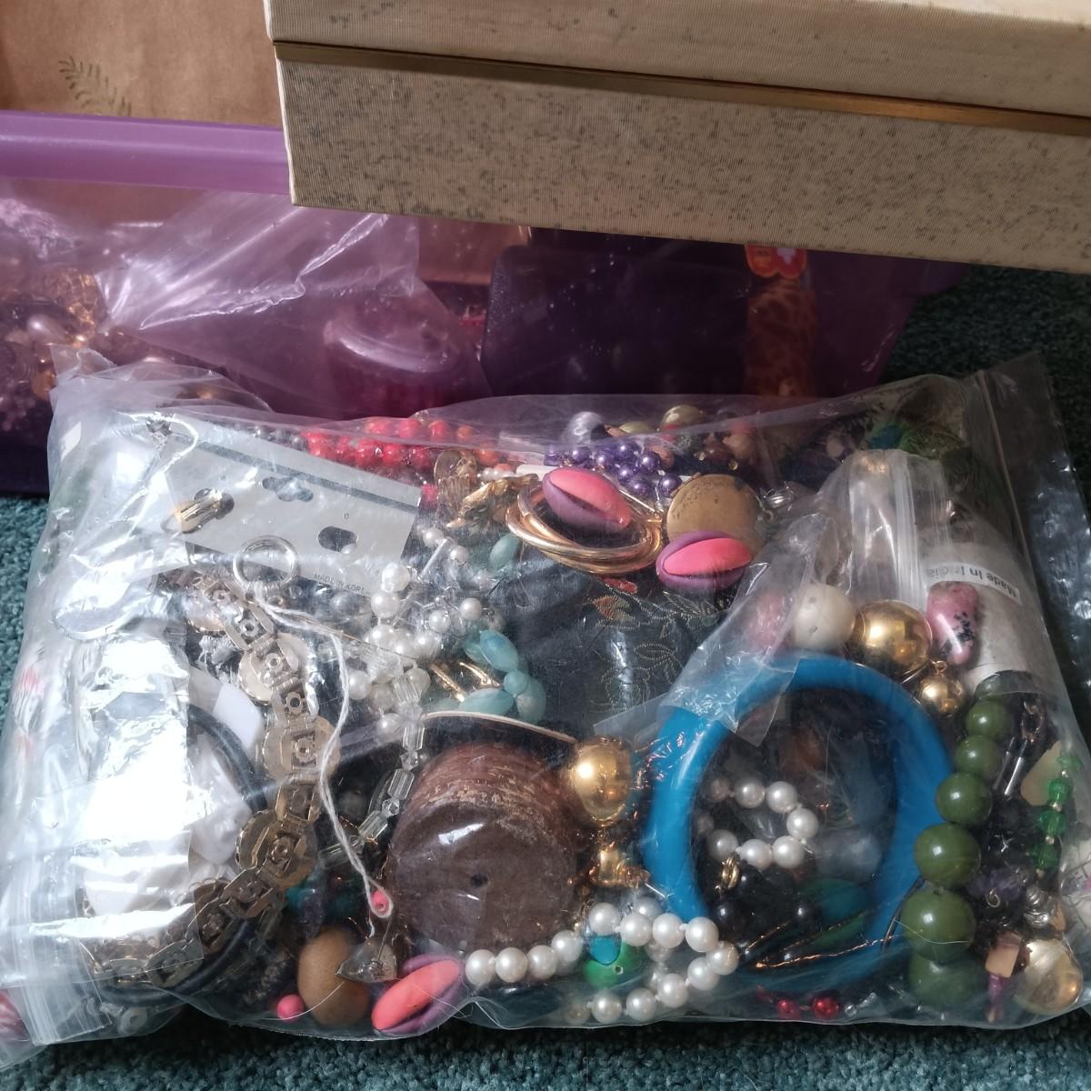 This is a mixed lot of jewelry pieces and trinkets meant for crafting purposes.