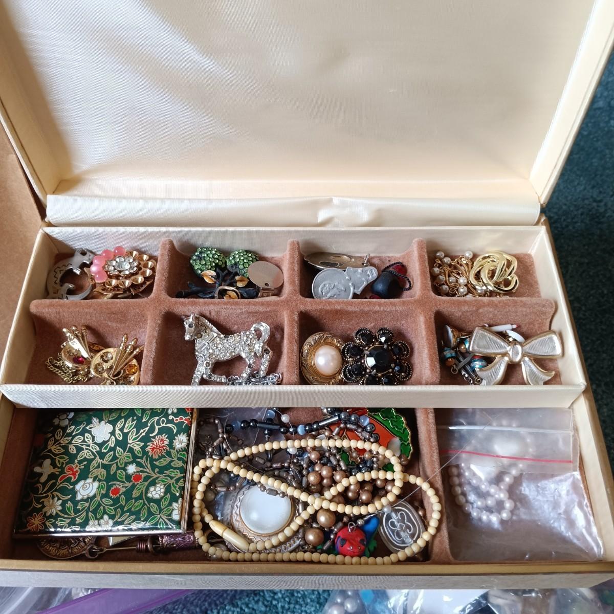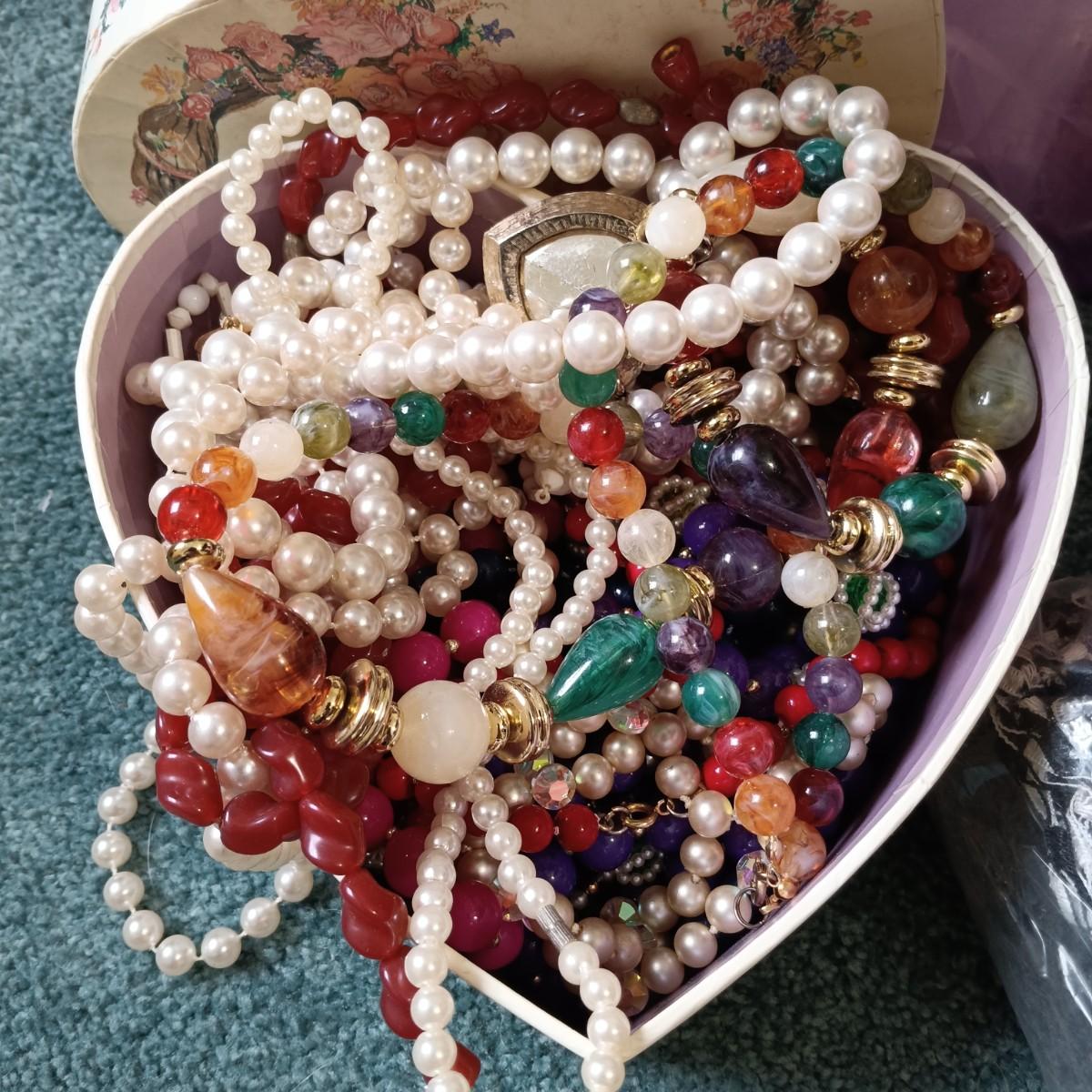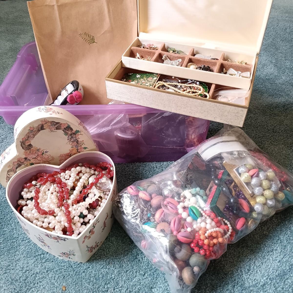 LOT 14: Craft Lot- Large Collection of Beaded Necklaces, Brooches & More