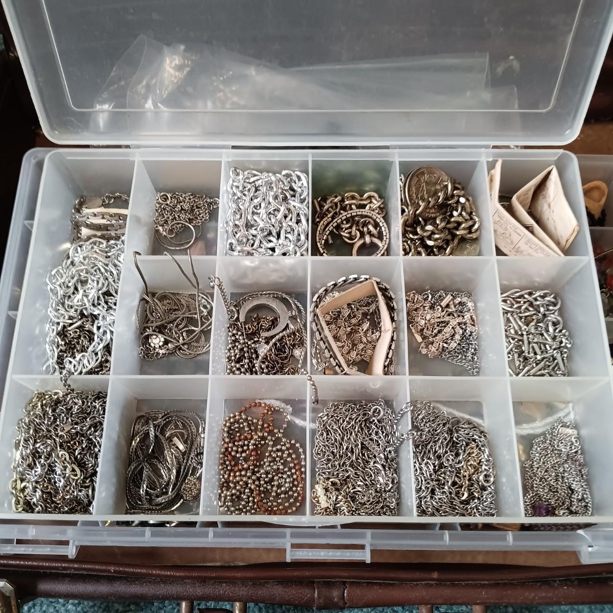 LOT 15: Craft Lot- Collection of Silver-Tone Necklace Chains, Beads & More