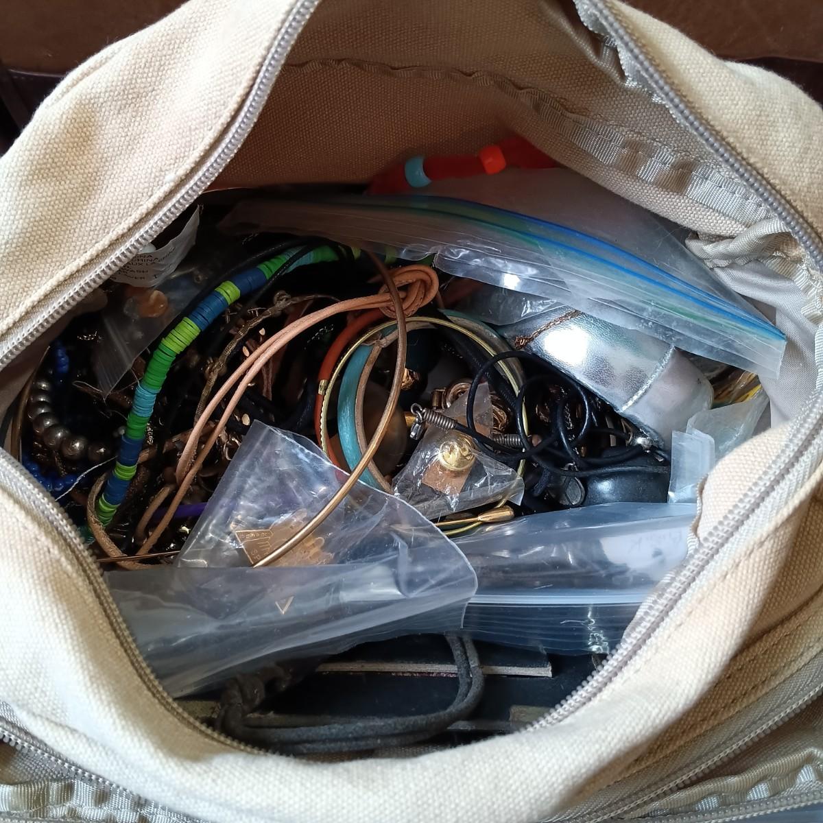 This is a mixed lot of jewelry and trinkets meant for crafting purposes.