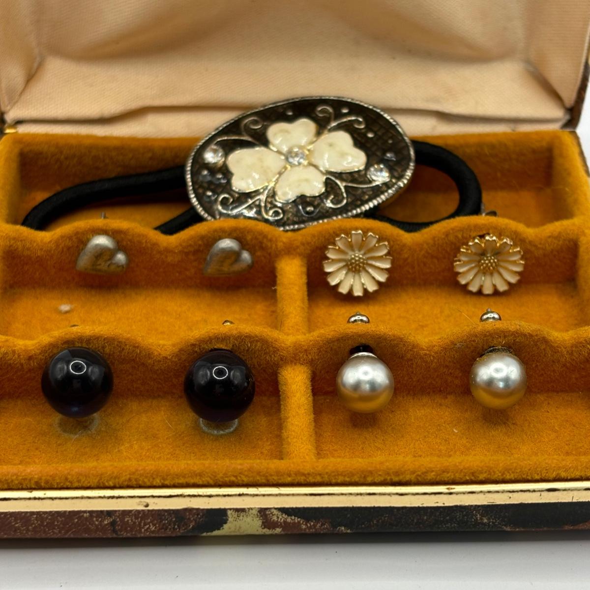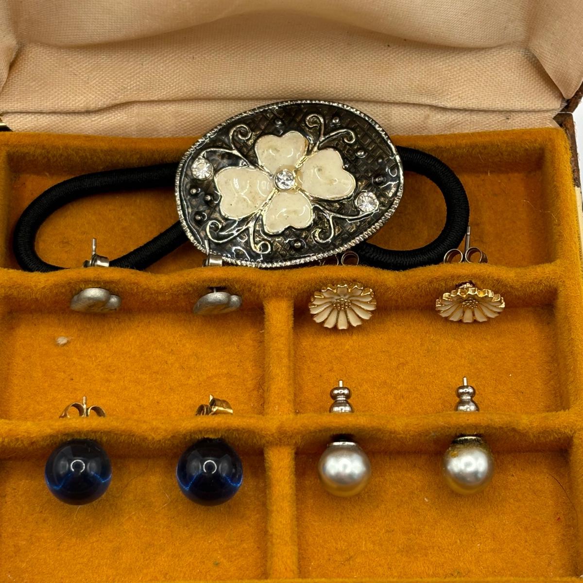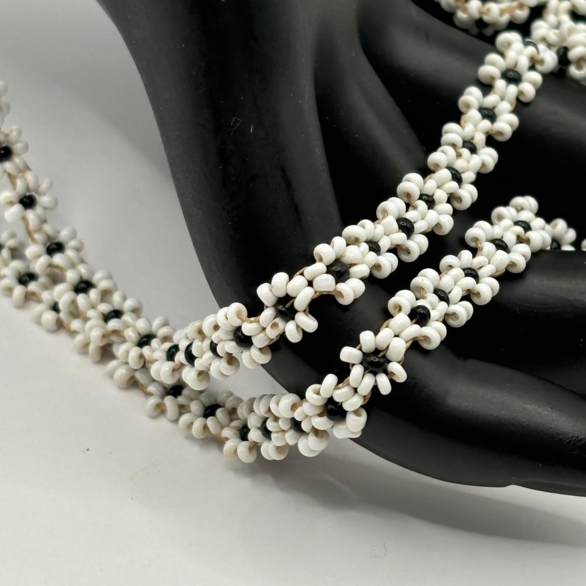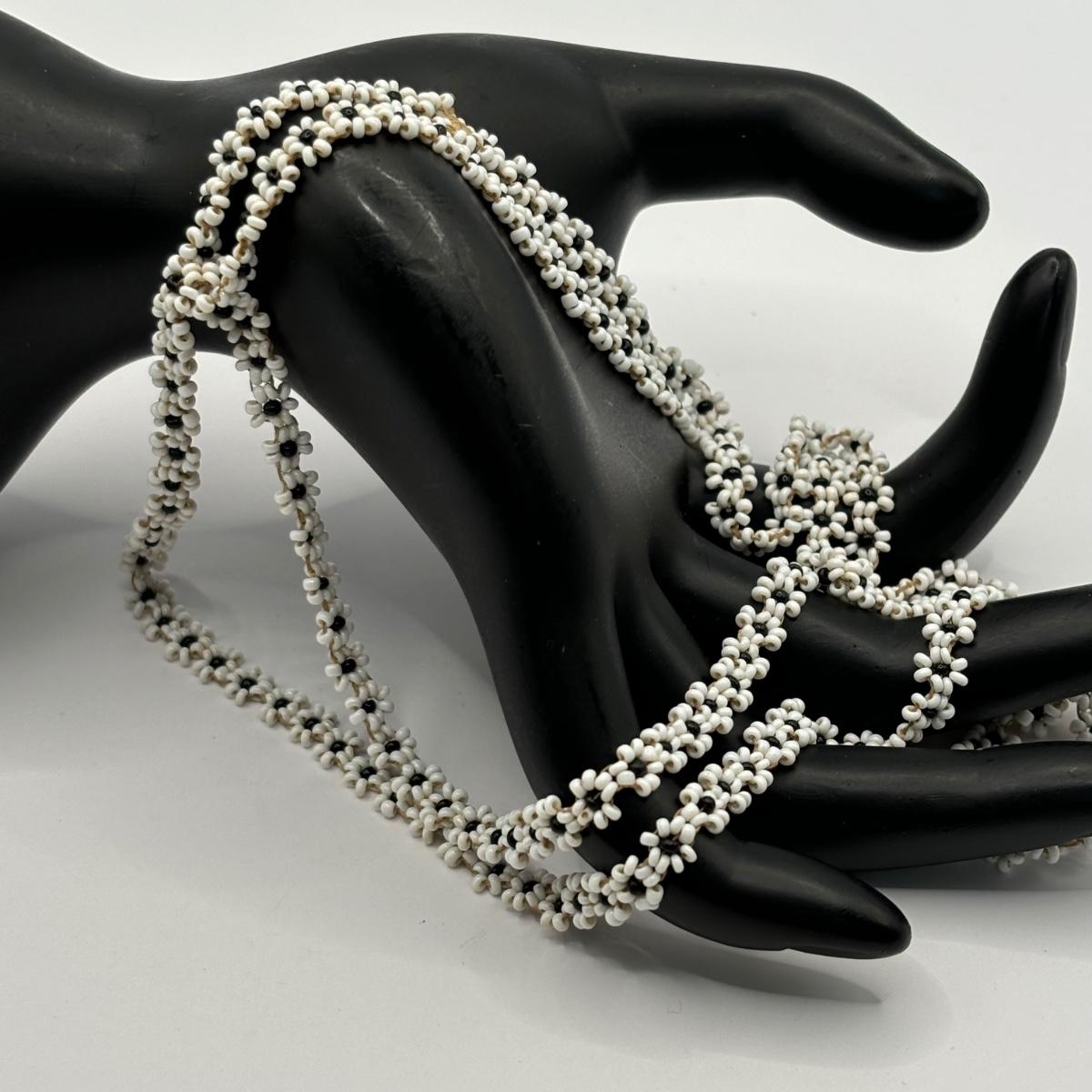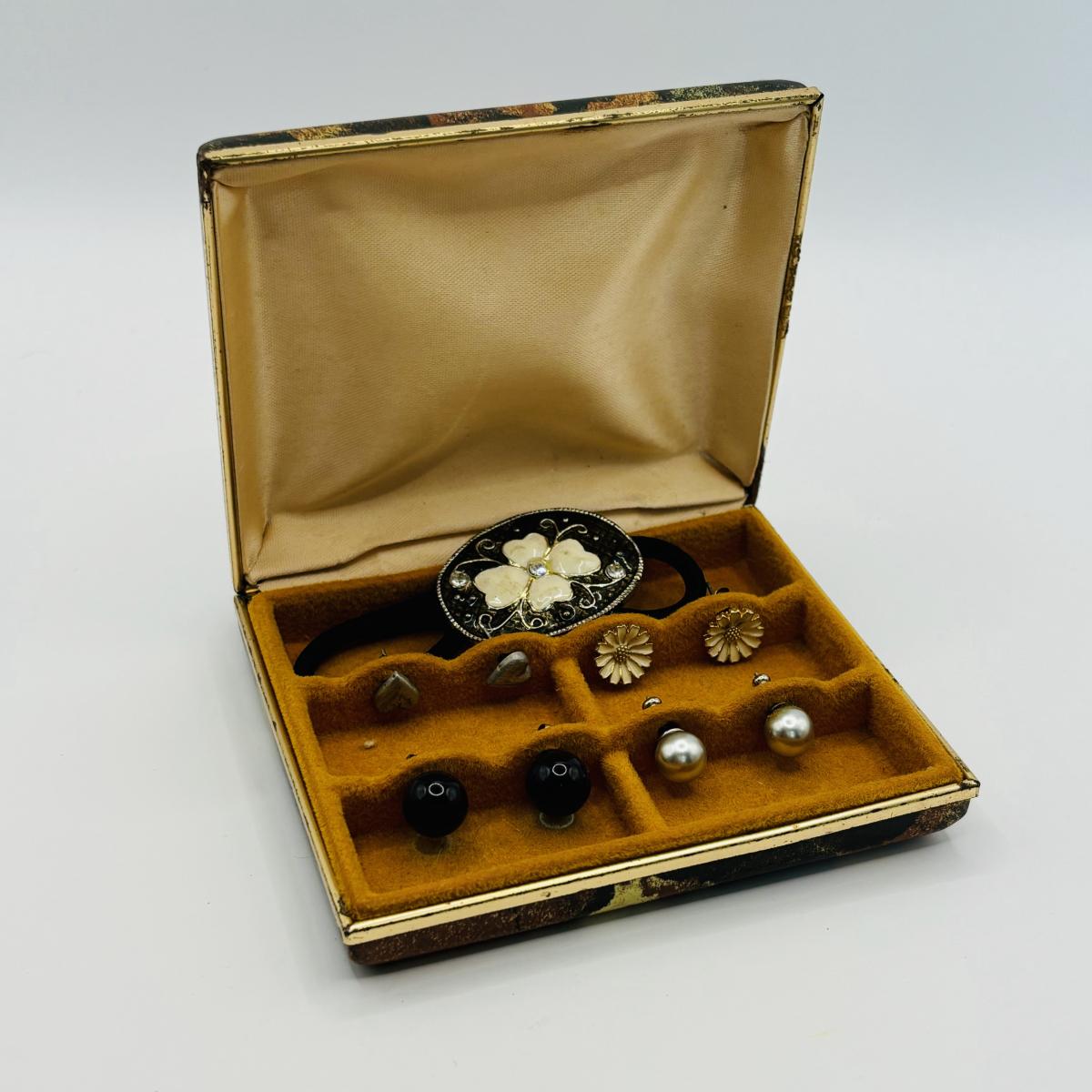 LOT 28: Black "The Sack" Purse, Vintage Beaded Collar, 40" Delicate Floral String of Beads w/no Clasp, 'Cat Watches & Case w/Earrings