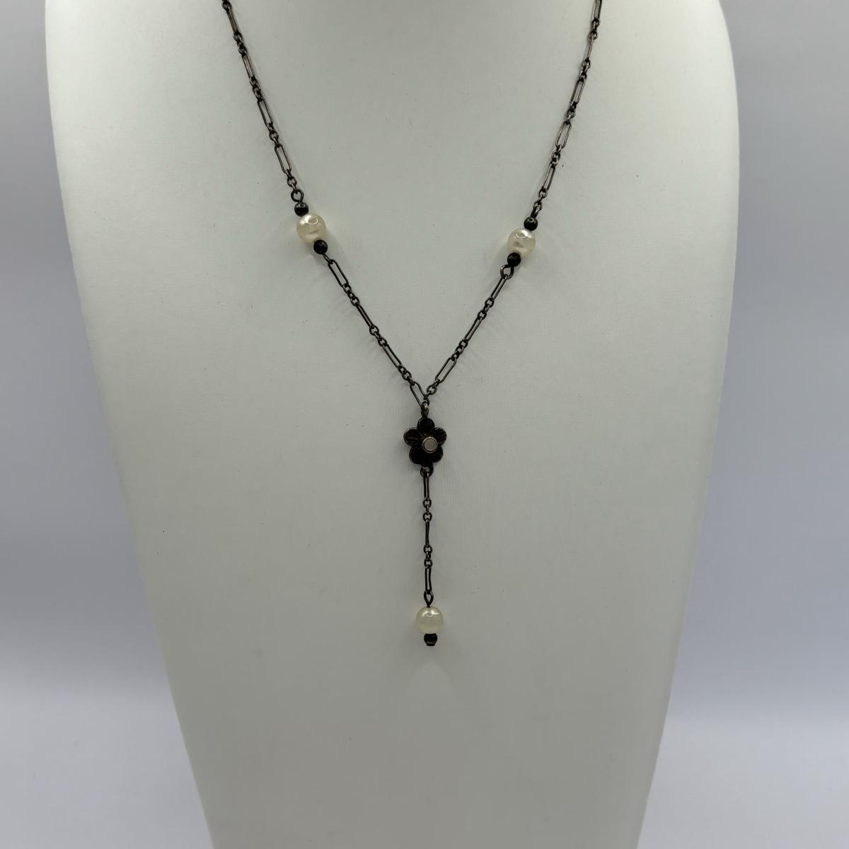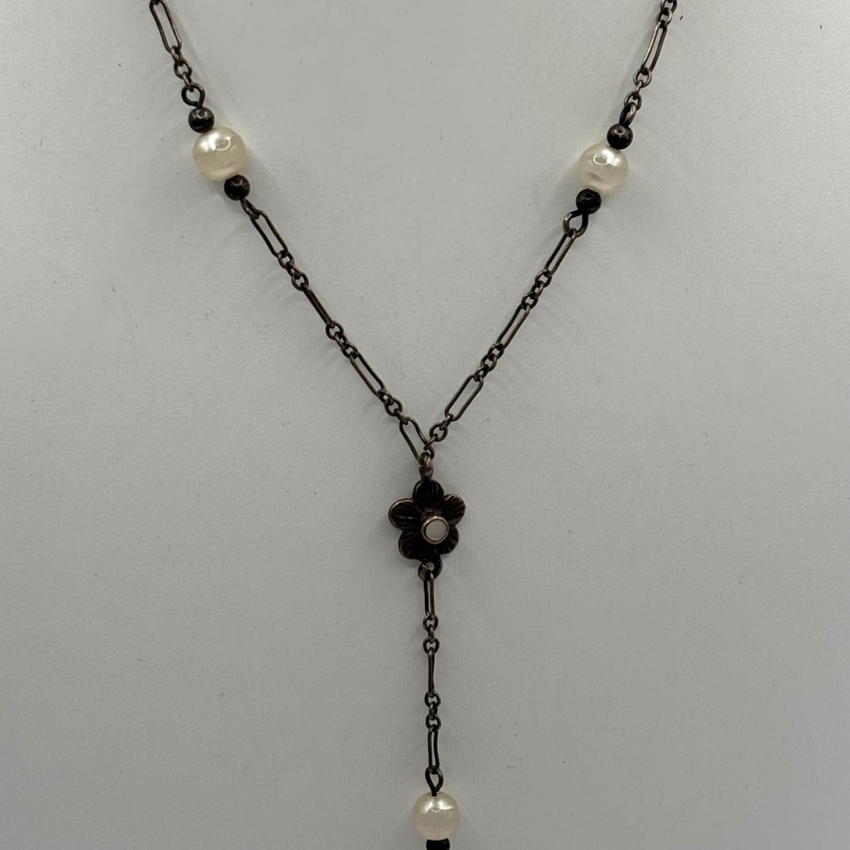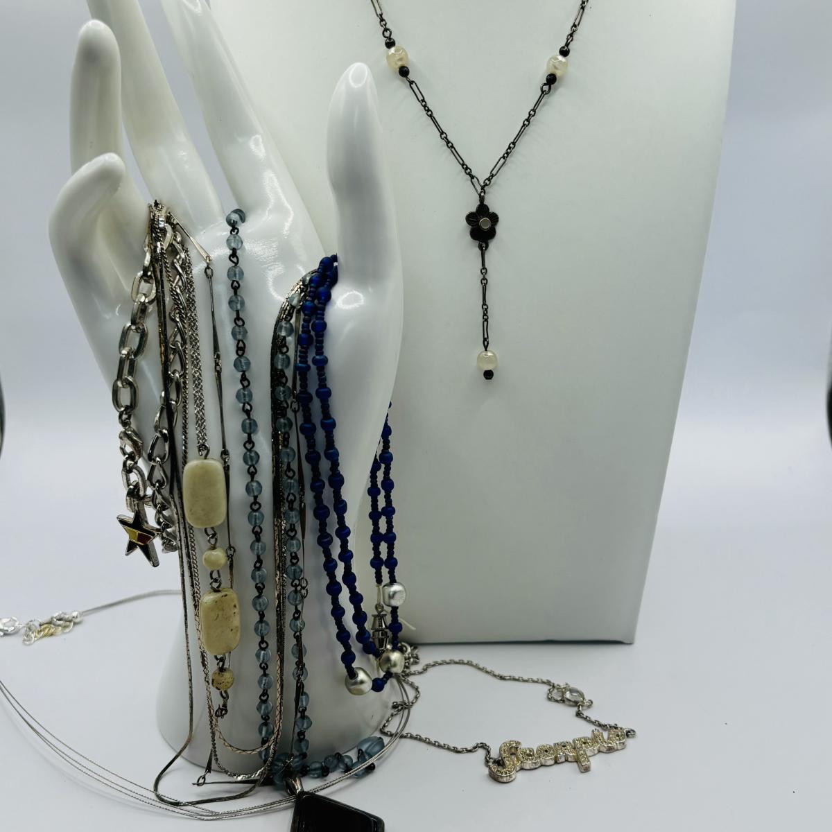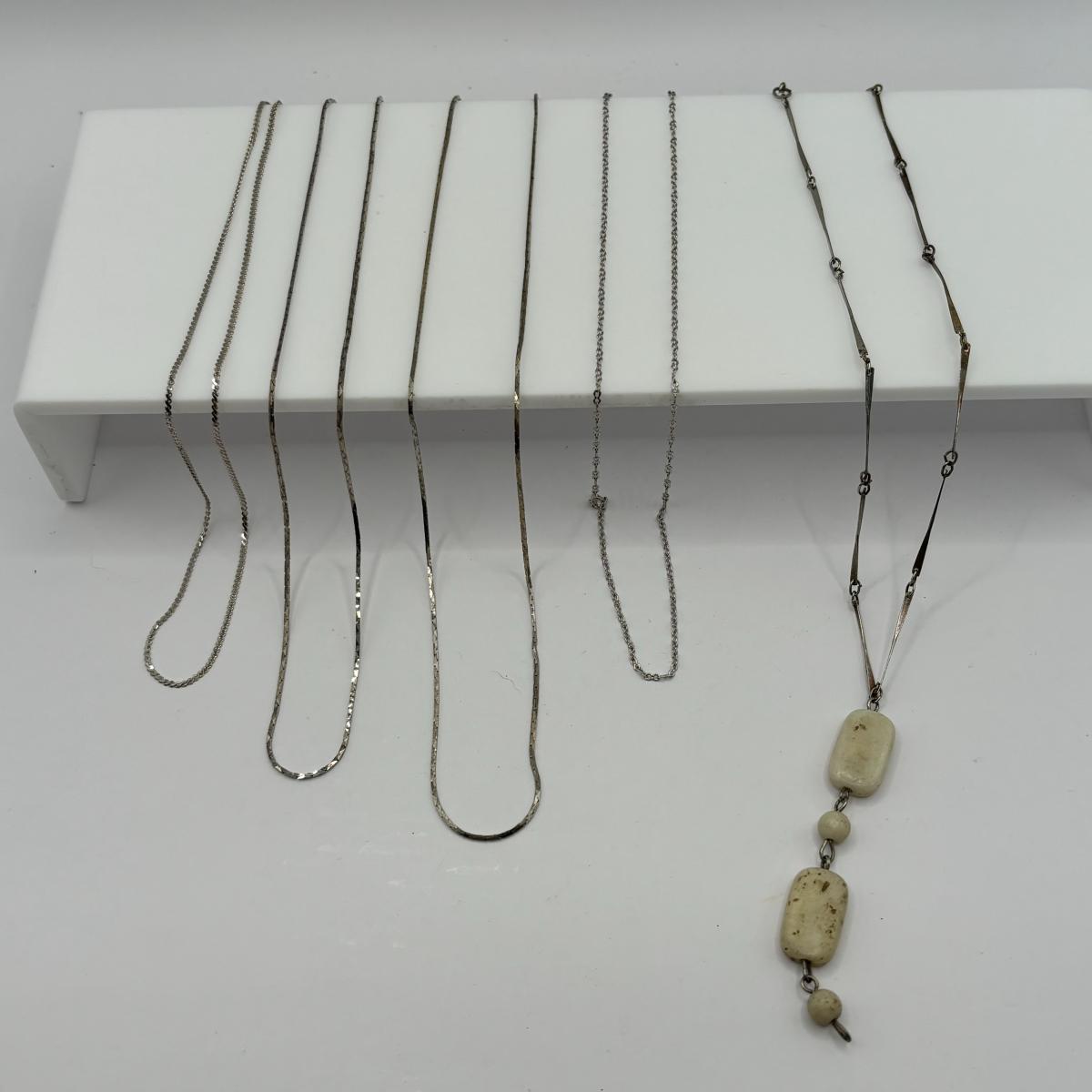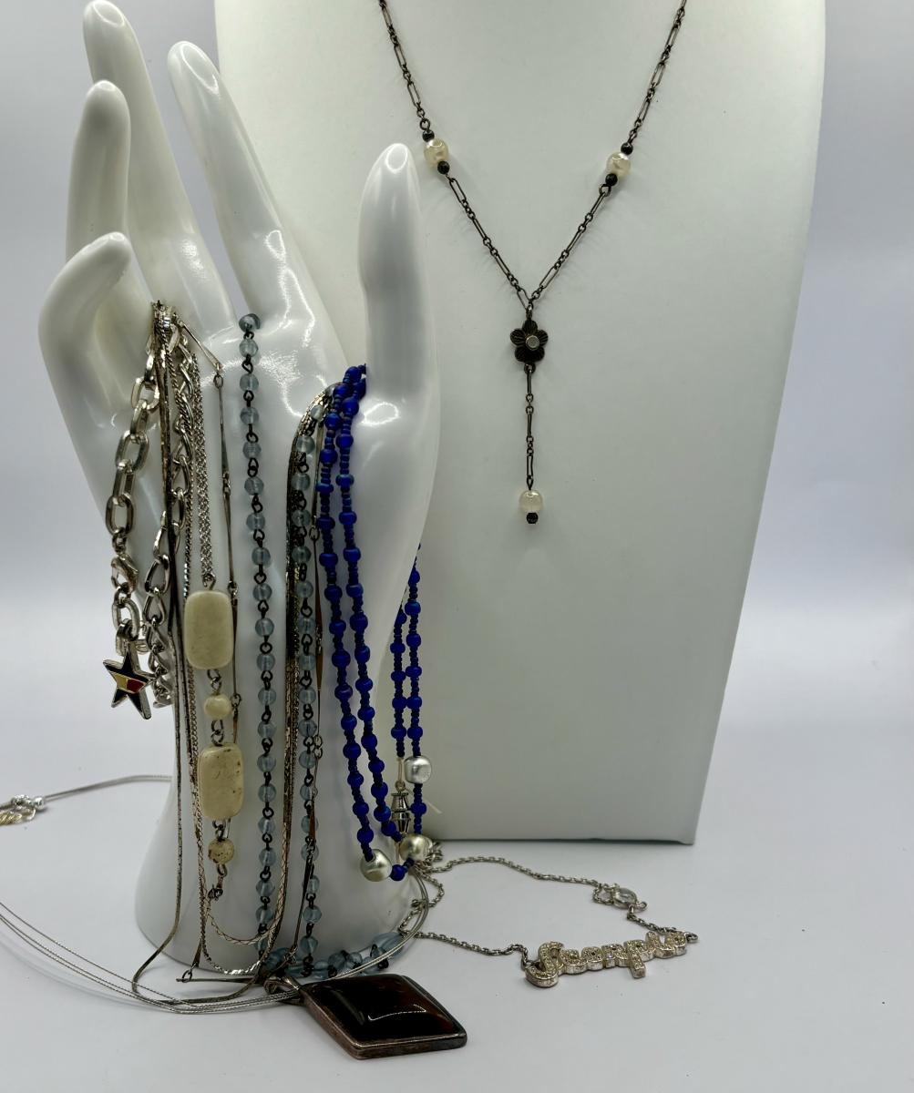 LOT 33: Sterling Silver Necklace w/Pearl & Silver Tone Chains & More