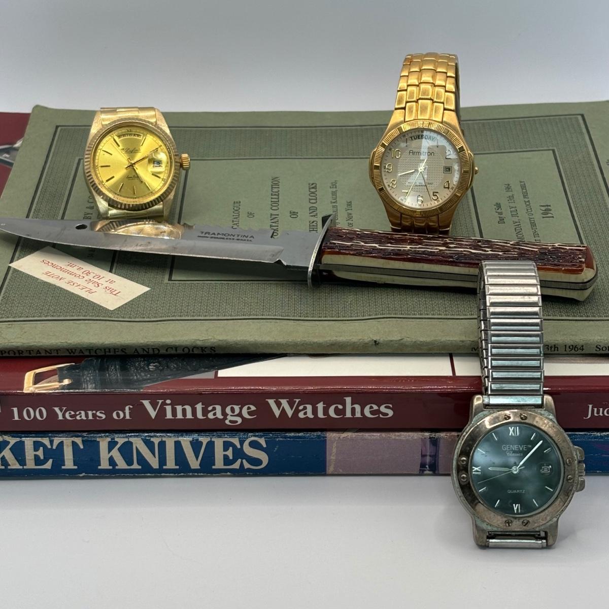 LOT 136: Vintage Watches: Geneve, Dufonte & Armitron Sargent's American Premium Guide to Pocket Knives Identification & Values 2nd Edition 100years of Vintage Watches Identification & Price Guide