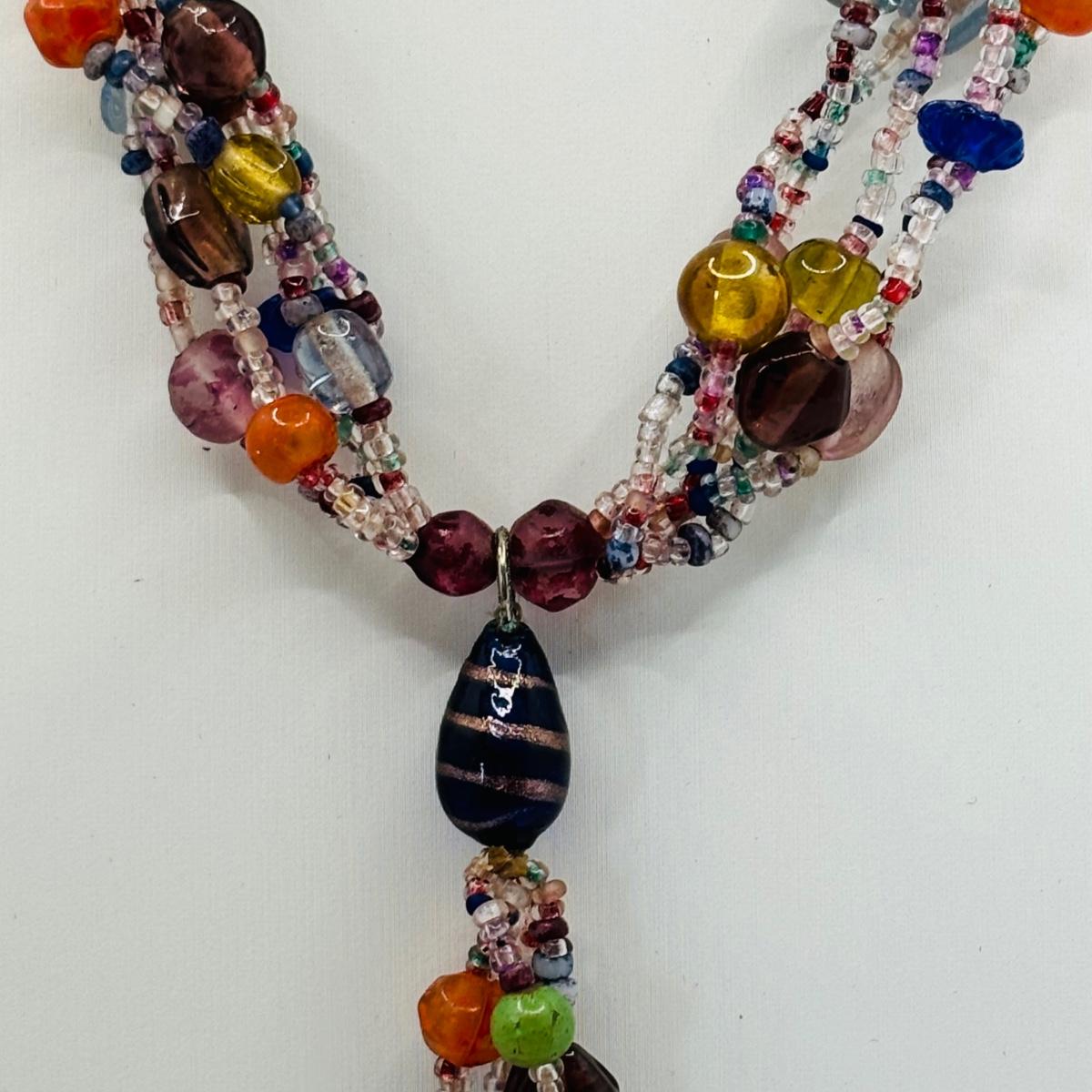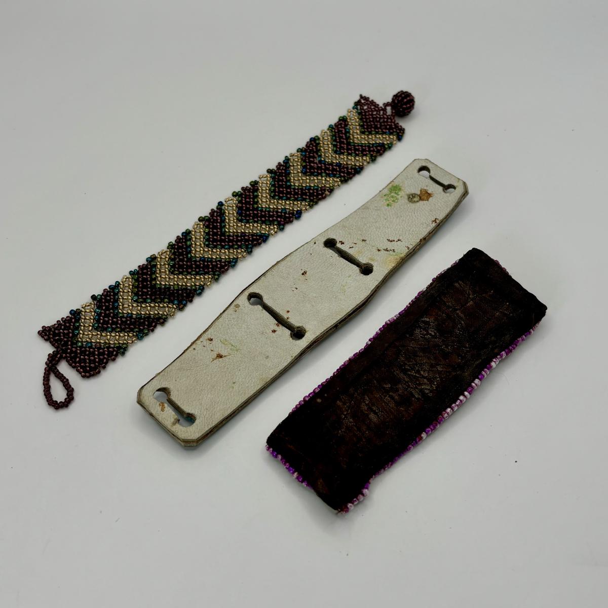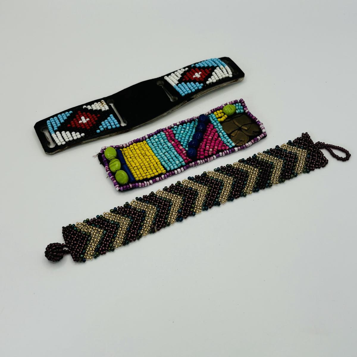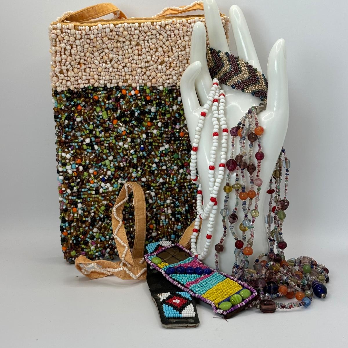 LOT 148: Vintage Beaded Purse, Glass Beaded Choker w/Hanging Strands of Beads, Beaded Bracelets