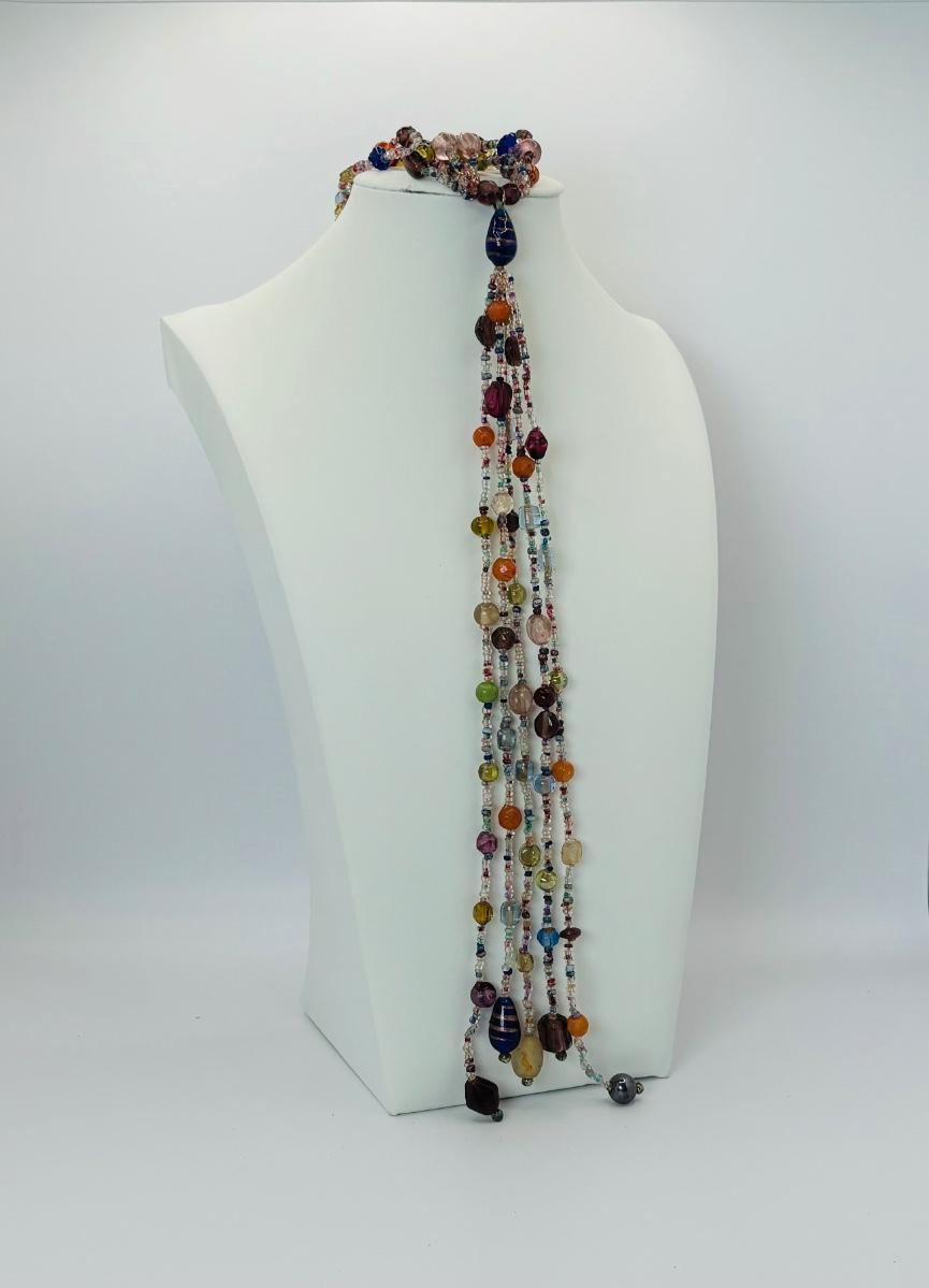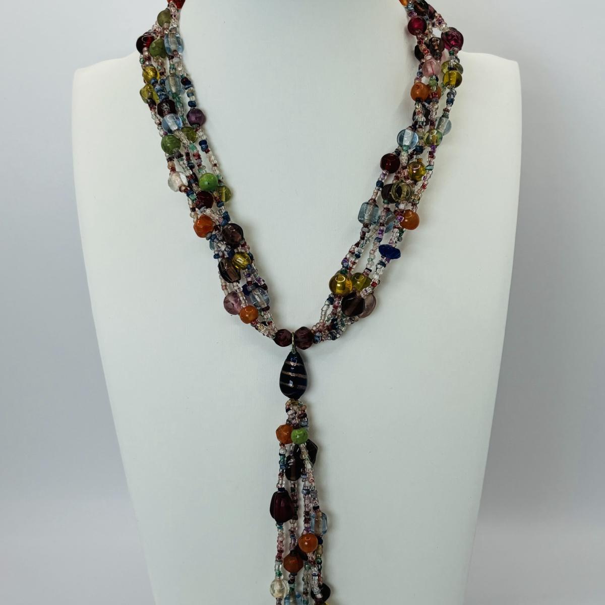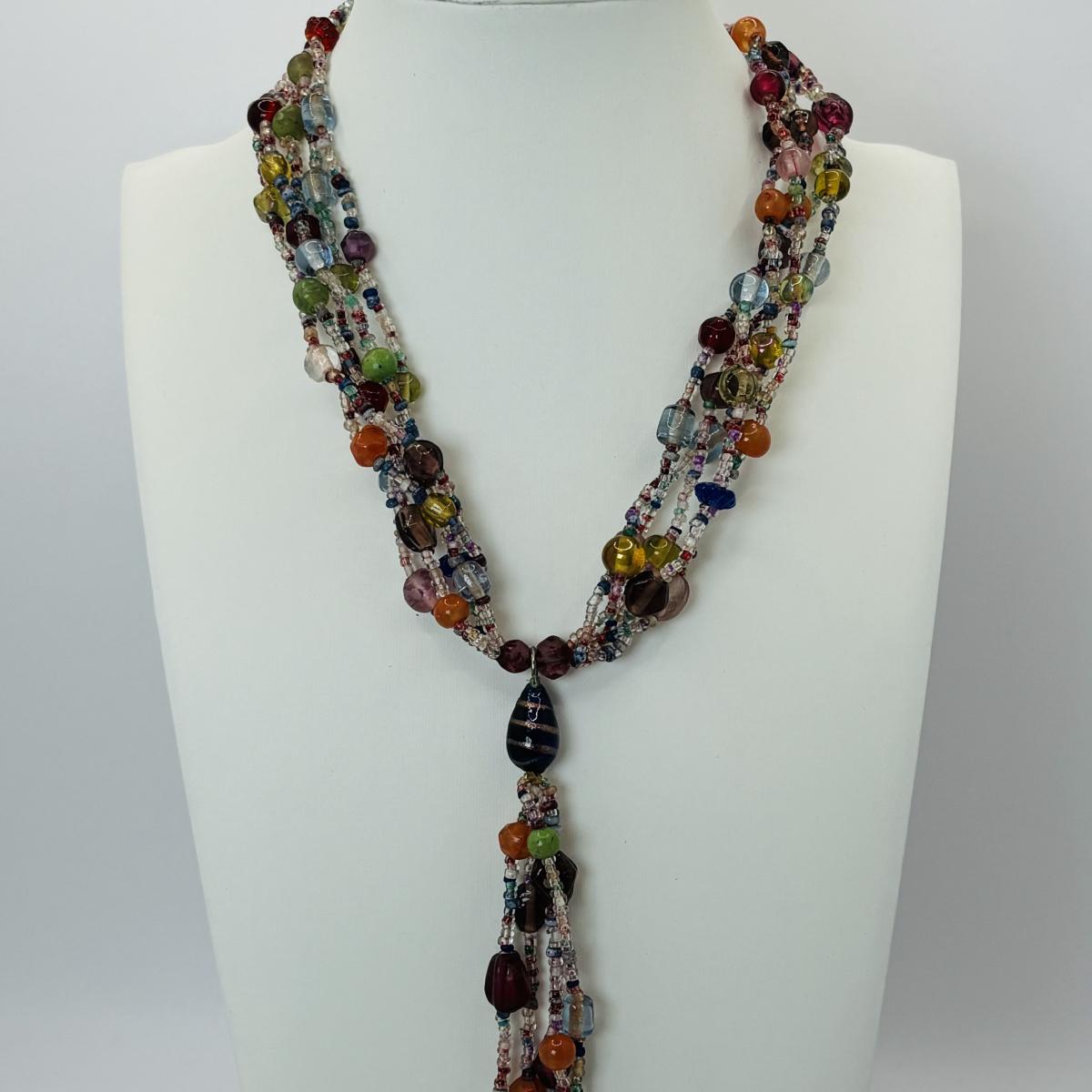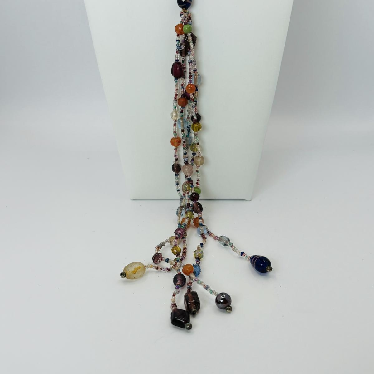LOT 148: Vintage Beaded Purse, Glass Beaded Choker w/Hanging Strands of Beads, Beaded Bracelets