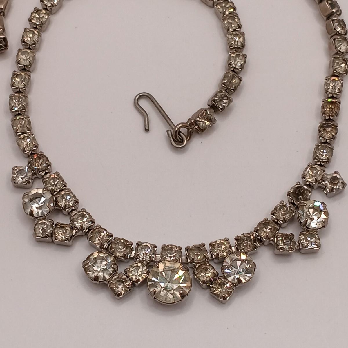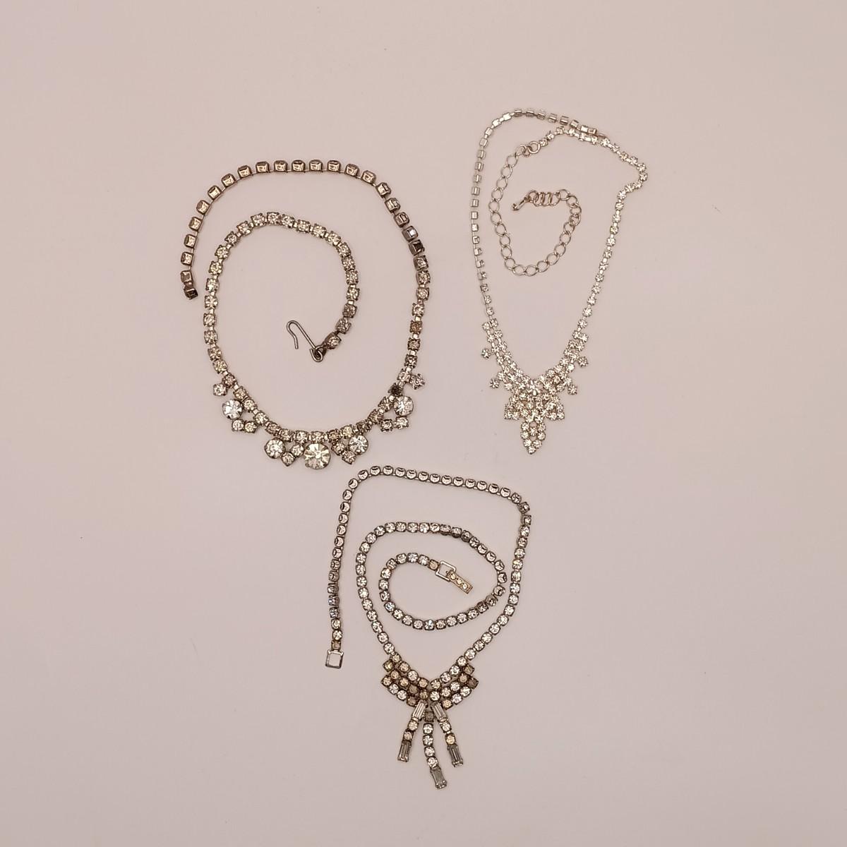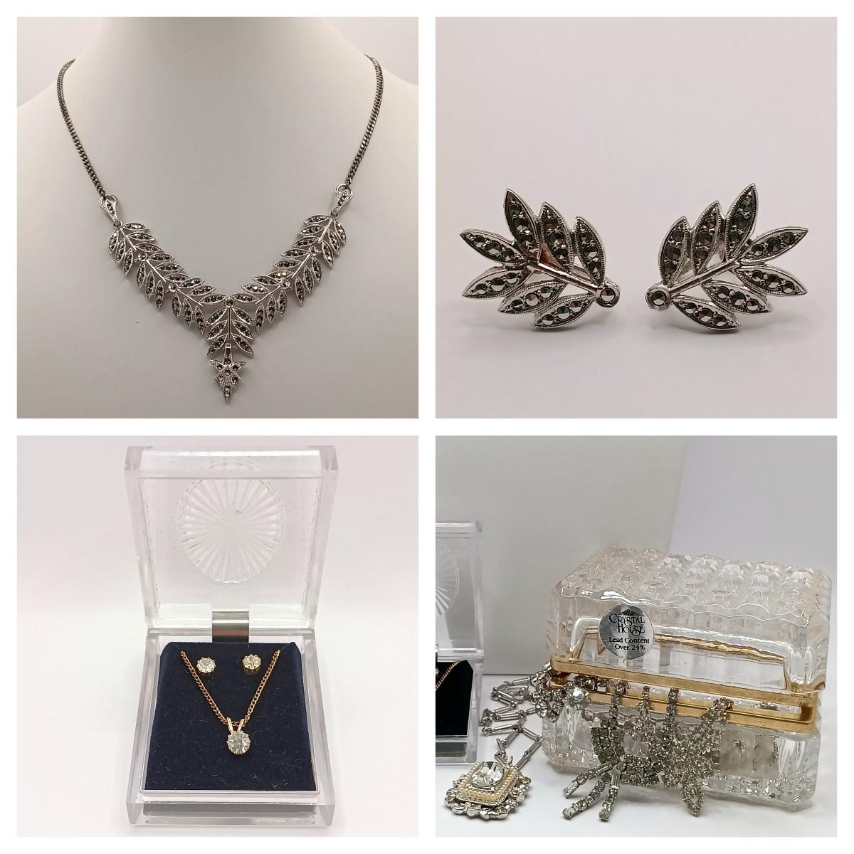 LOT 160: Vintage Marcasite Sterling Necklace w/ Rhinestone Necklaces, Crystal House Jewelry Box & More