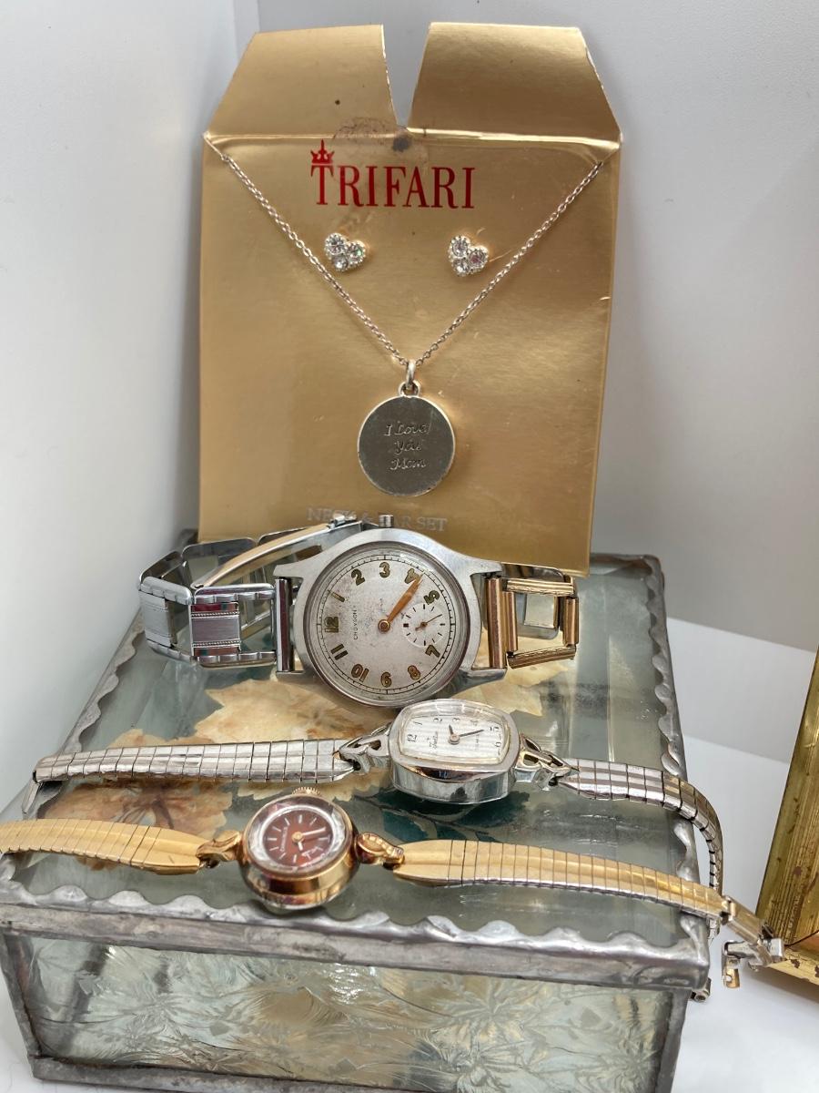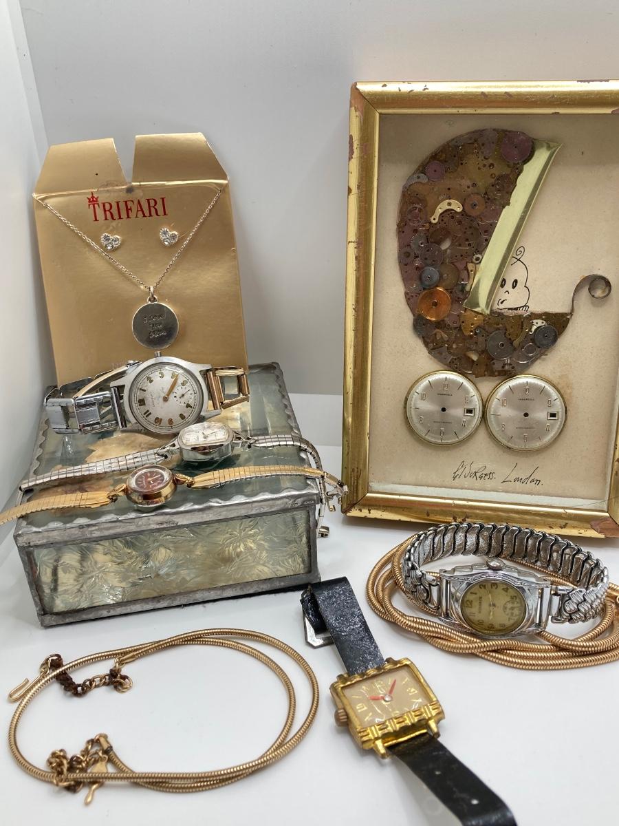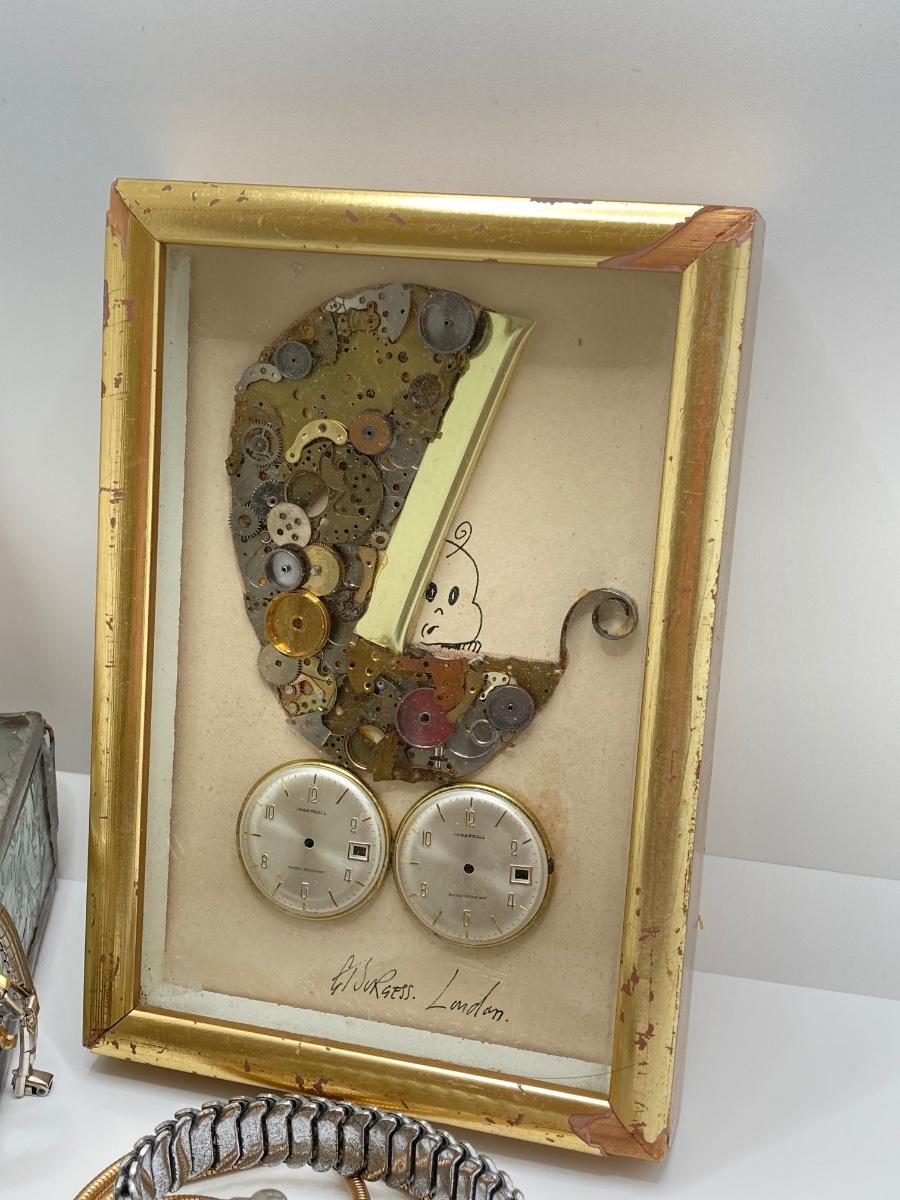 LOT 168: Unique Signed Watch Parts Framed Art, Vintage Watches (Swiss and Toy Styles Included), Sarah Coventry Jewelry and More