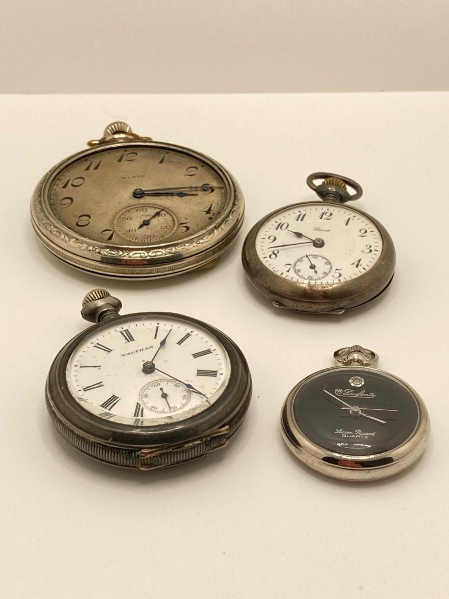 LOT 169: Collection of Pocket Watches - Dufonte, Elgin, Sterling Lancet Switzerland and Waltham