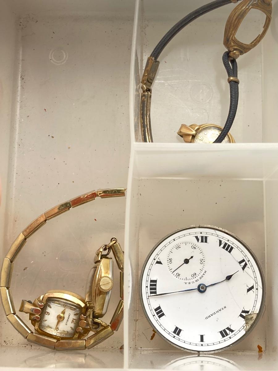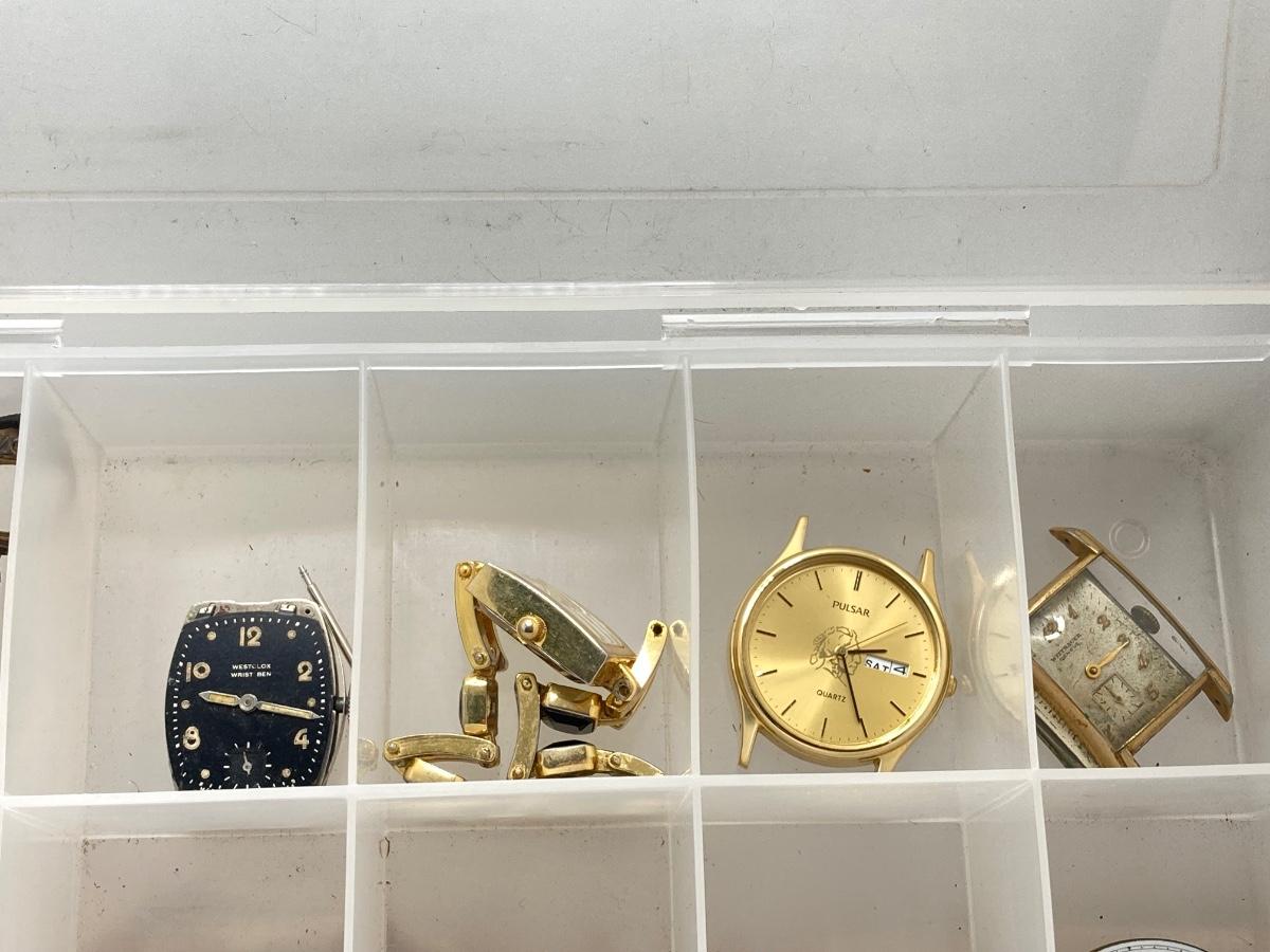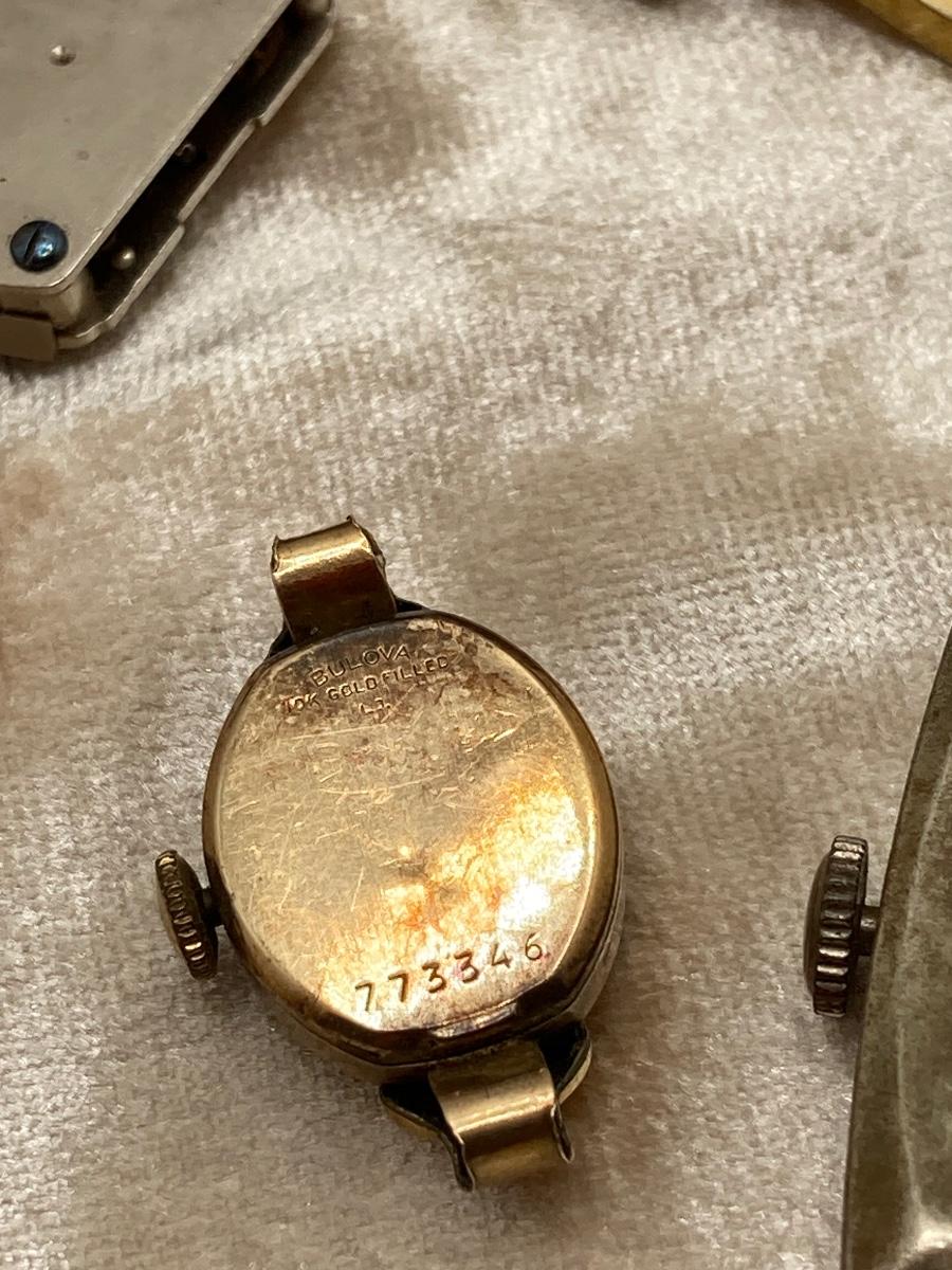 LOT 177: Tray of Watch Parts - Bedford, Bulova 10K Gold Filled, Gruen, Wittnauer, and More