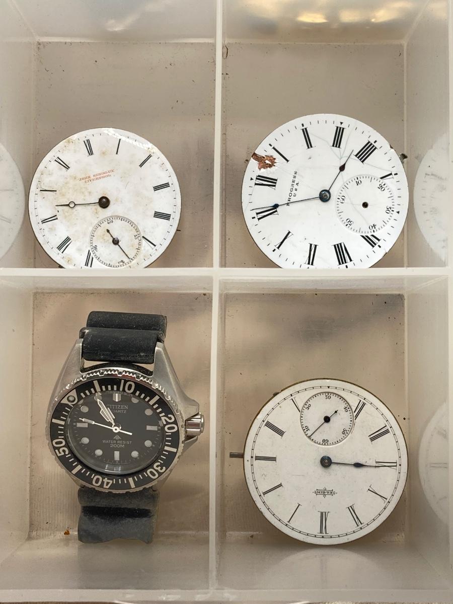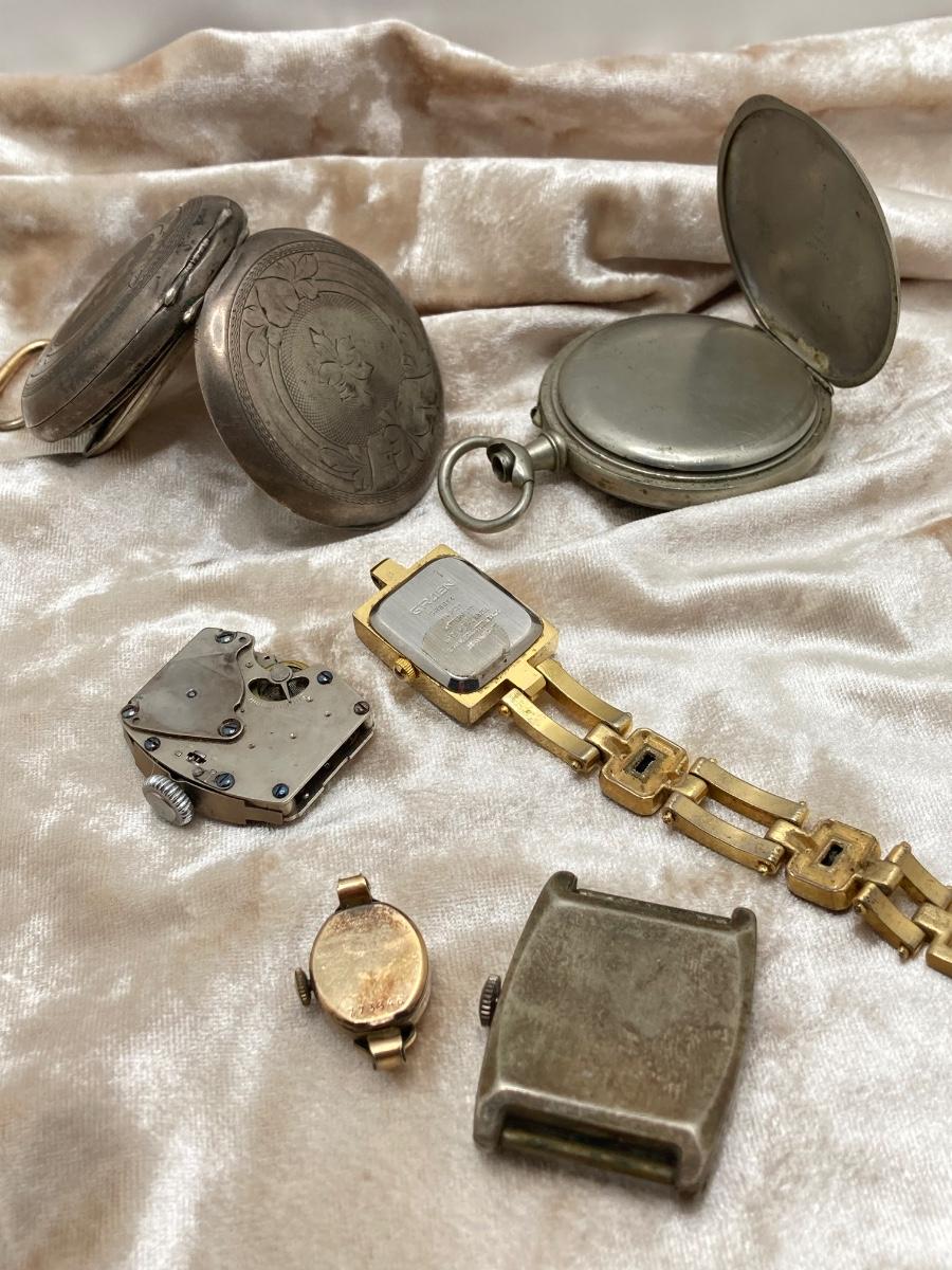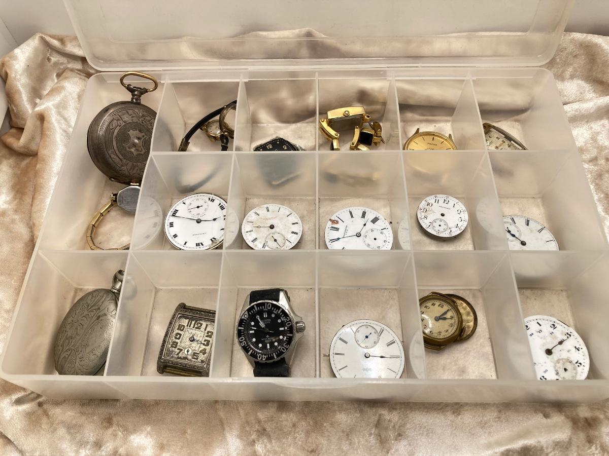 LOT 177: Tray of Watch Parts - Bedford, Bulova 10K Gold Filled, Gruen, Wittnauer, and More