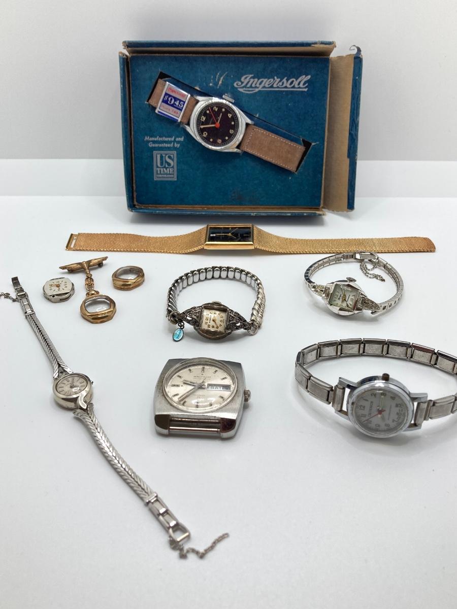 LOT 206: Vintage Swiss Repair / Parts Collection (Ingersoll, Waltham, Lenga and Longines and More)