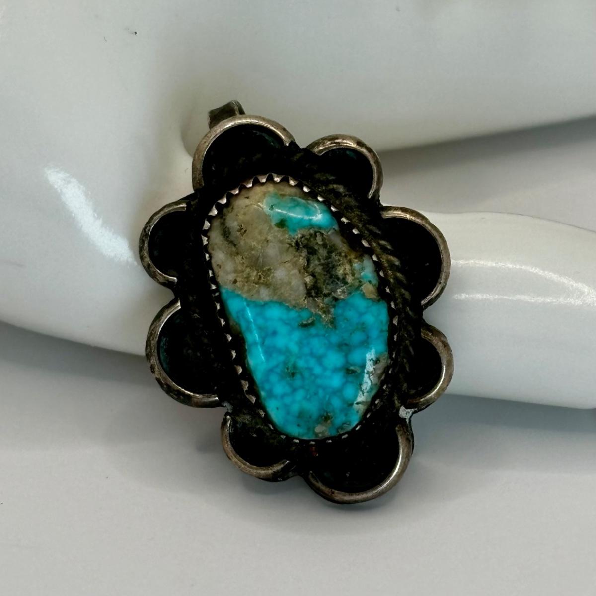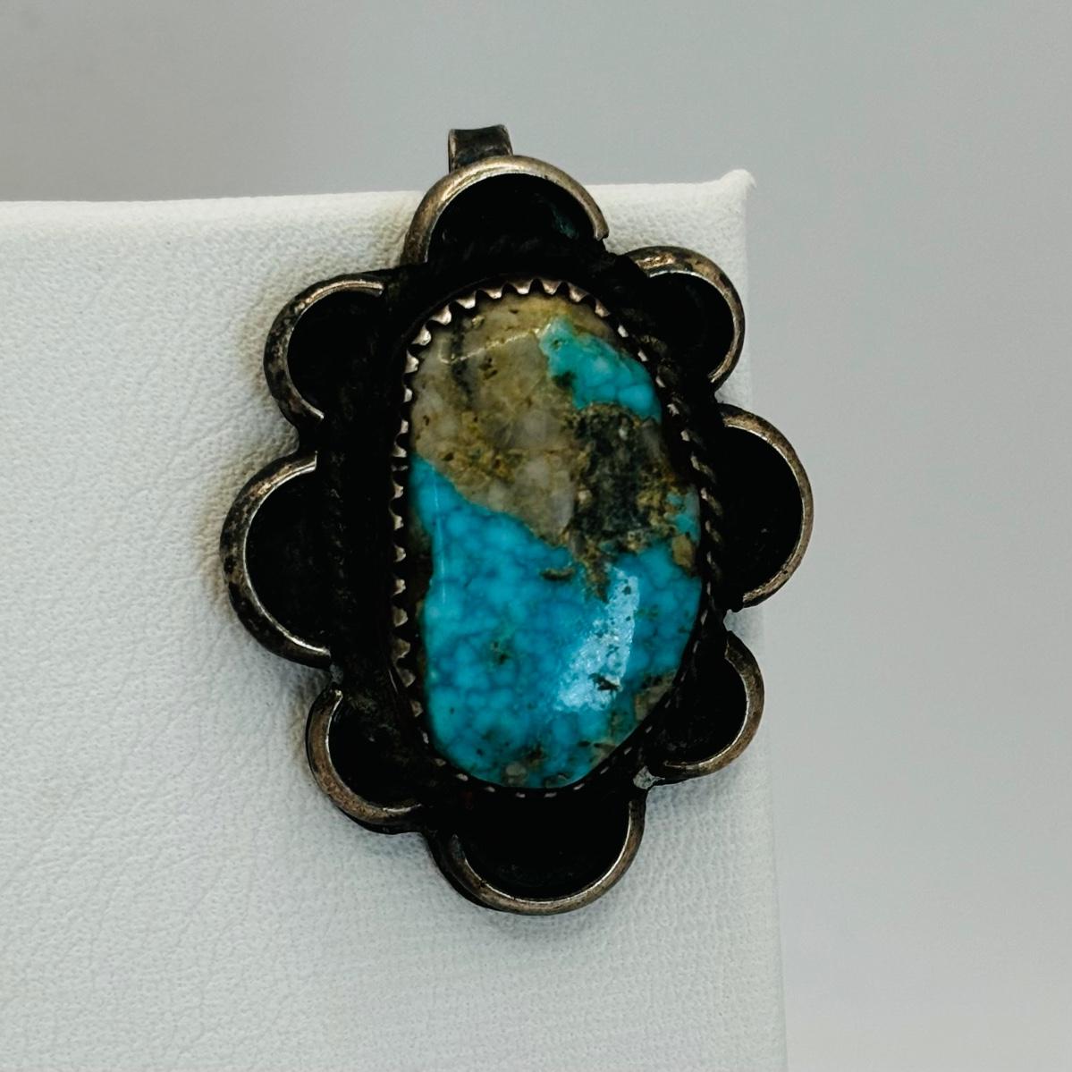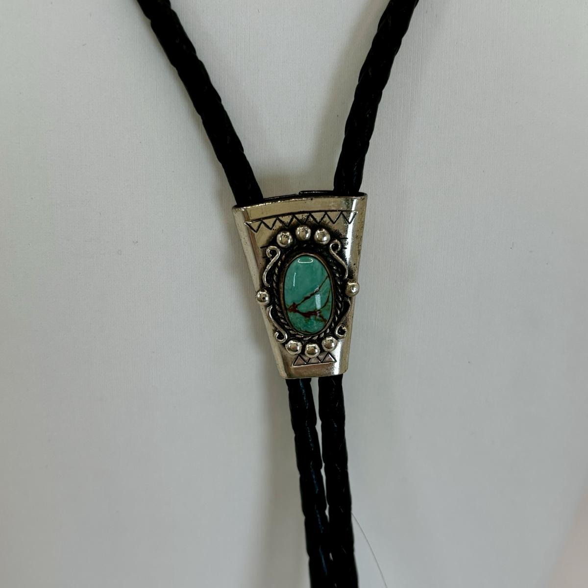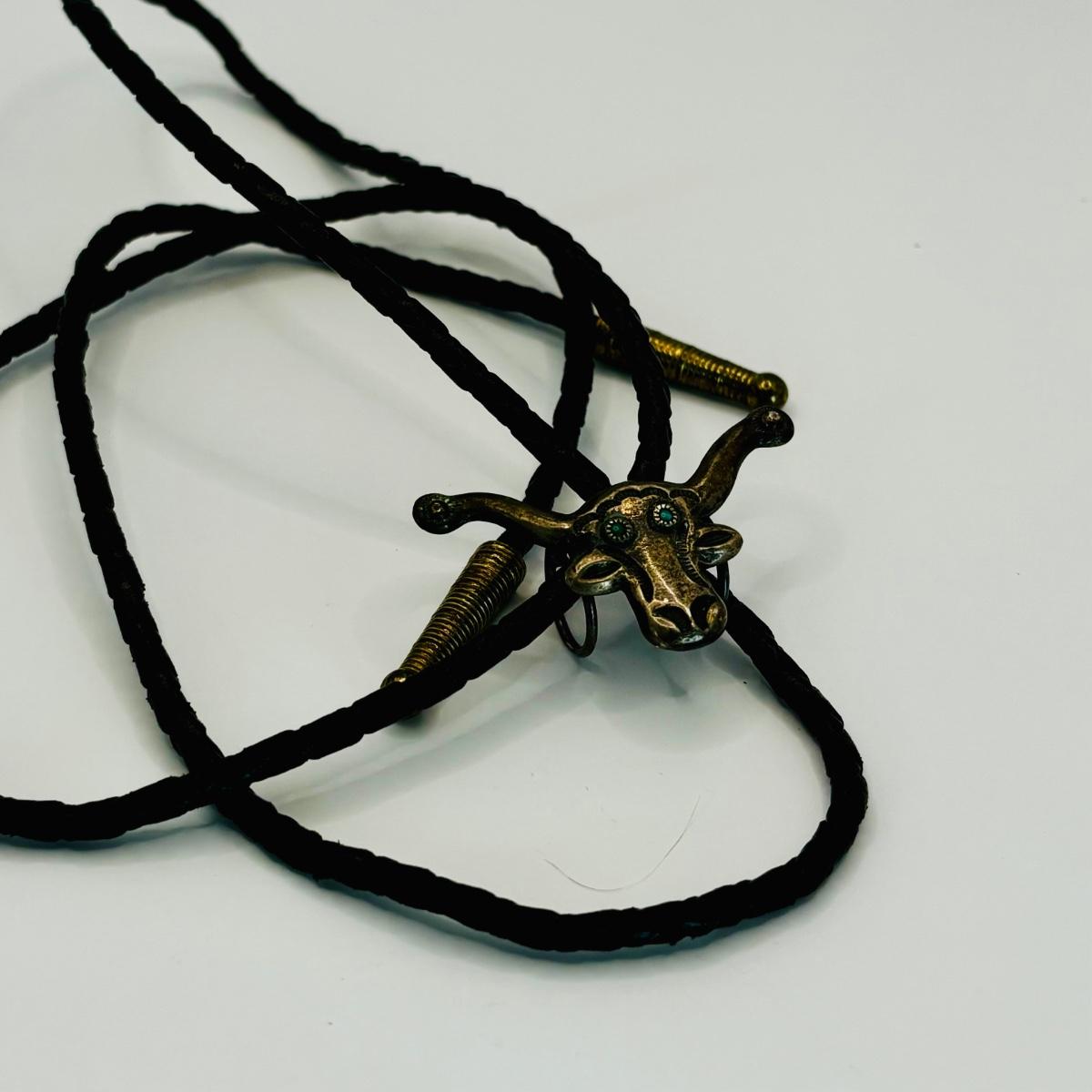 LOT 253: Sterling Silver & Turquoise Stone Bolo Tie w/ Turquoise Stone Pendant & Steer-Themed Bolo