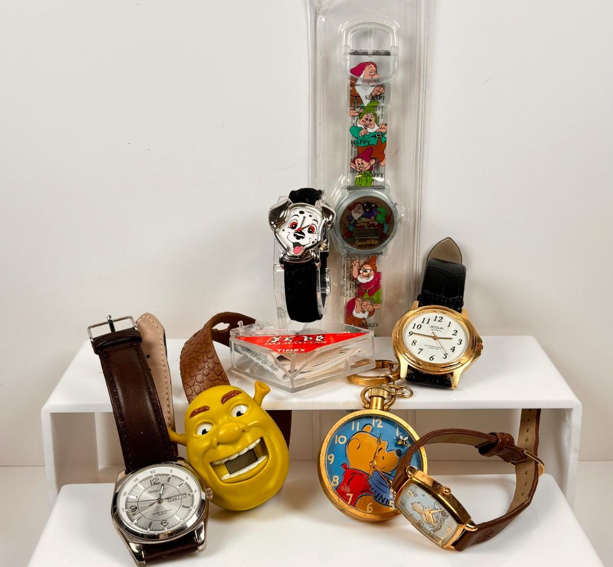 LOT 263: Vintage Disney Timex Dalmatians and Winnie-the-Pooh Watches, McDonald's Shrek Watch & More