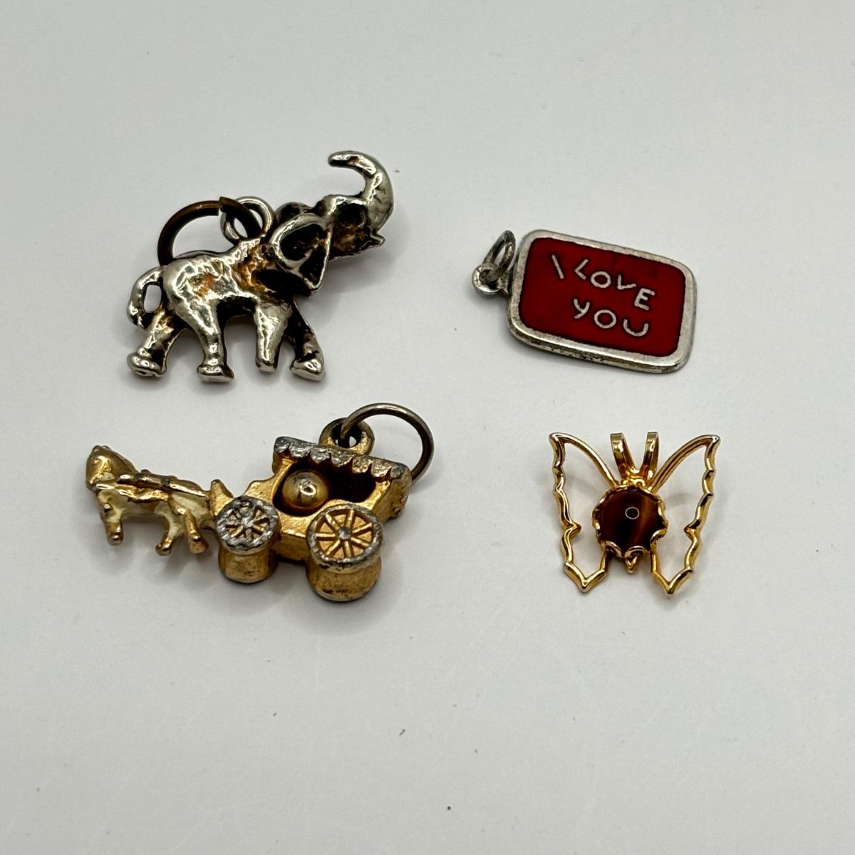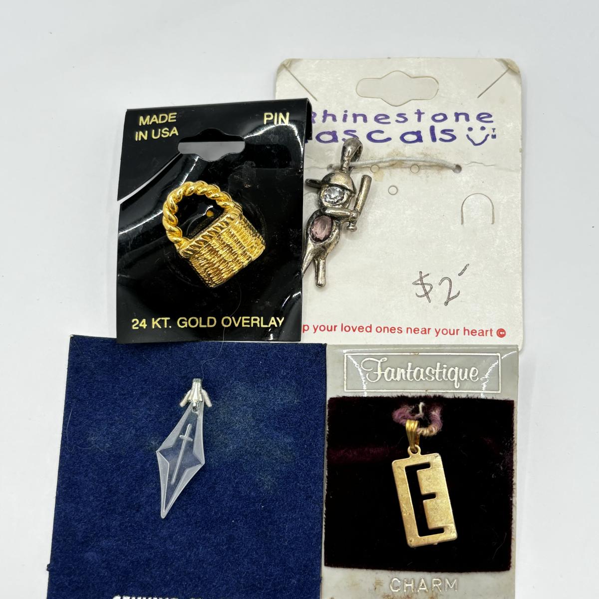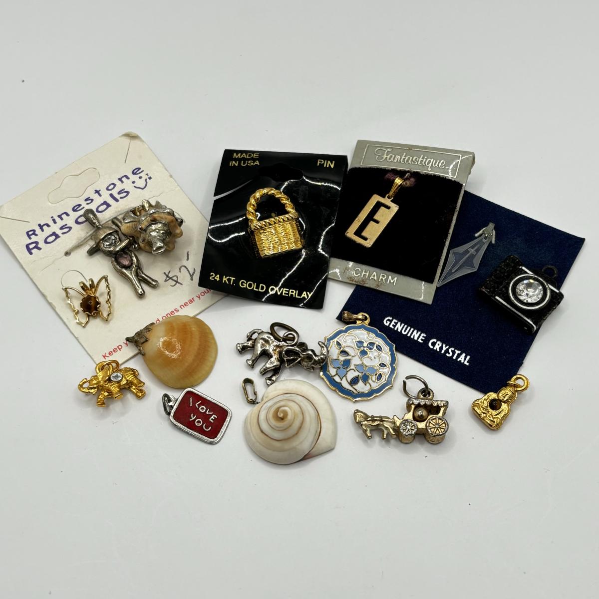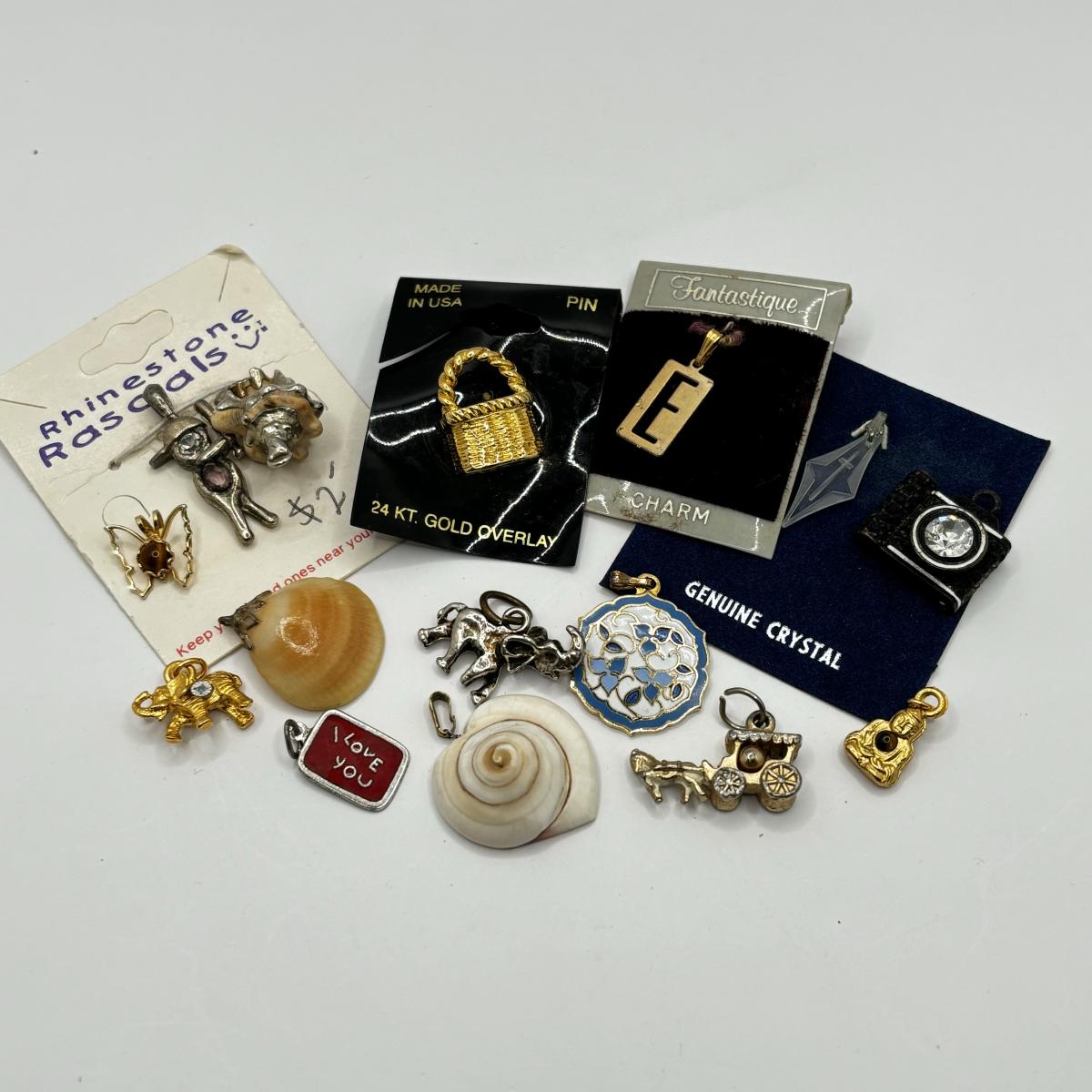 LOT 268: Beau Sterling Silver 'I Love You' Charm, 24K Gold Overlay Basket Pin, Charms & More