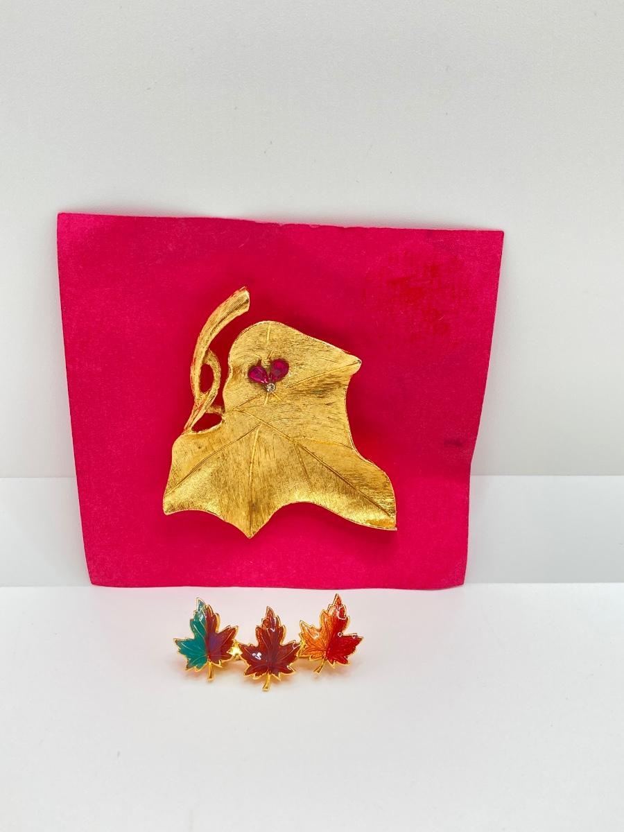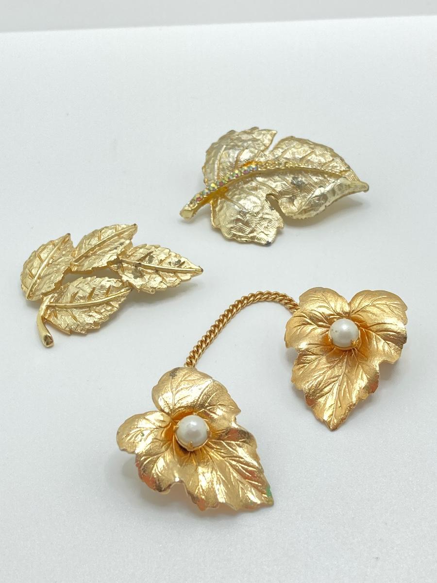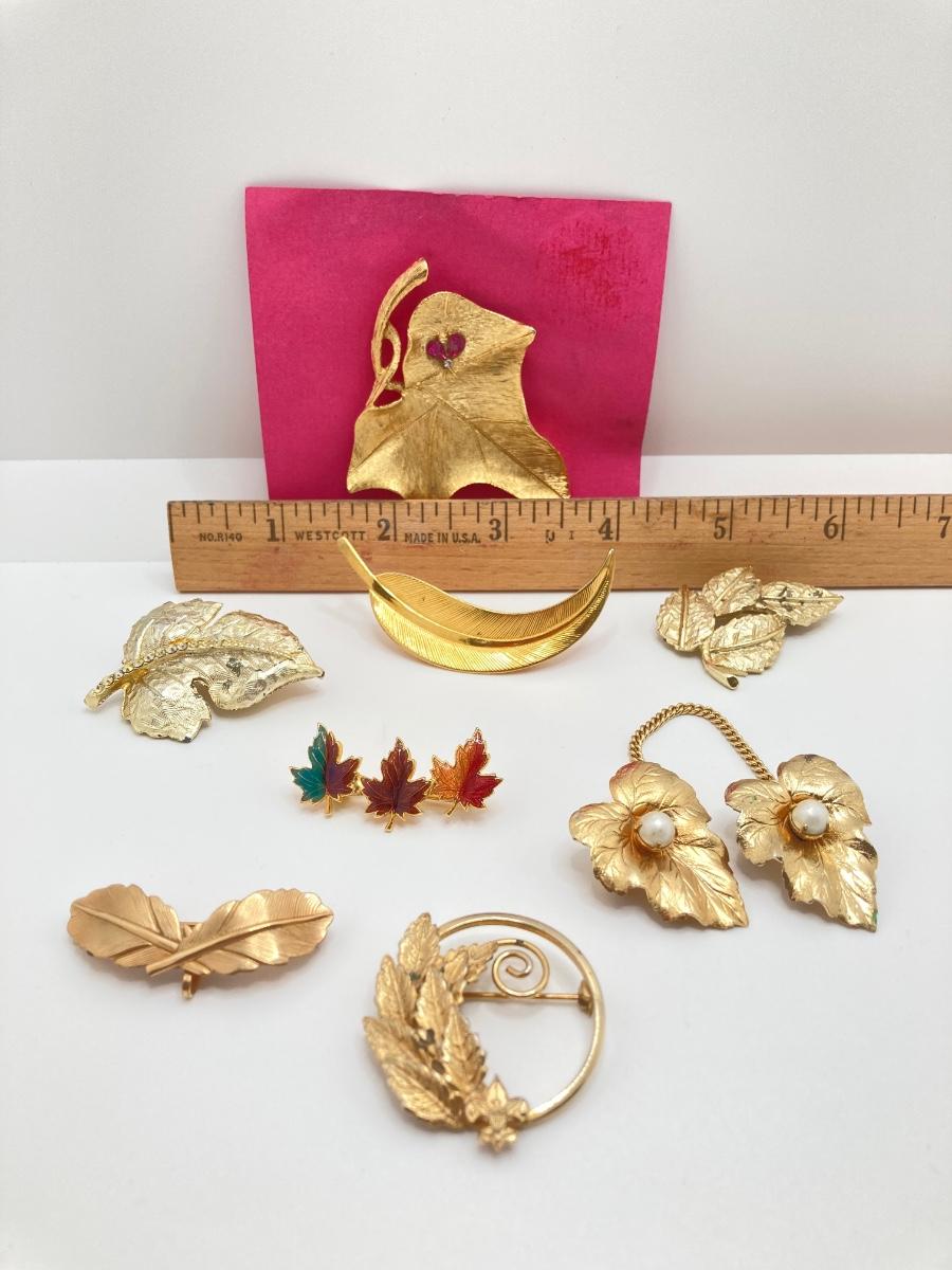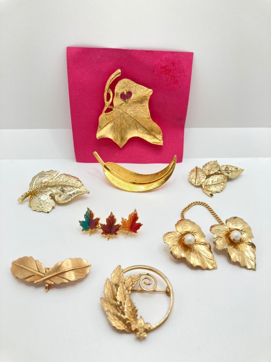 LOT 278: Collection of Gold-Tone, Enamel & Pearl Leaf Pins / Brooches