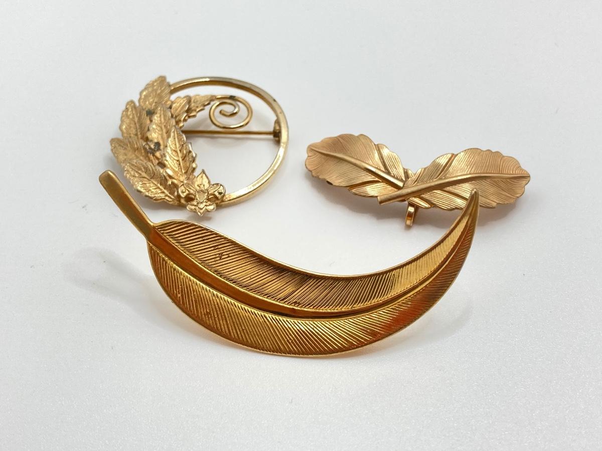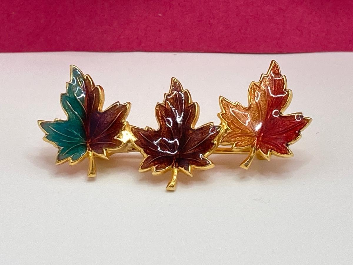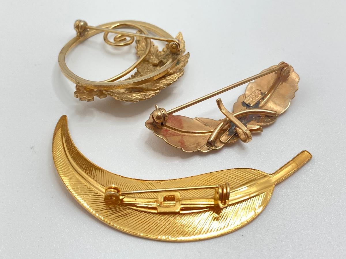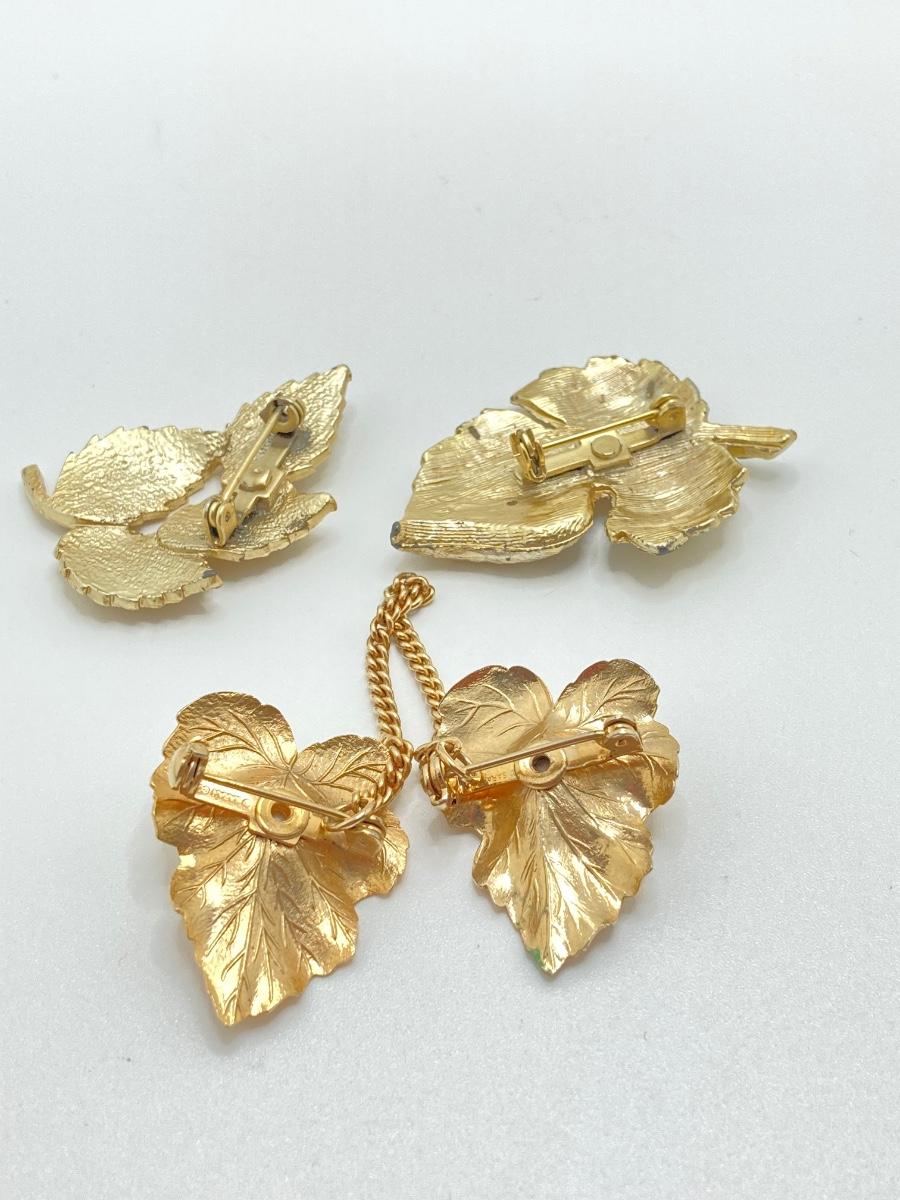 LOT 278: Collection of Gold-Tone, Enamel & Pearl Leaf Pins / Brooches