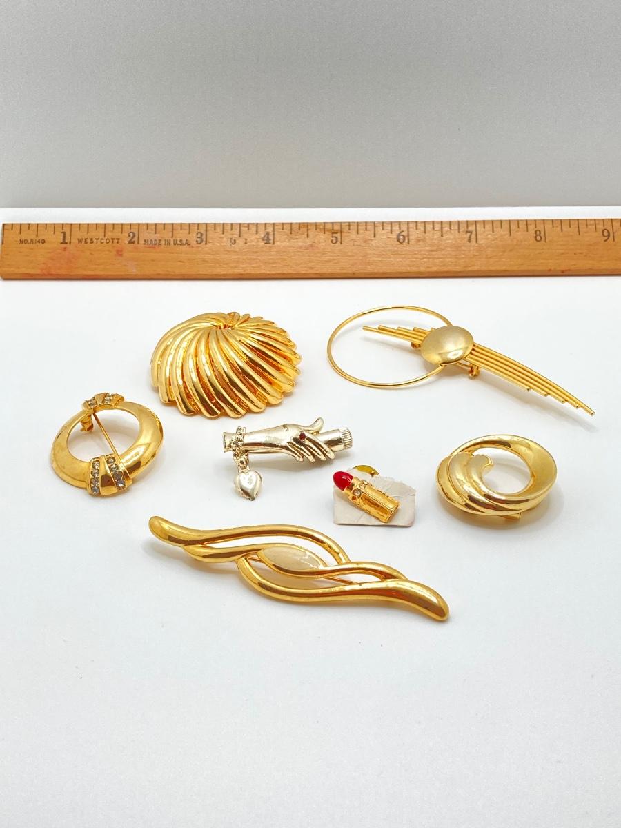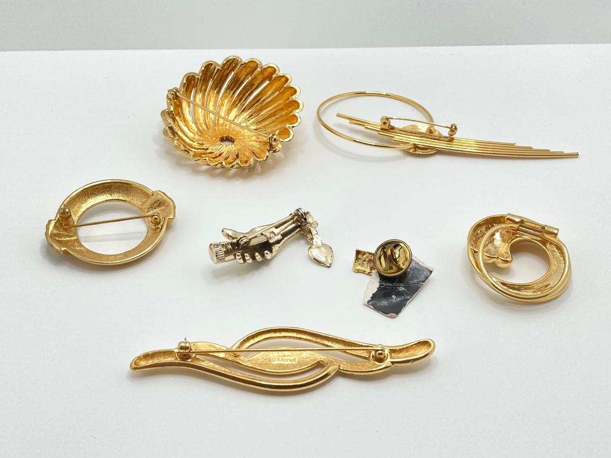 LOT 280: Collection of Gold-Tone Brooches- Monet, Avon & More