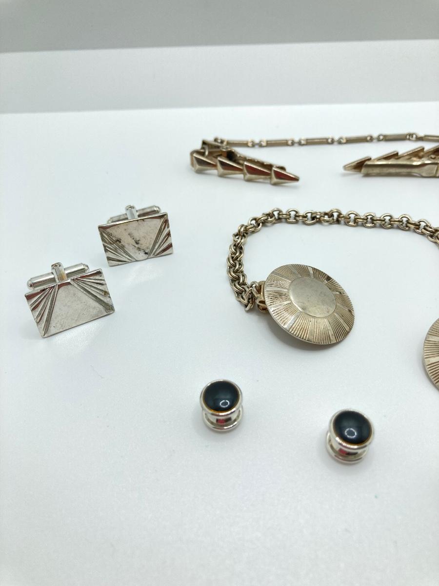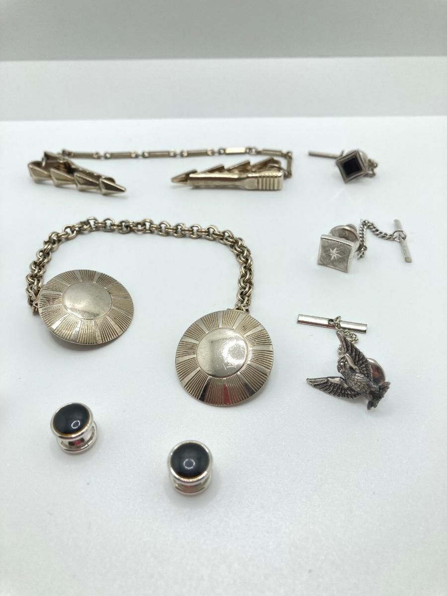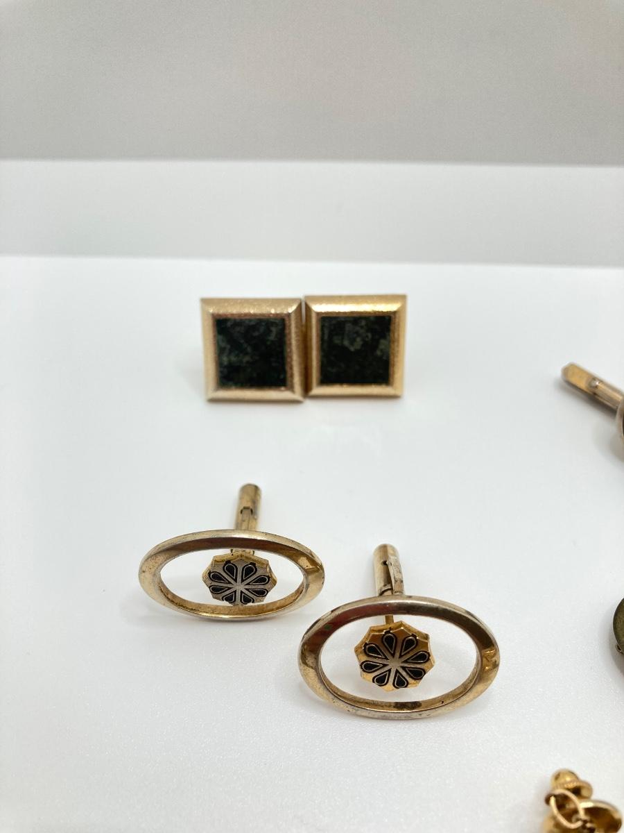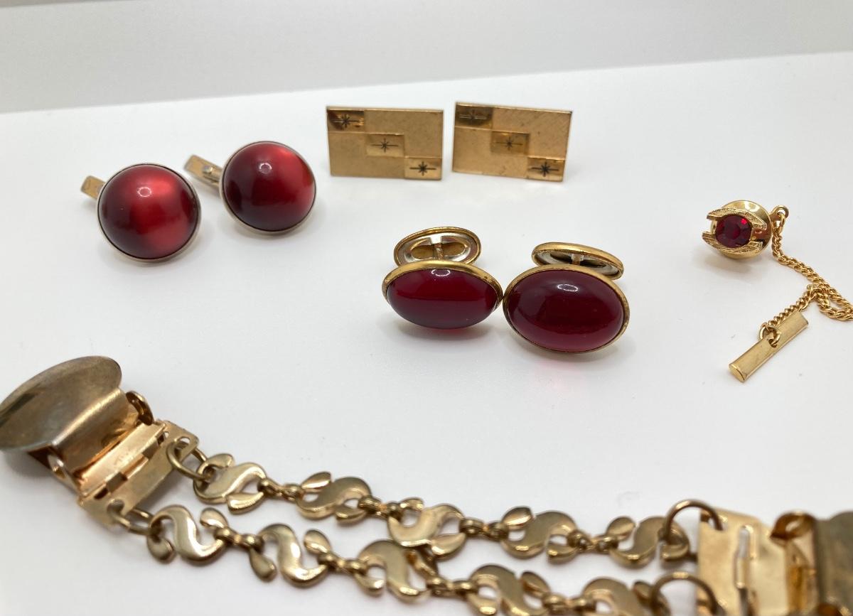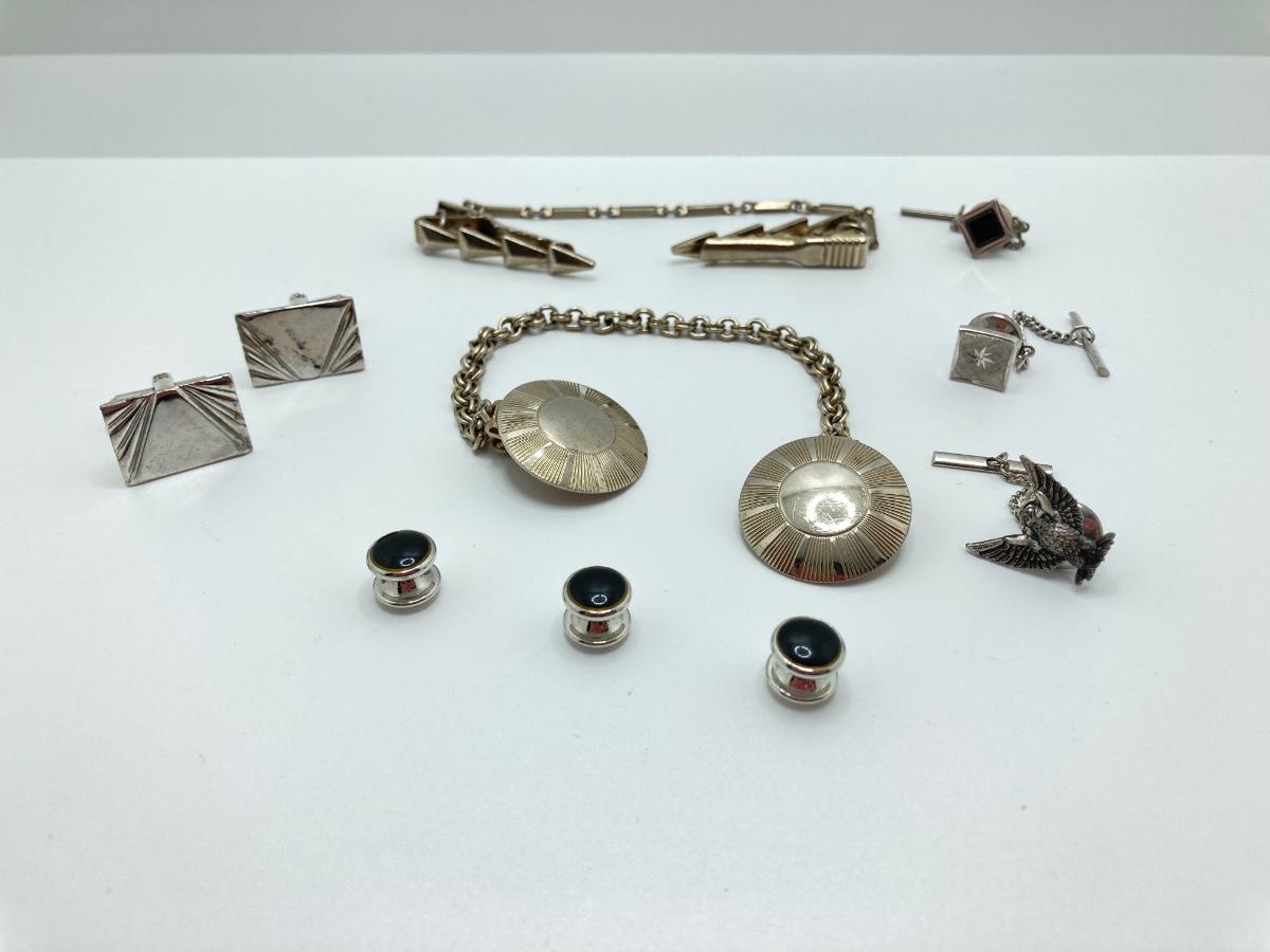 LOT 294: Wooden Jewelry Box with Vintage Cufflinks, Tie Tacs & More (Swank Included)