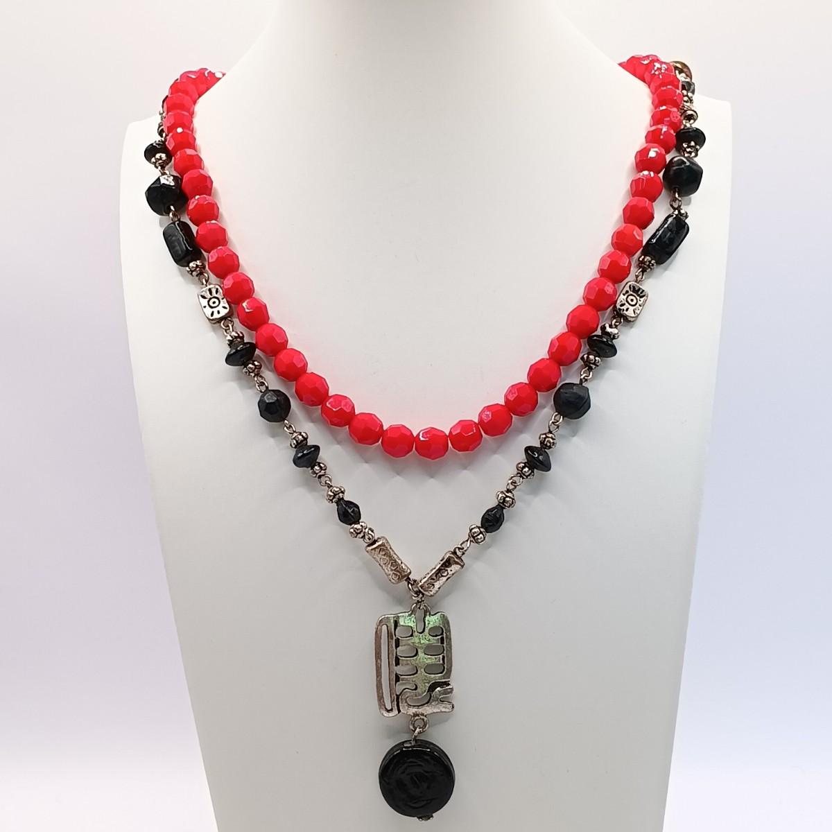 Black & Silver-Tone Pendant: 30"