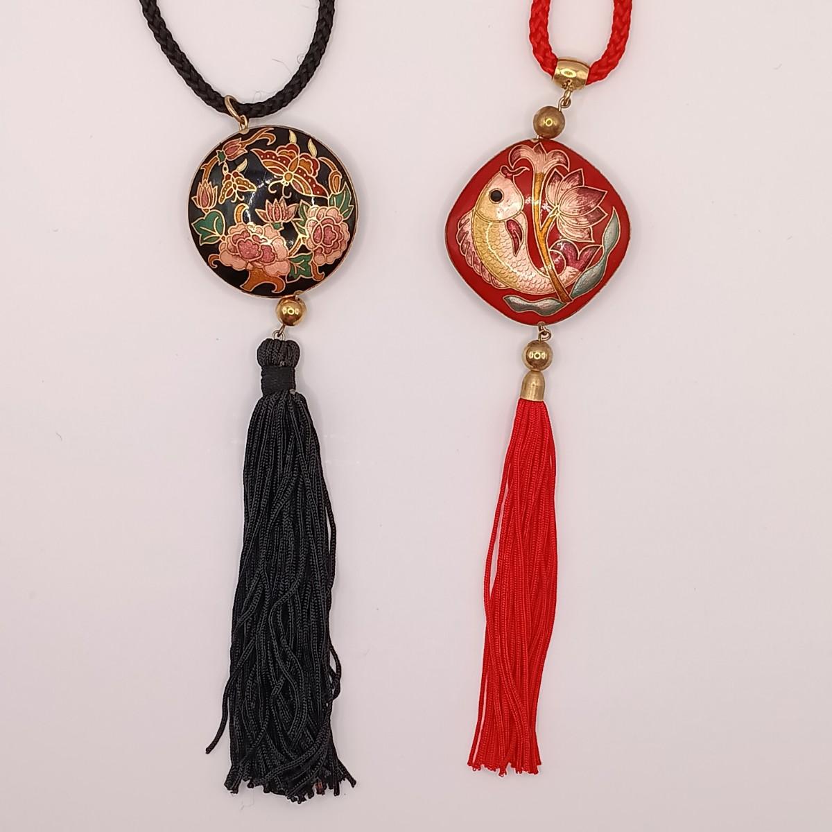 Enamel Pendant Necklaces: 30"