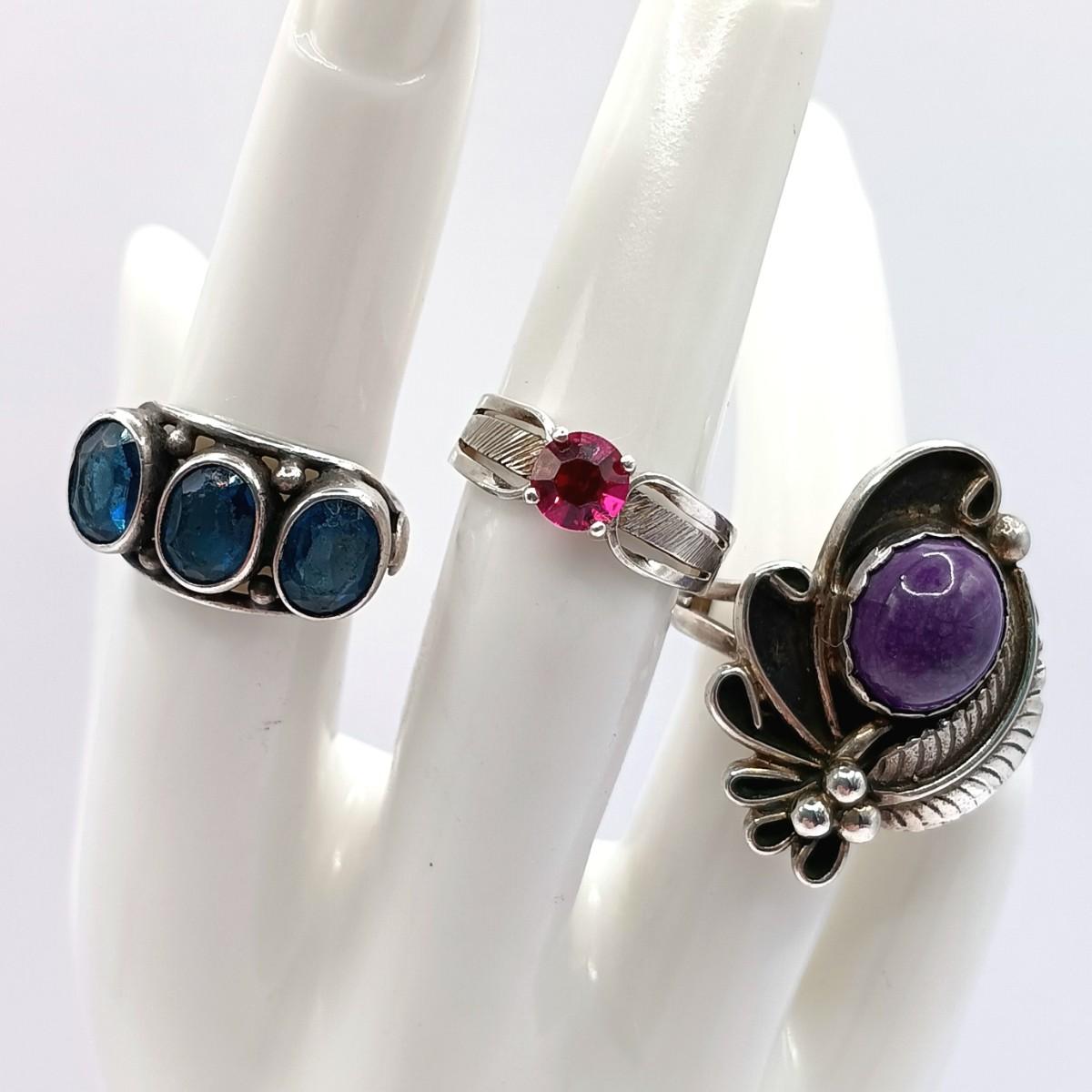 LOT 303: Set of 3 Sterling Silver & Stone Rings