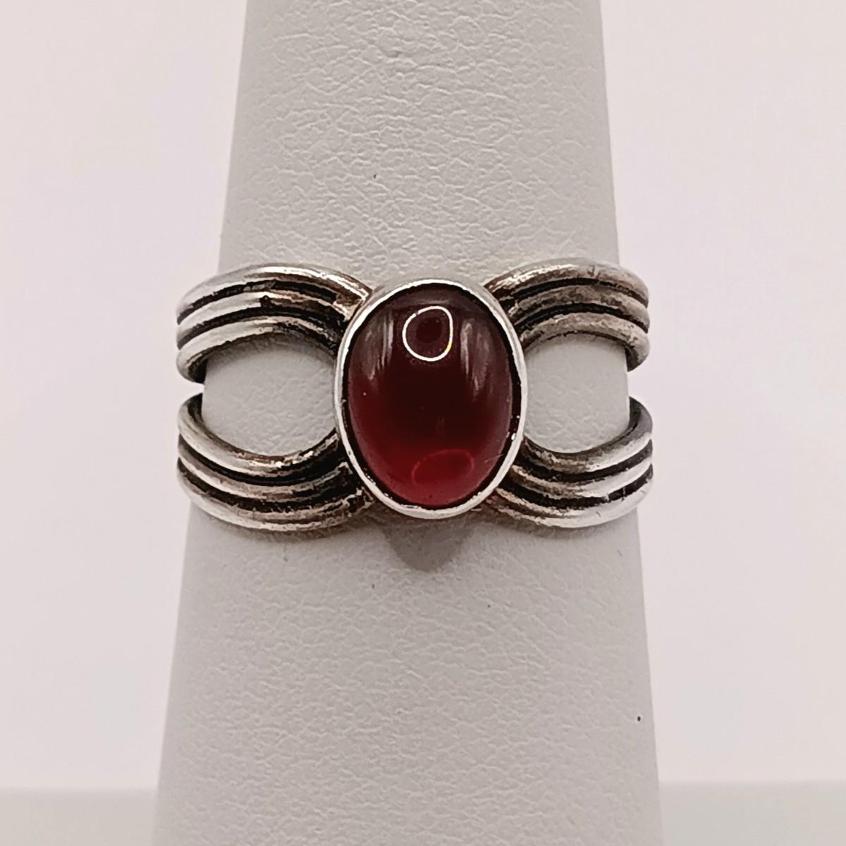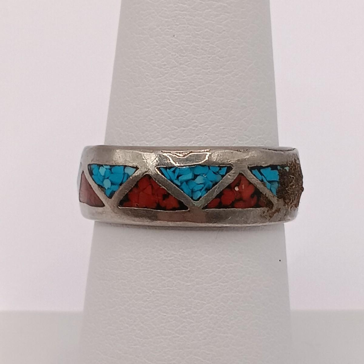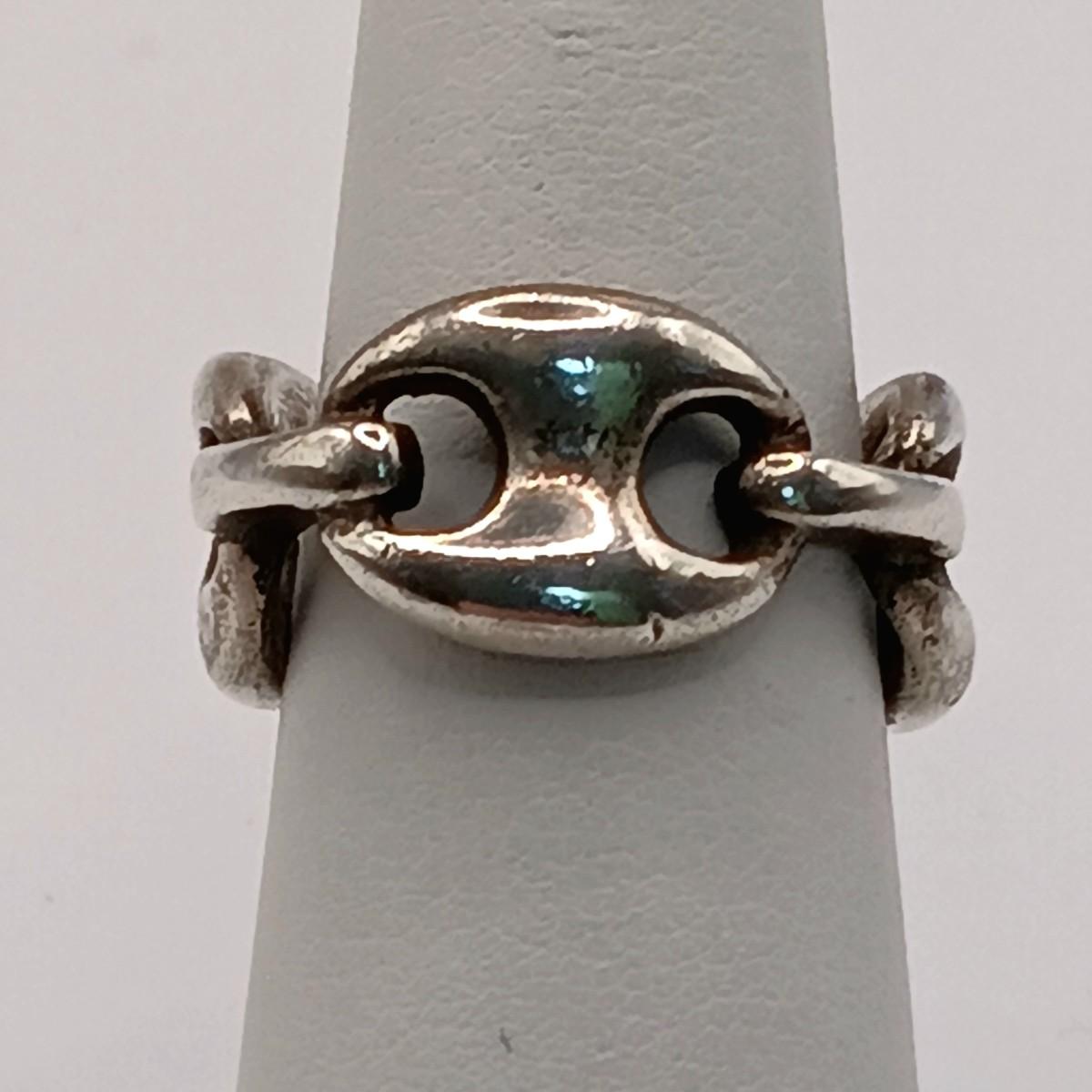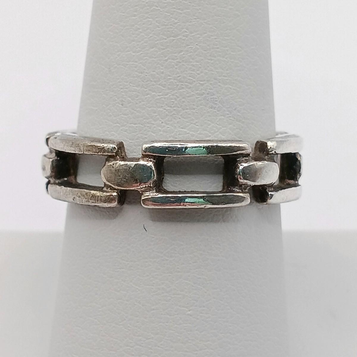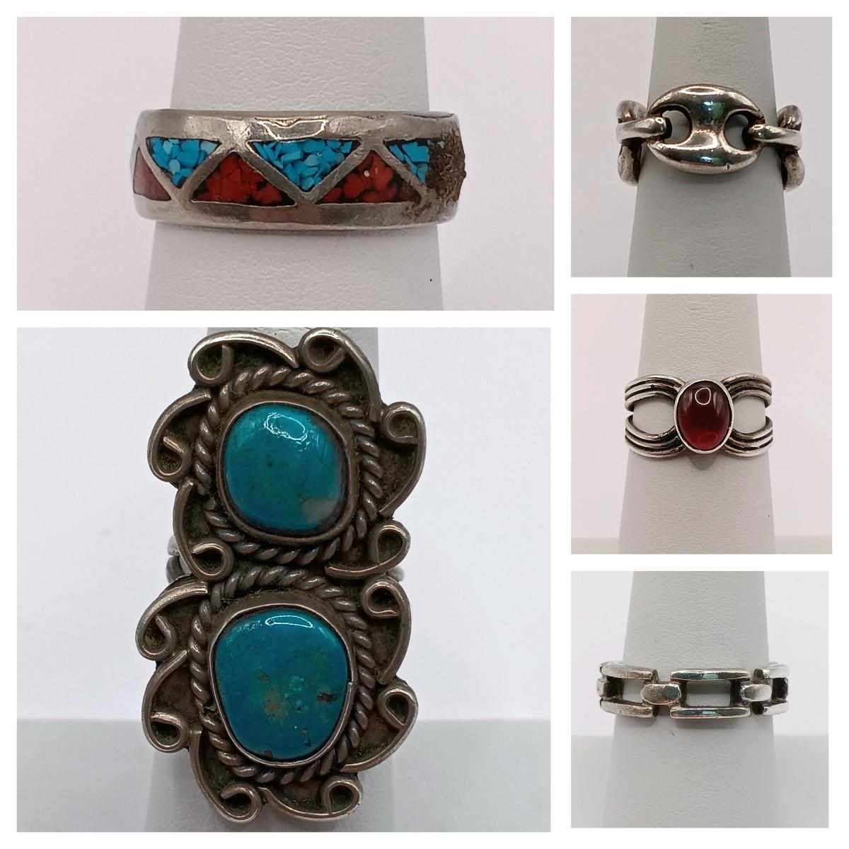 LOT 304: Sterling Silver Mariner Link Ring & Sterling Silver Chain Link Ring w/ 3 Silver-Tone Rings