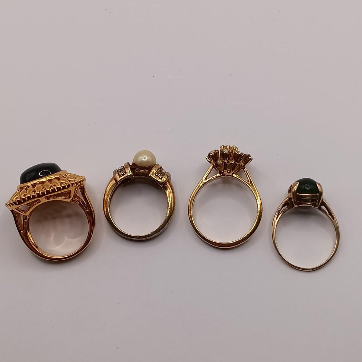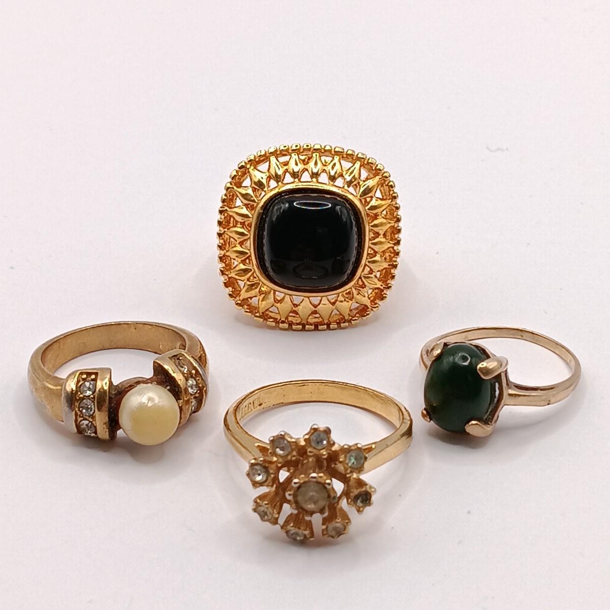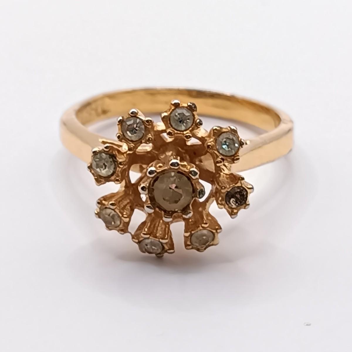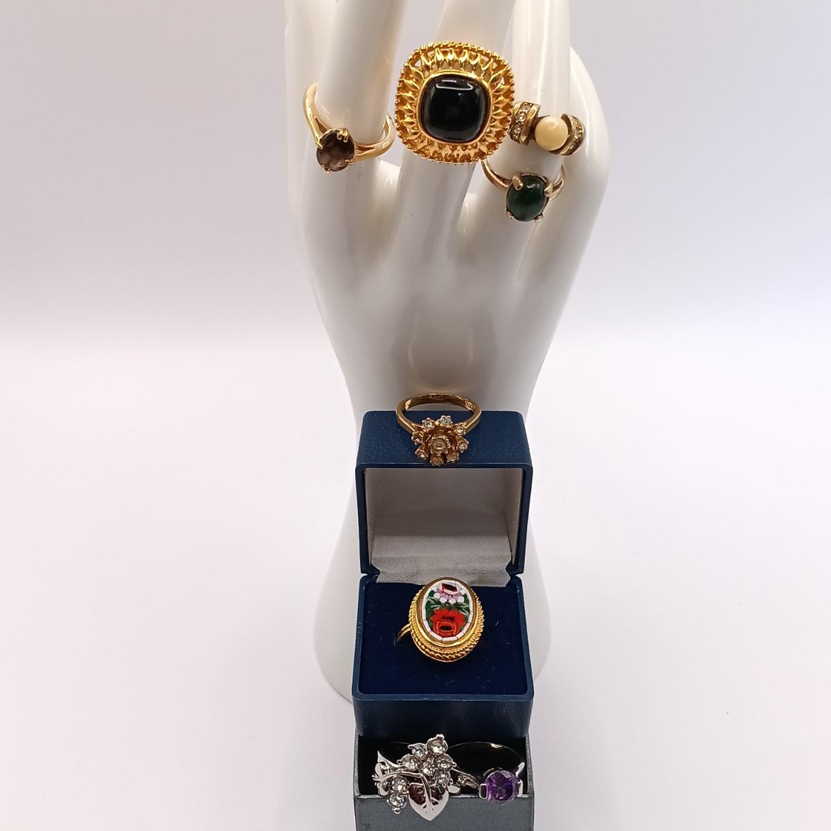 LOT 305: Vintage Gold-Tone Italy Mosaic Flower Ring & Avon 18K GF Smokey-Tone Gem Ring w/ Fashion Rings