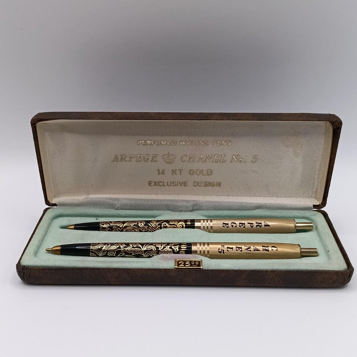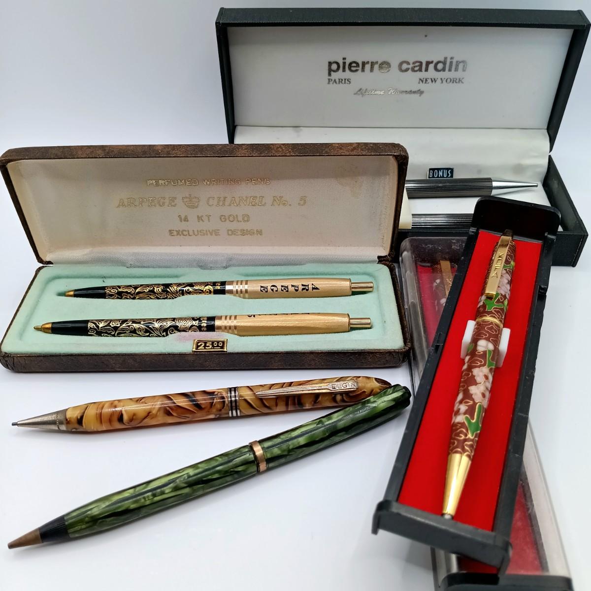 LOT 309: Arpege Chanel No. 5 14kt Gold Pens, Kofa Cloisonne Enamel Pens, Pierre Cardin Pens & More