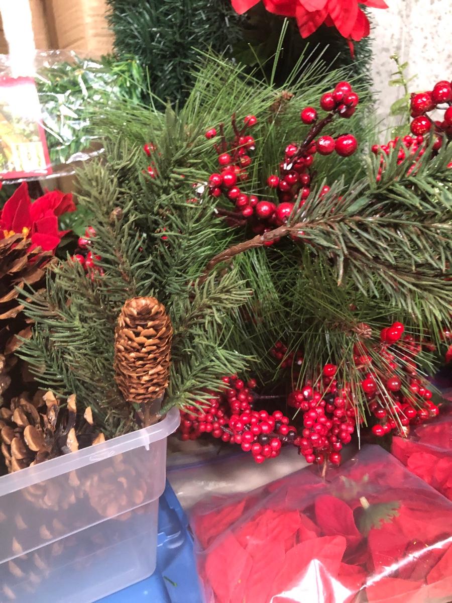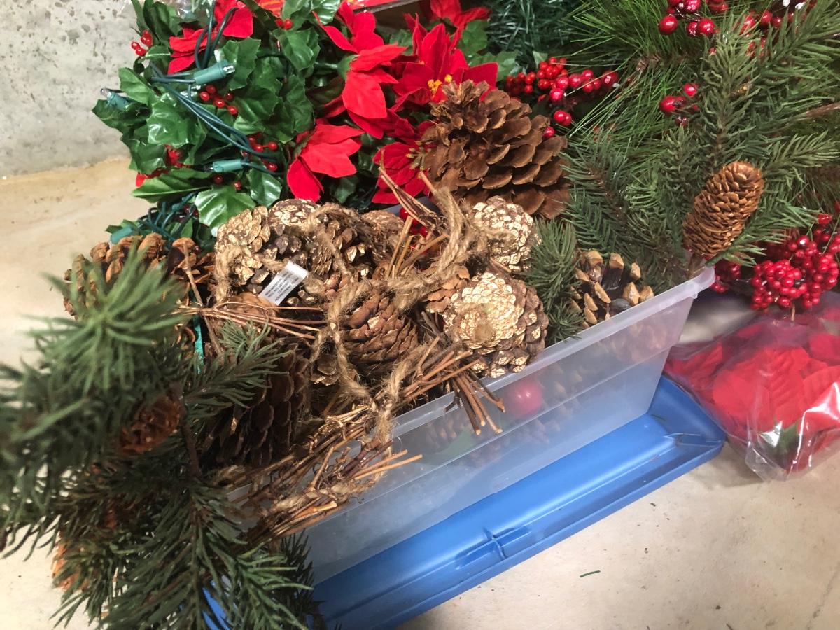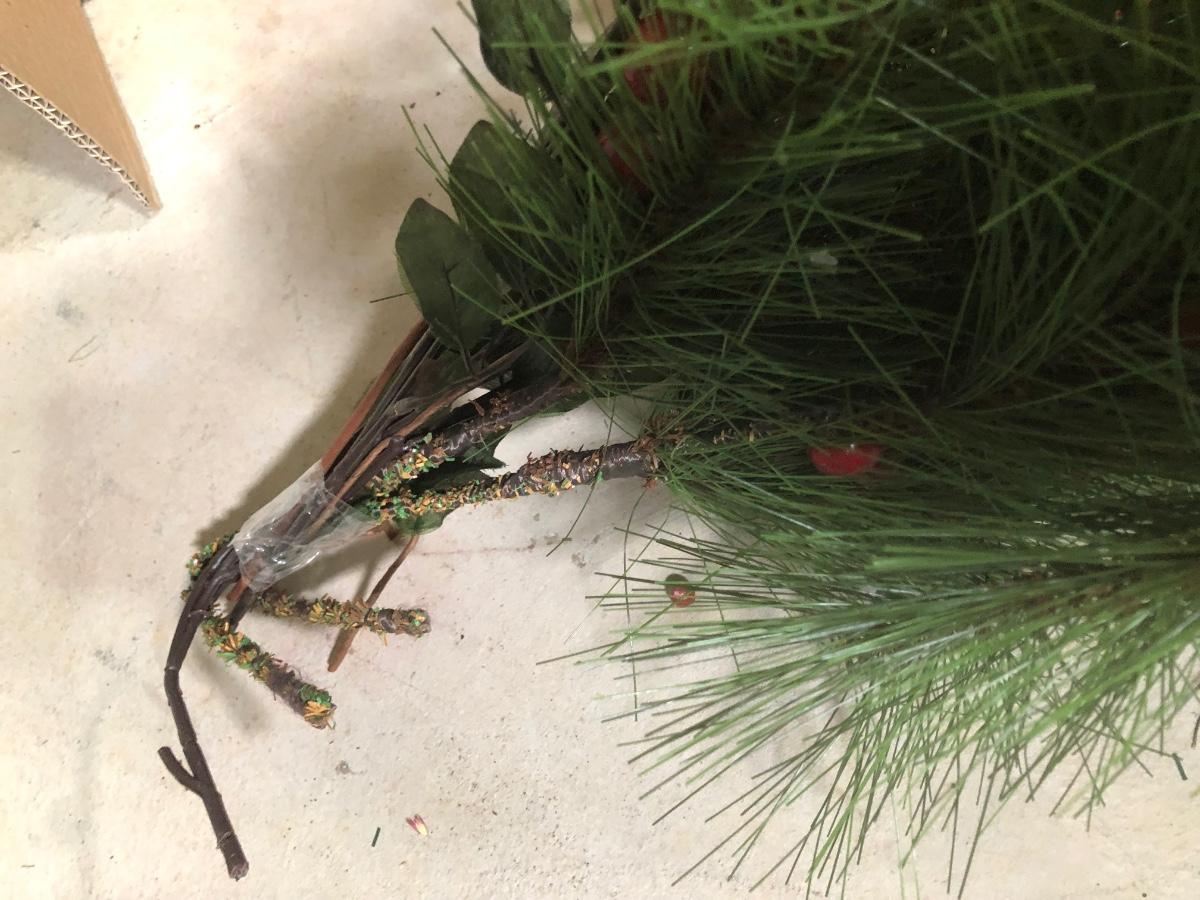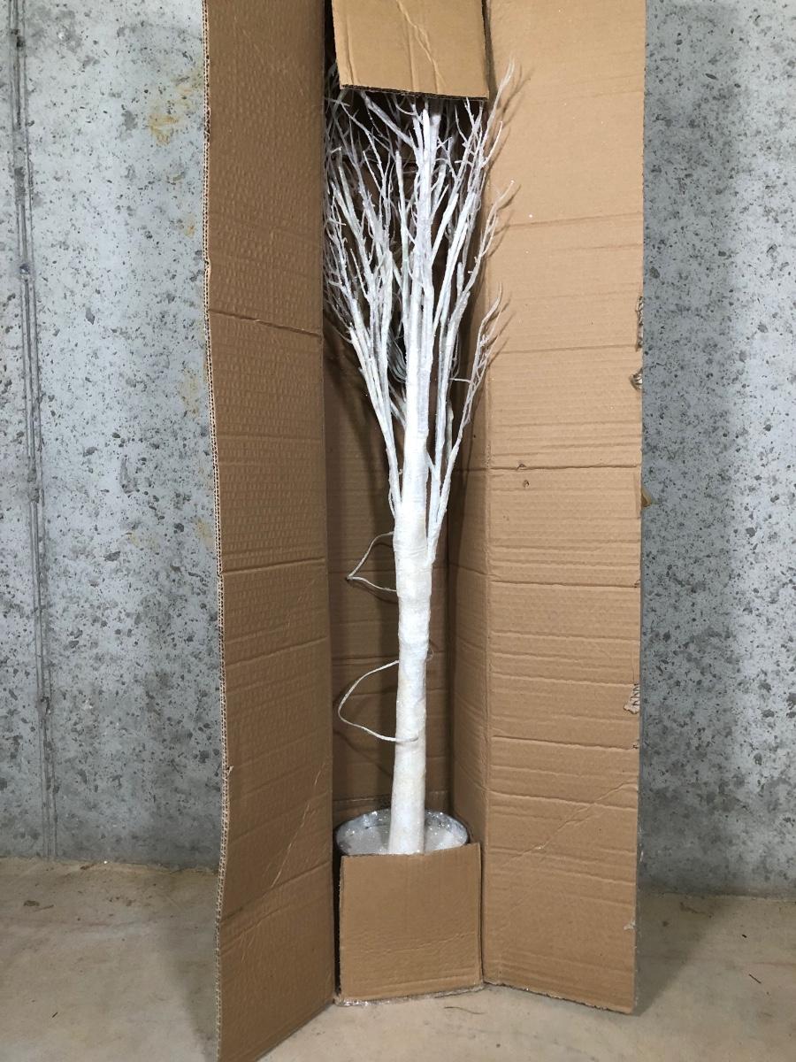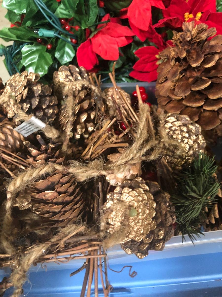 LOT 31X: Christmas Decor - White Birch Tree, Garland, Faux Flowers & Pinecones